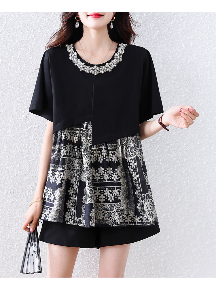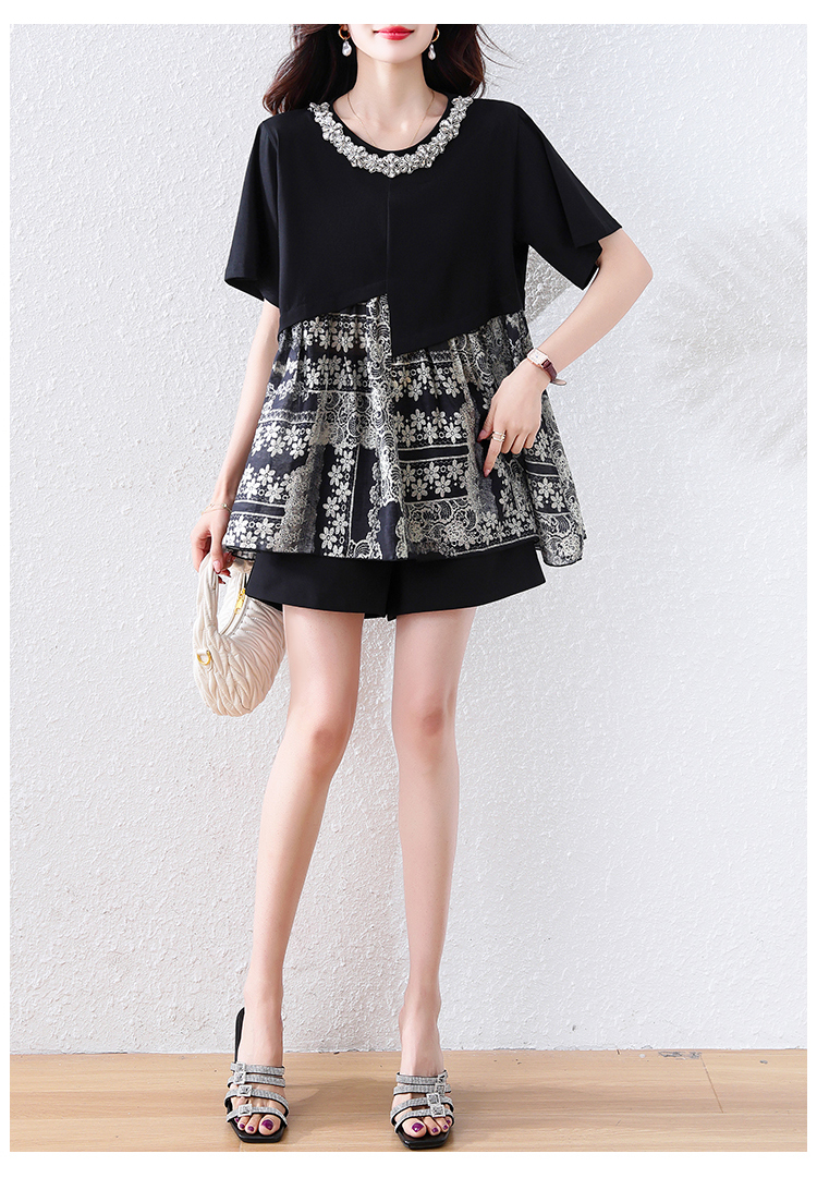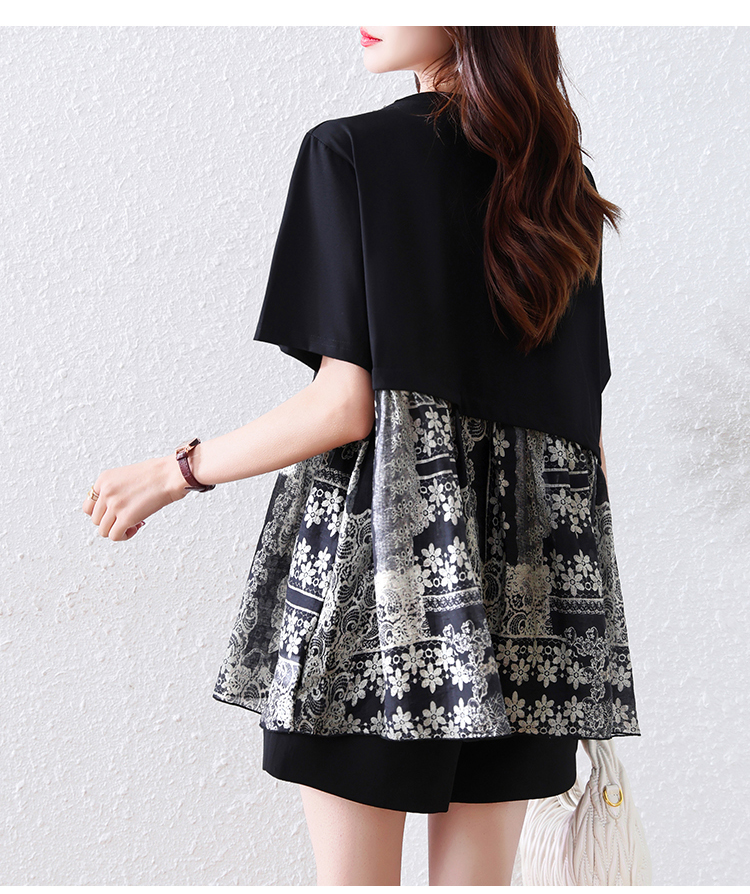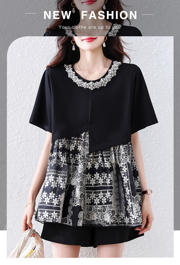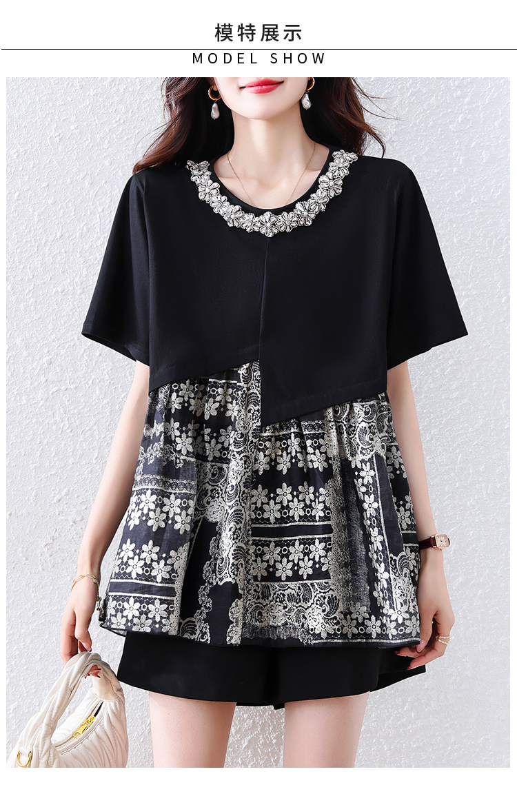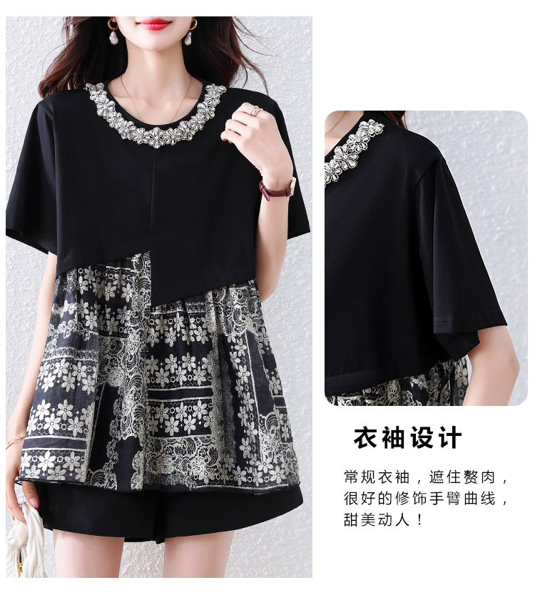 RY2622# 实拍-时尚早秋宽松连帽冲锋衣+短裤印花套装