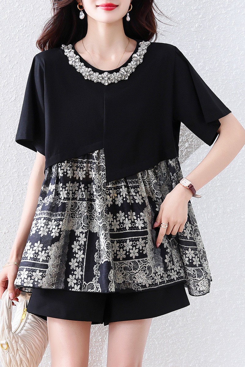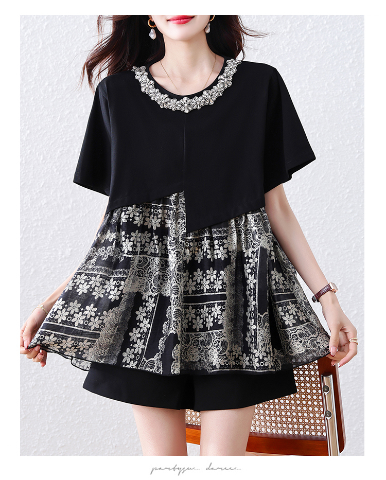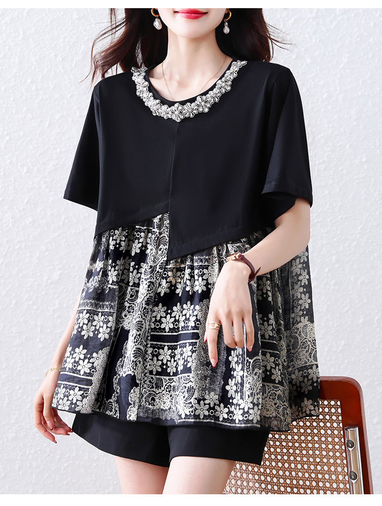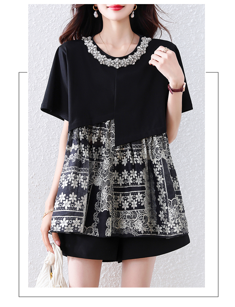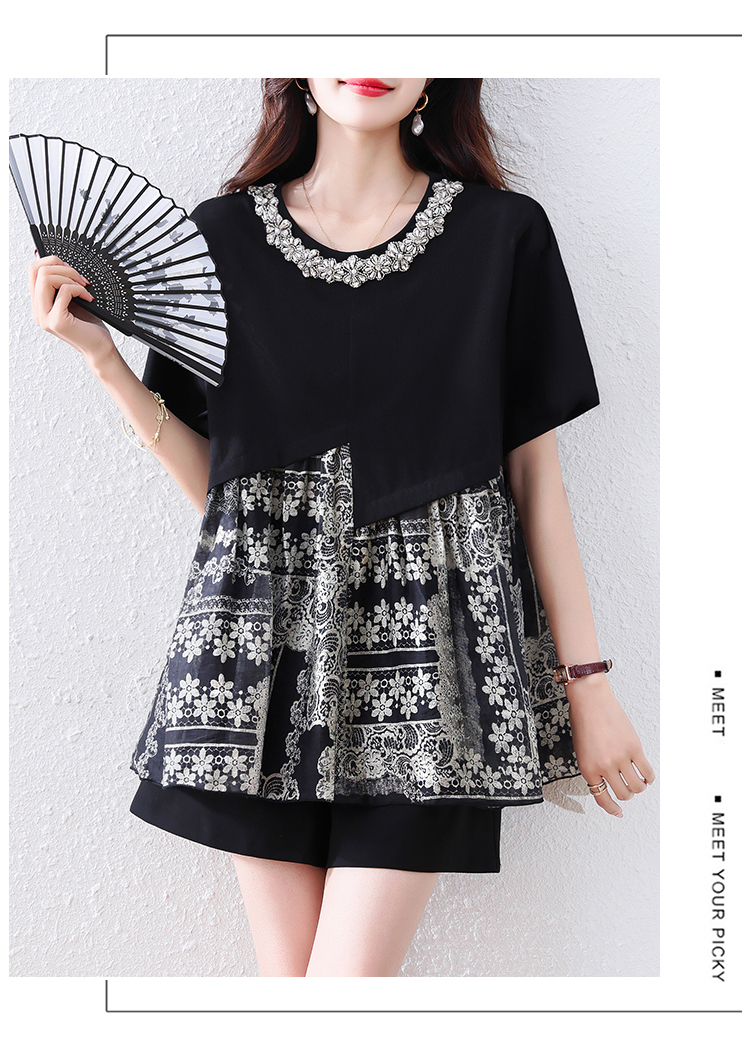 RY2622# 实拍-时尚早秋宽松连帽冲锋衣+短裤印花套装