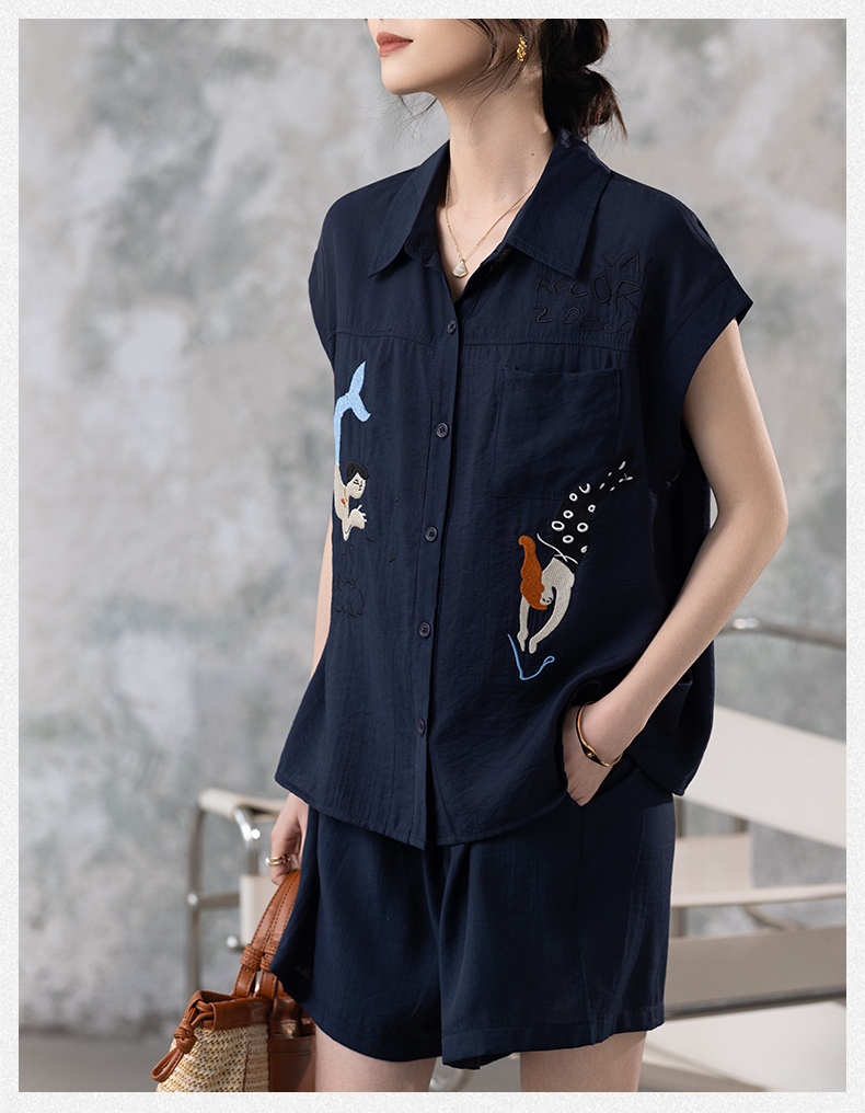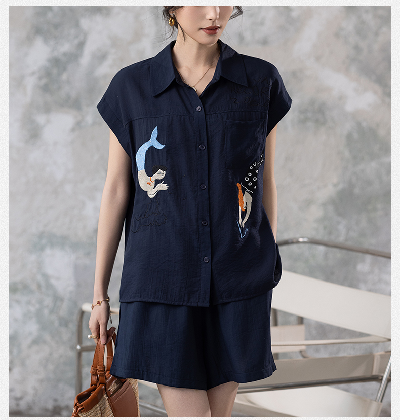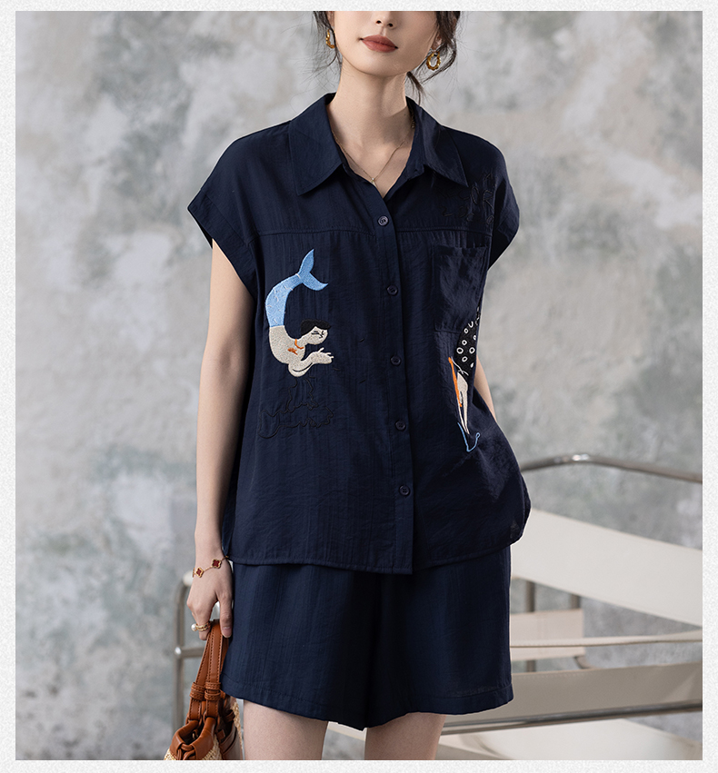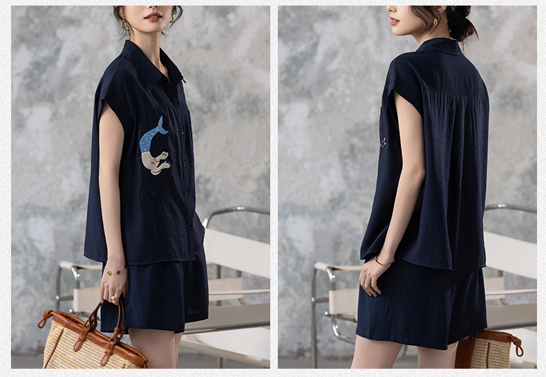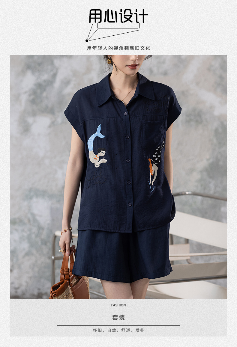 RY2612# 小视频 刺绣套装女夏季2025年新款大码女装上衣短裤套装