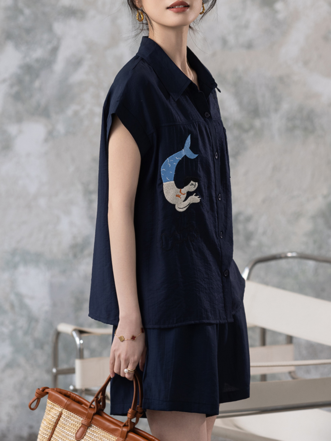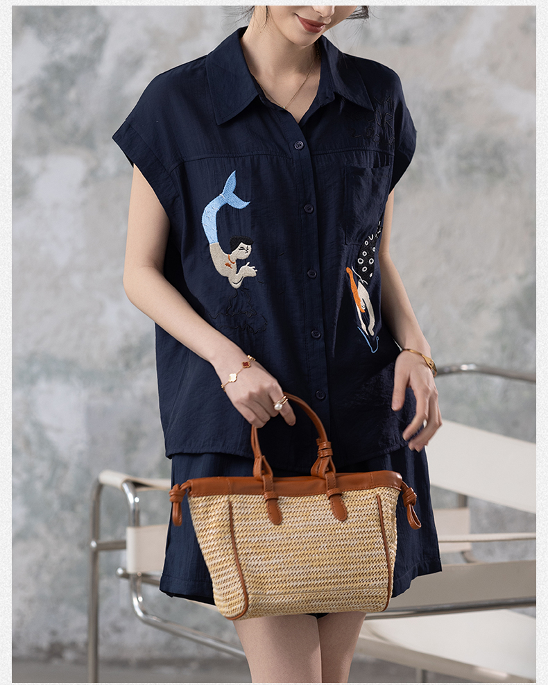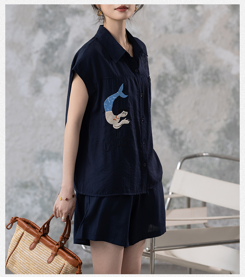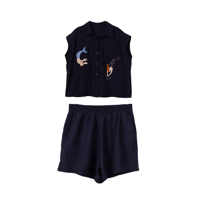 RY2612# 小视频 刺绣套装女夏季2025年新款大码女装上衣短裤套装