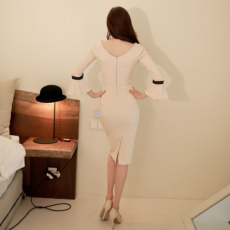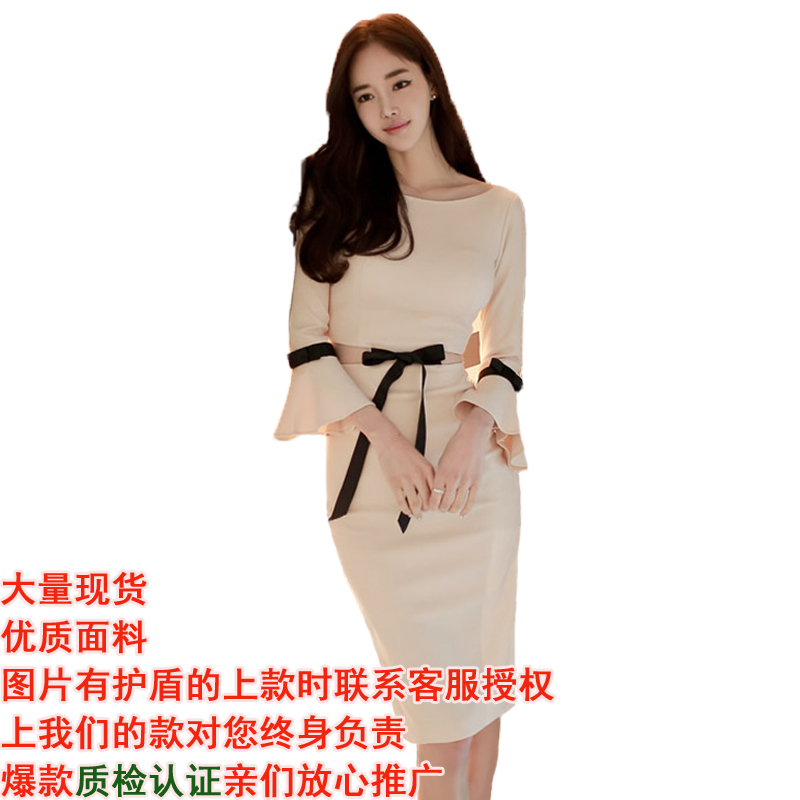 RY2620# 2026新款春装连衣裙修身紧身包臀气质收腰显瘦轻熟风长袖打...