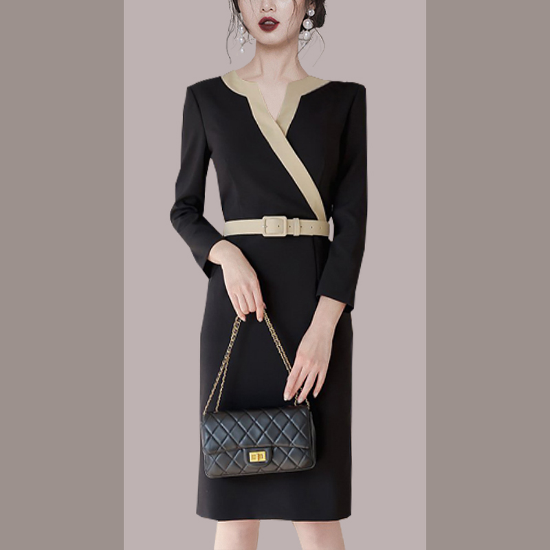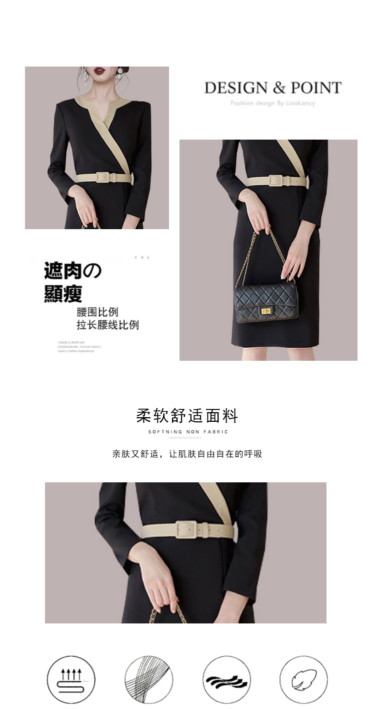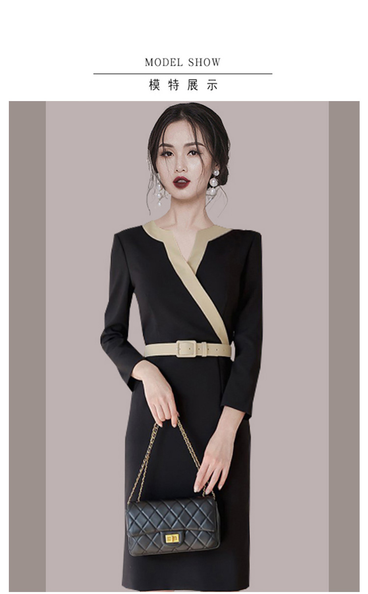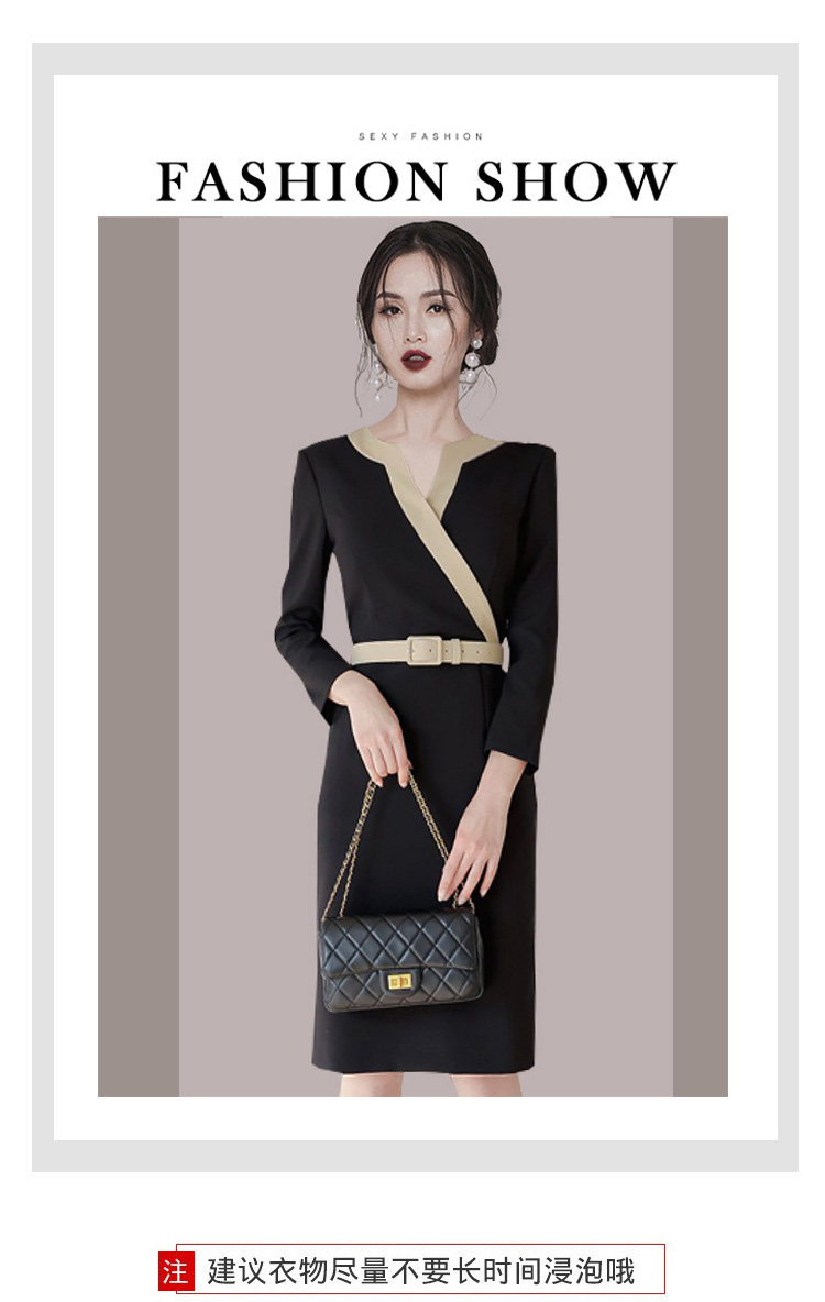 RY2619# 洋气轻熟气质OL职业连衣裙女2026春装新款长袖收腰时尚拼色包臀裙