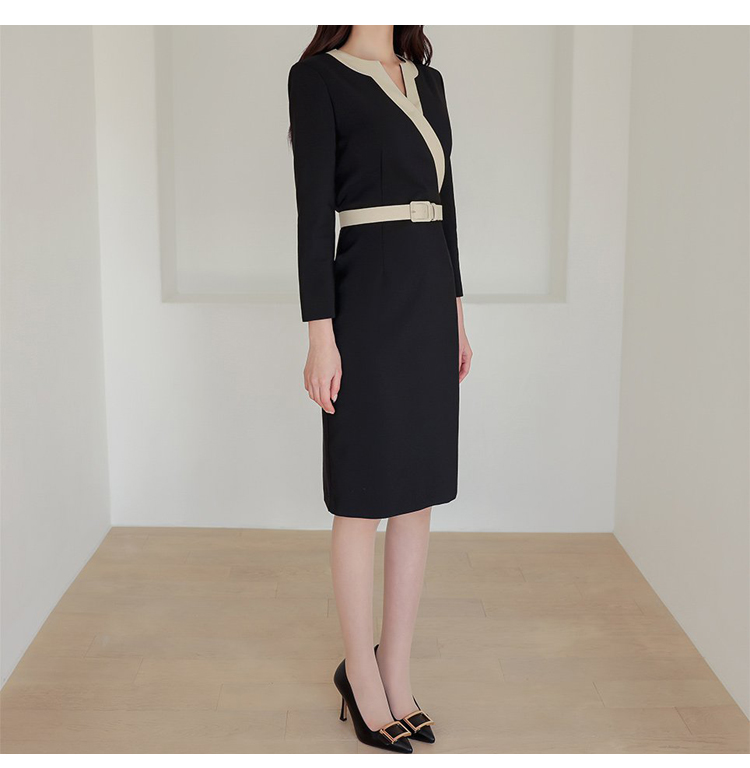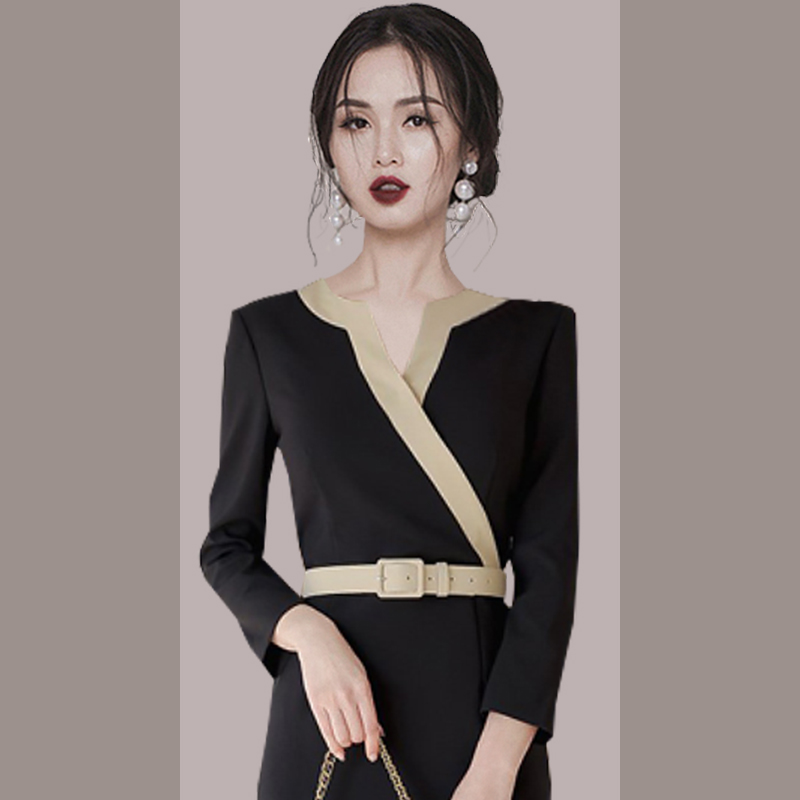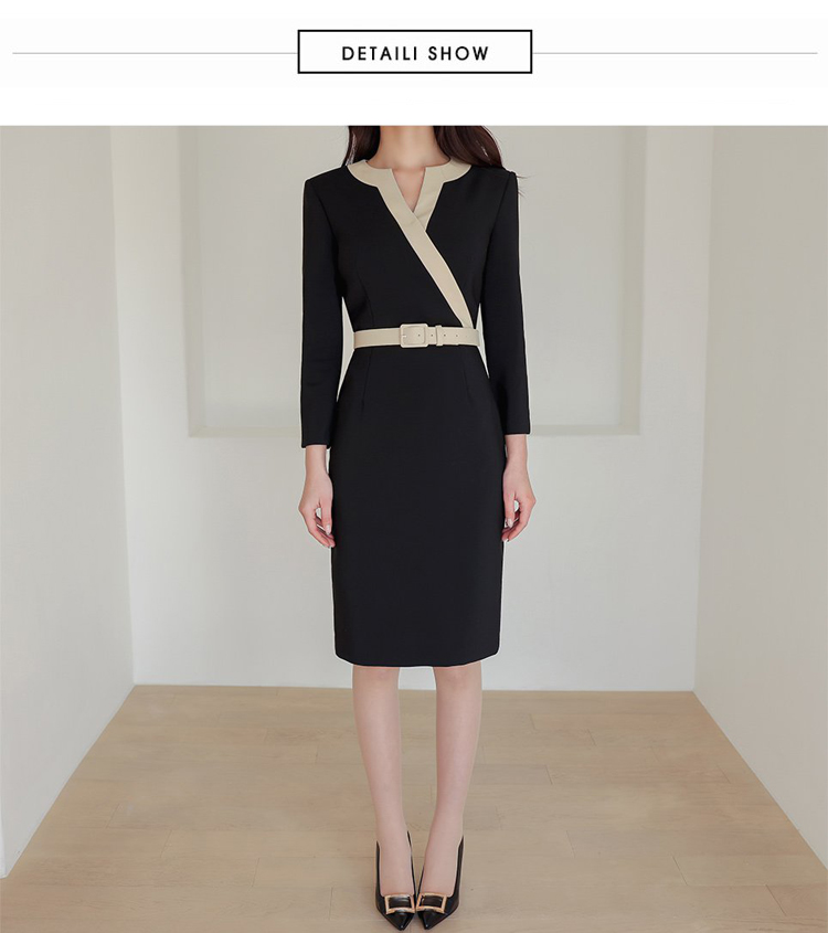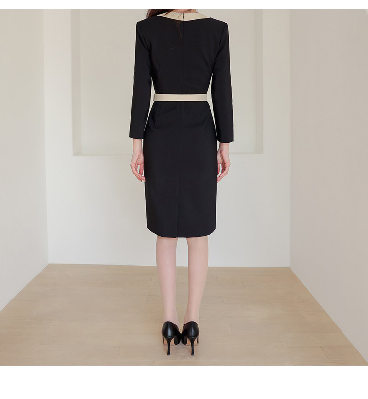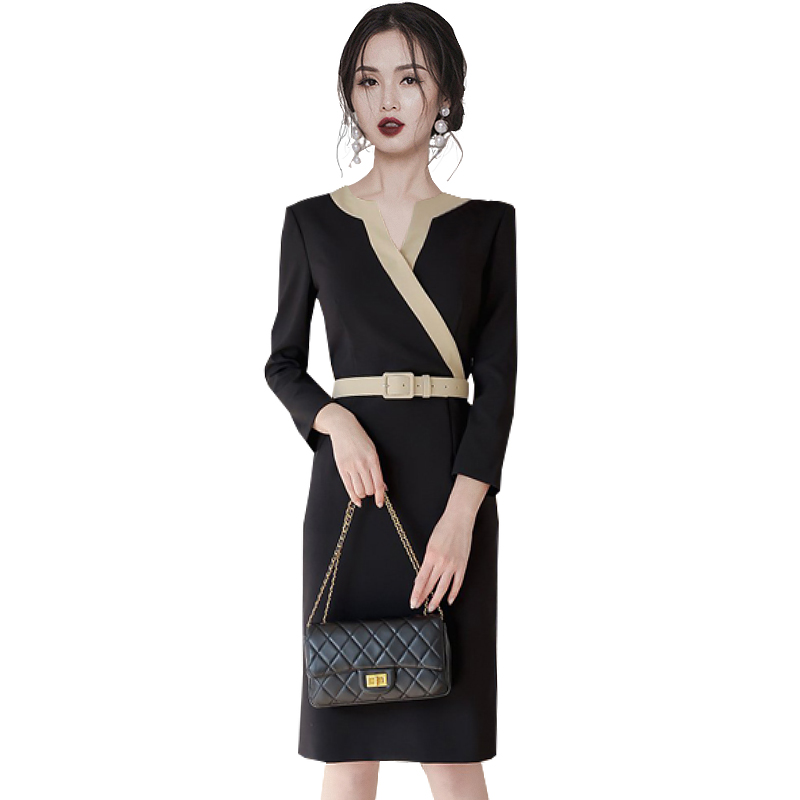 RY2619# 洋气轻熟气质OL职业连衣裙女2026春装新款长袖收腰时尚拼色包臀裙