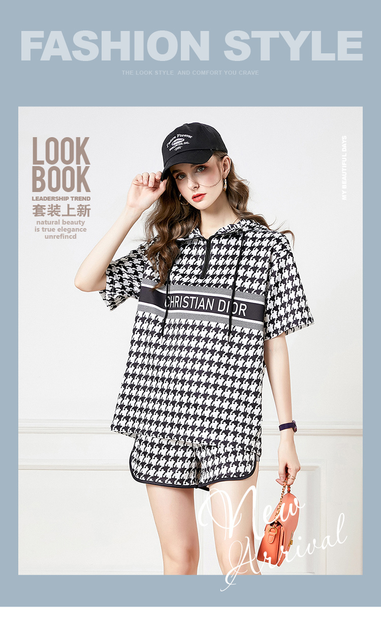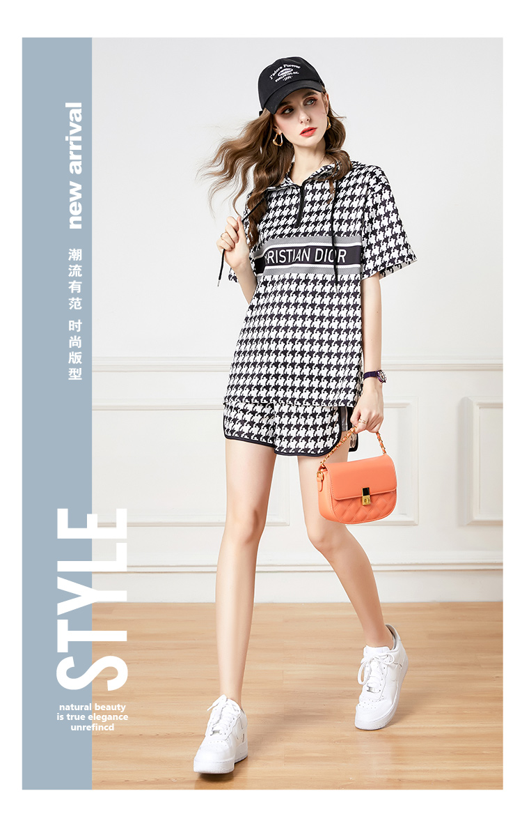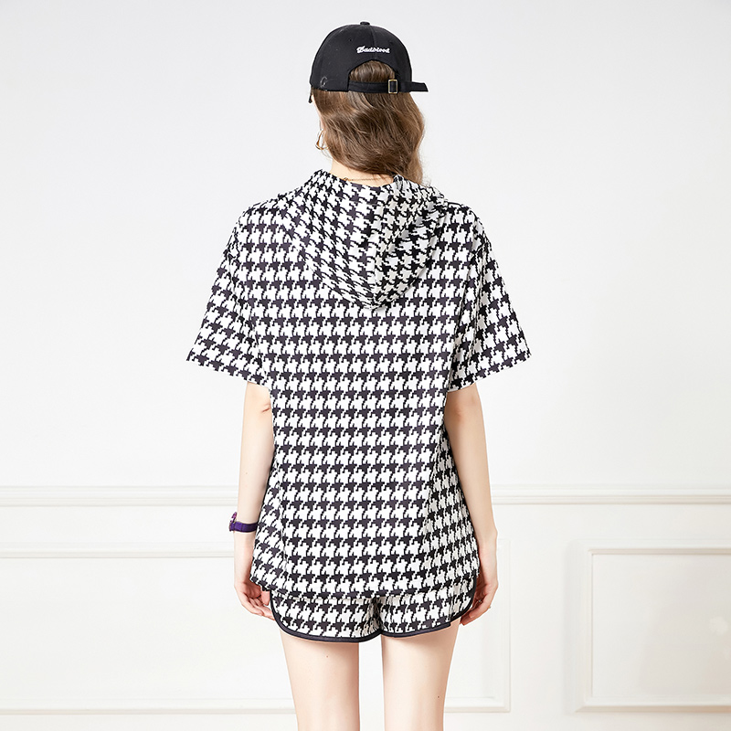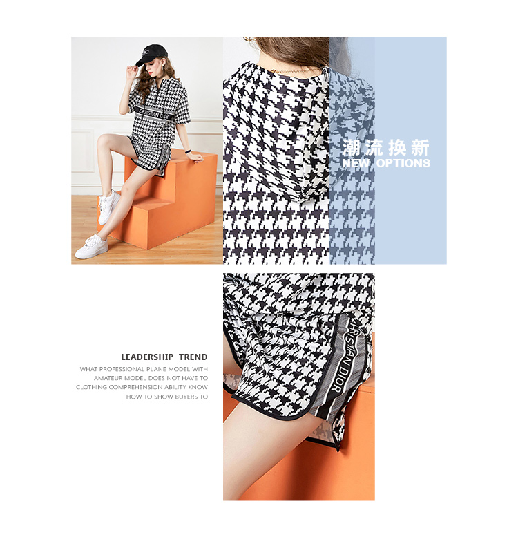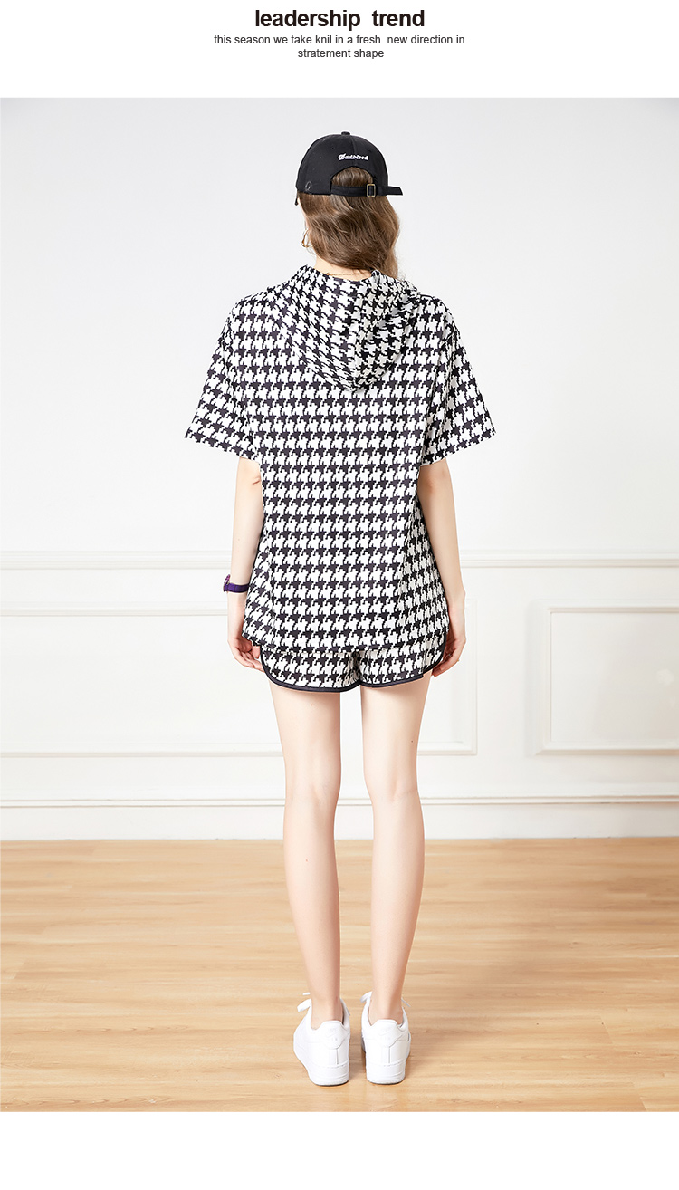 RY2623# 实拍-欧美时尚早春个性宽松连帽短袖冲锋衣+短裤印花套装
