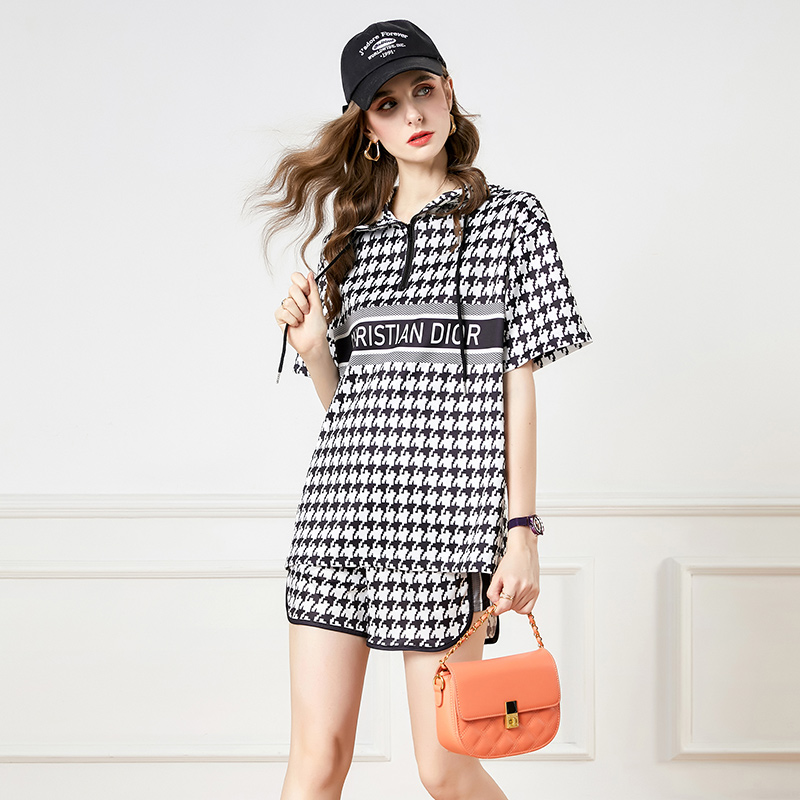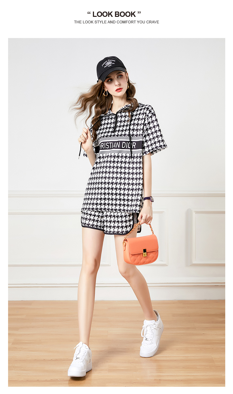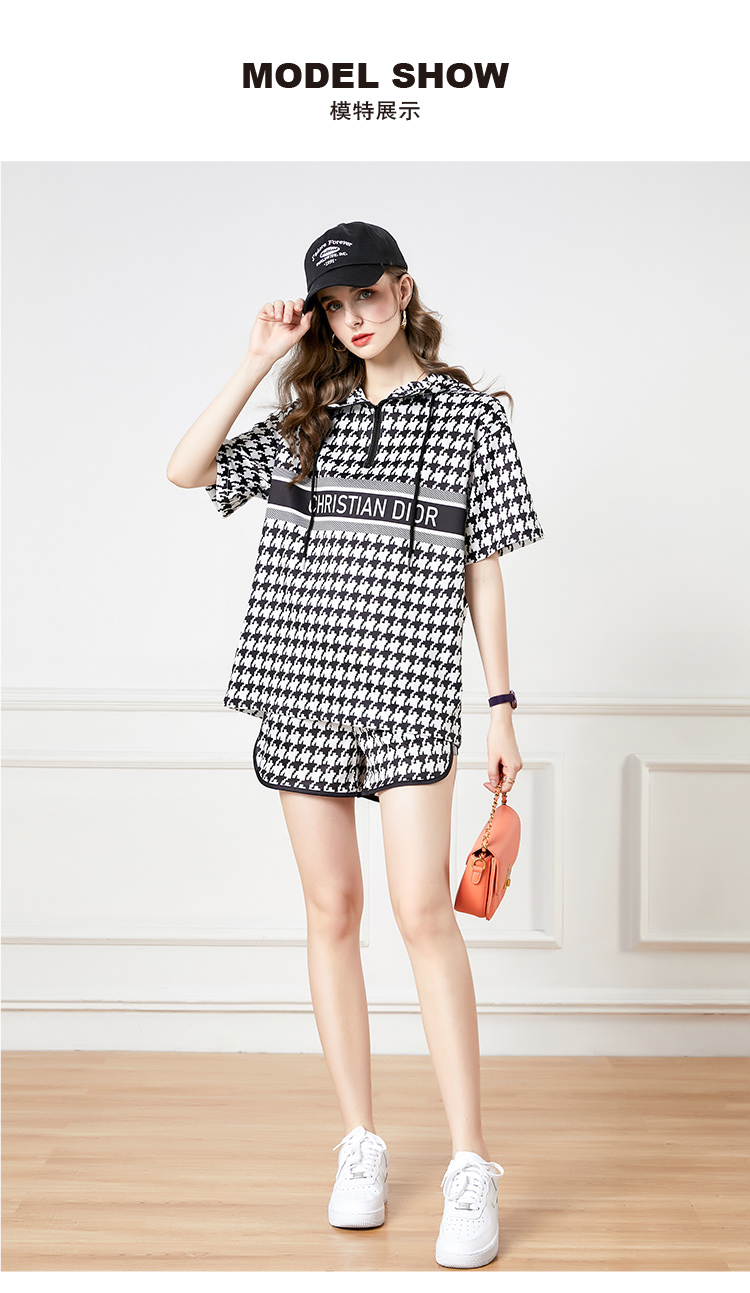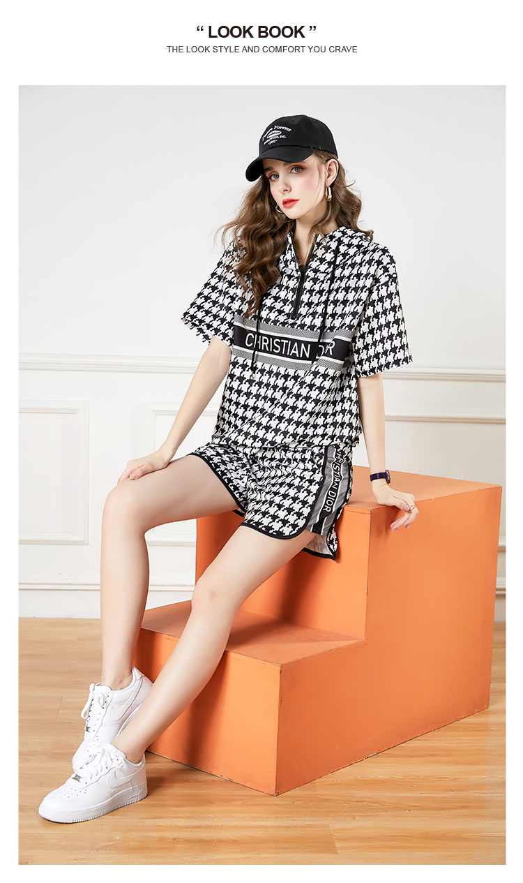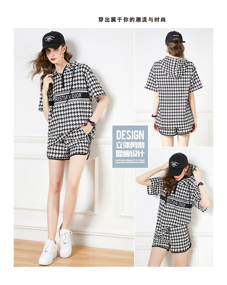 RY2623# 实拍-欧美时尚早春个性宽松连帽短袖冲锋衣+短裤印花套装