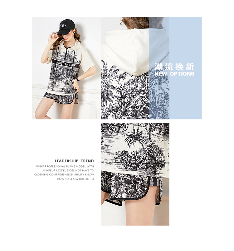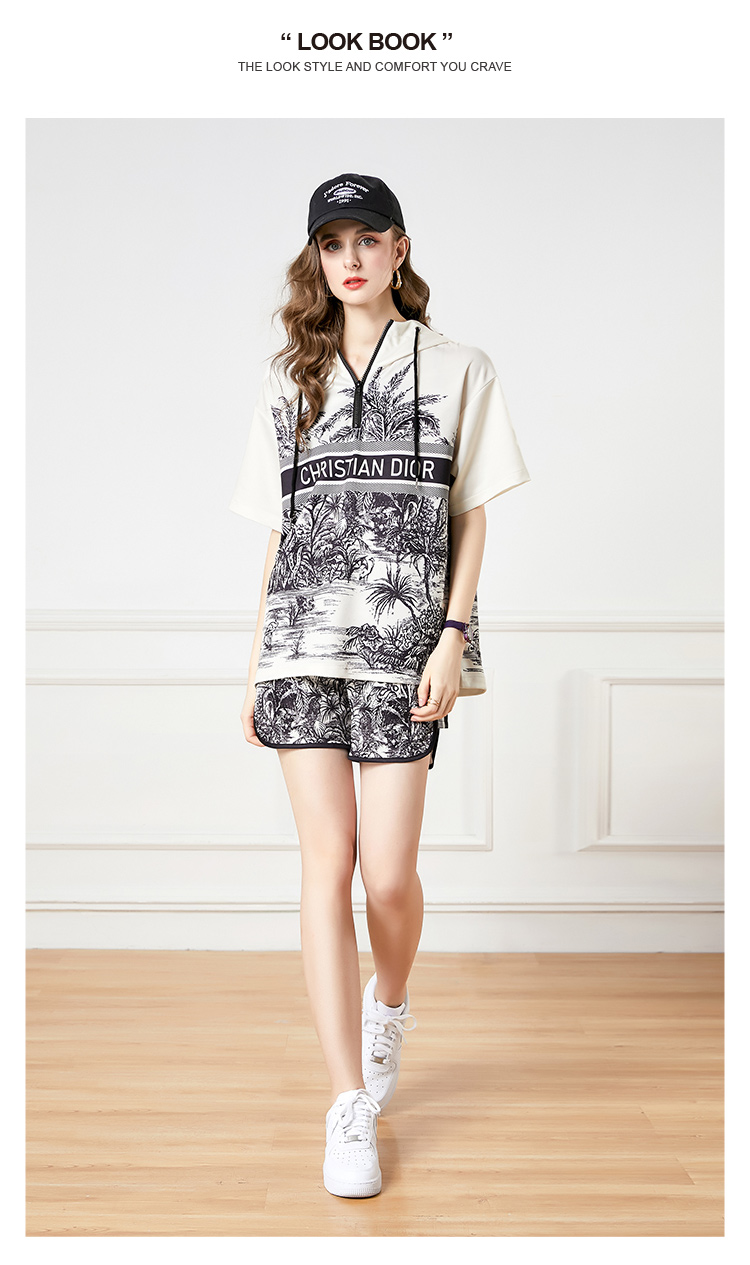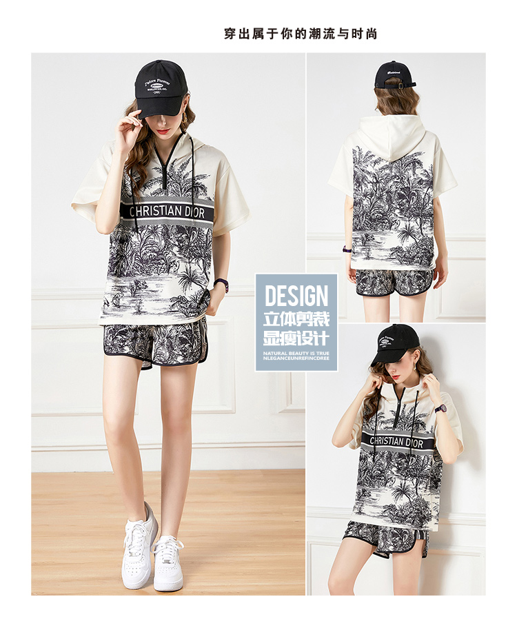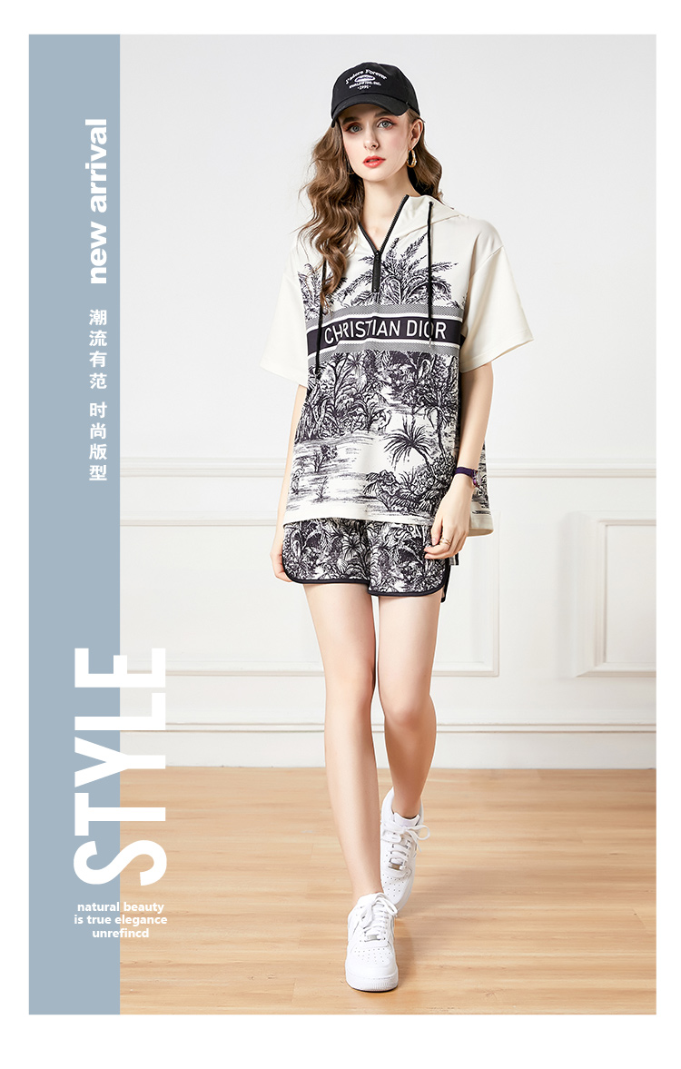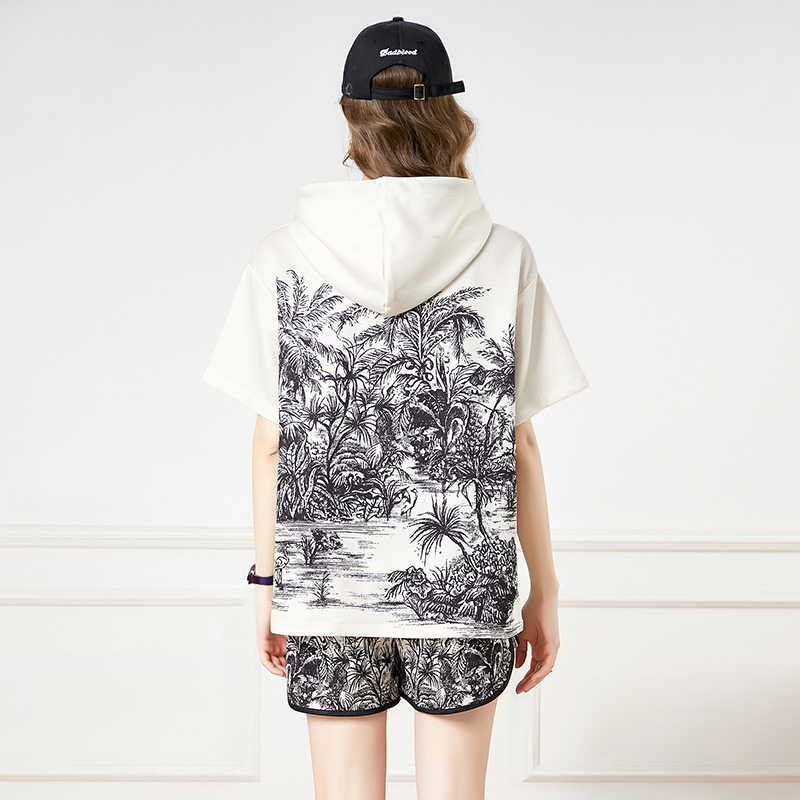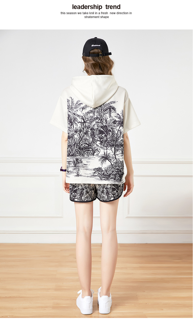 RY2624# 实拍-欧美时尚早春个性宽松连帽短袖冲锋衣+短裤印花套装