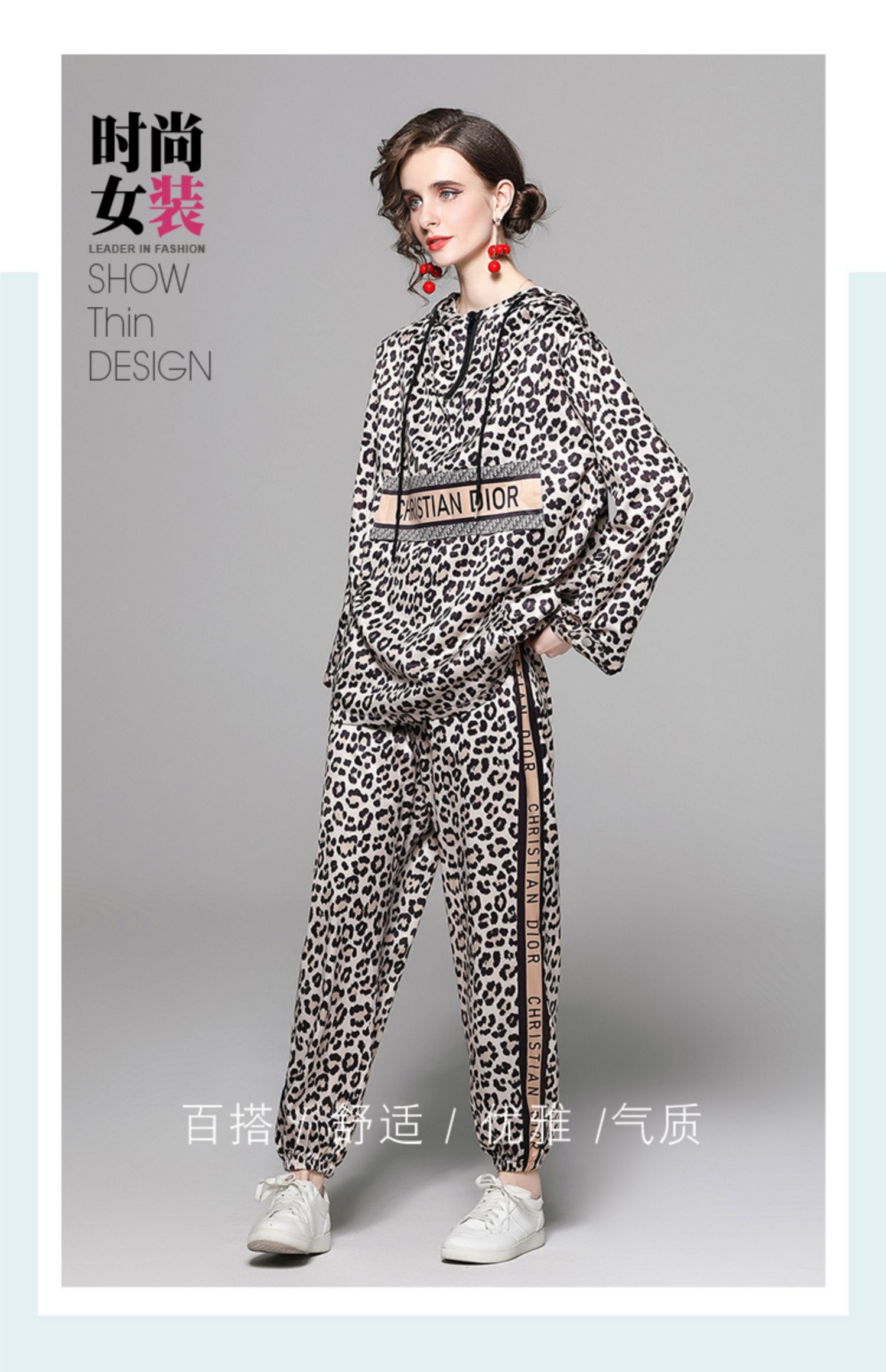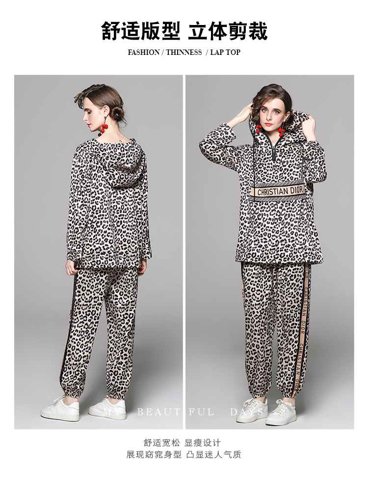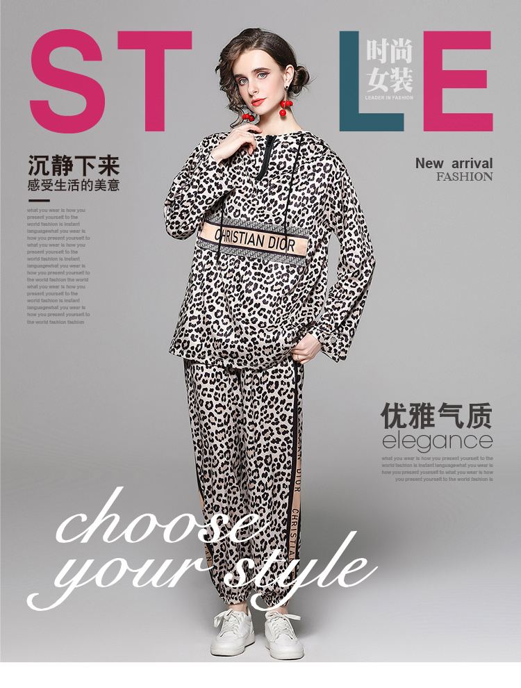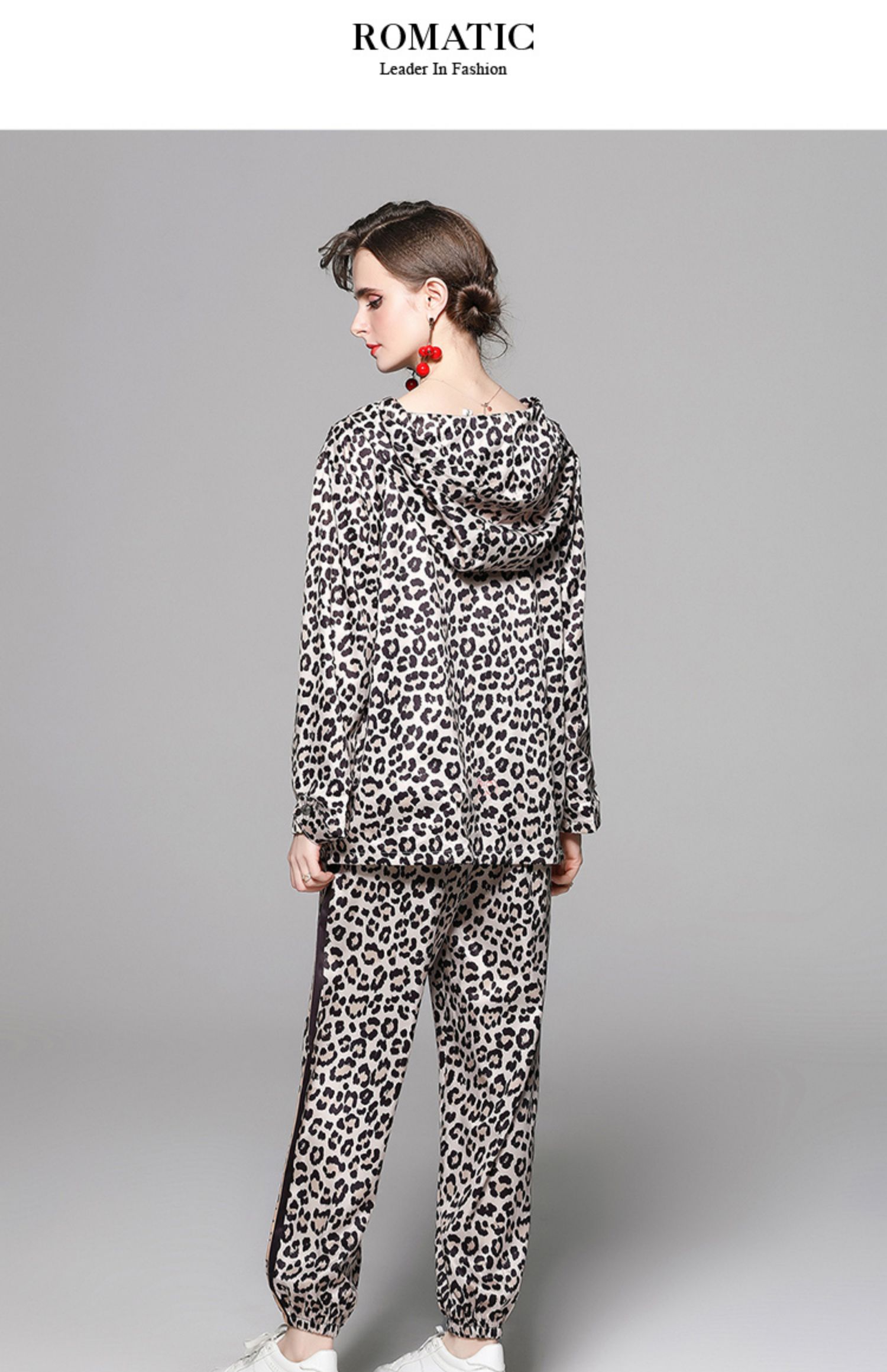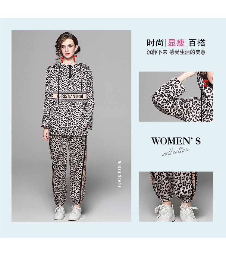 RY2627# 实拍-时尚宽松豹纹印花冲锋衣+长裤休闲套装