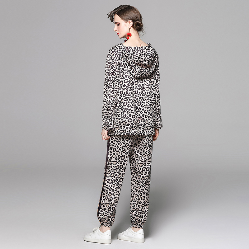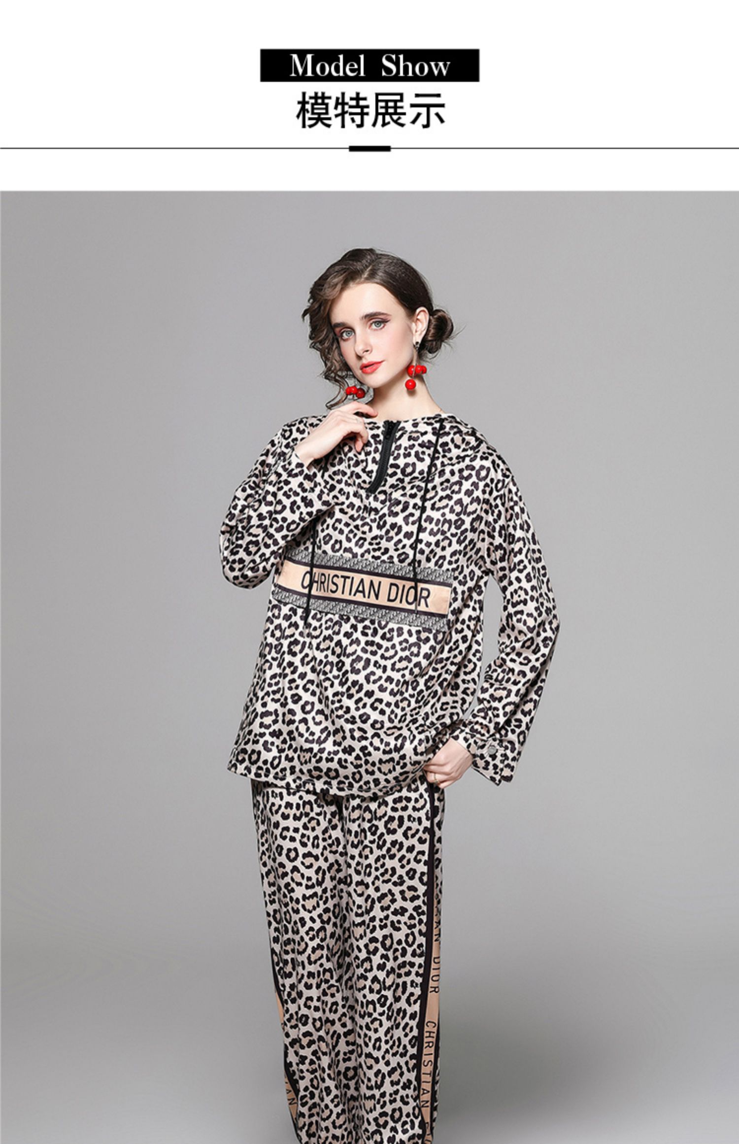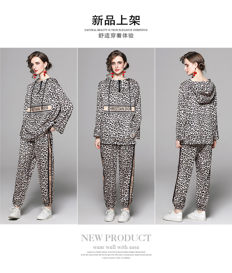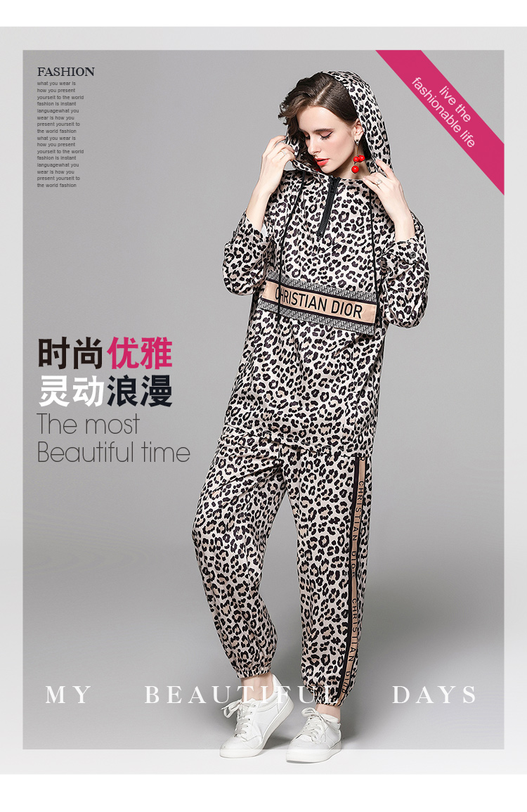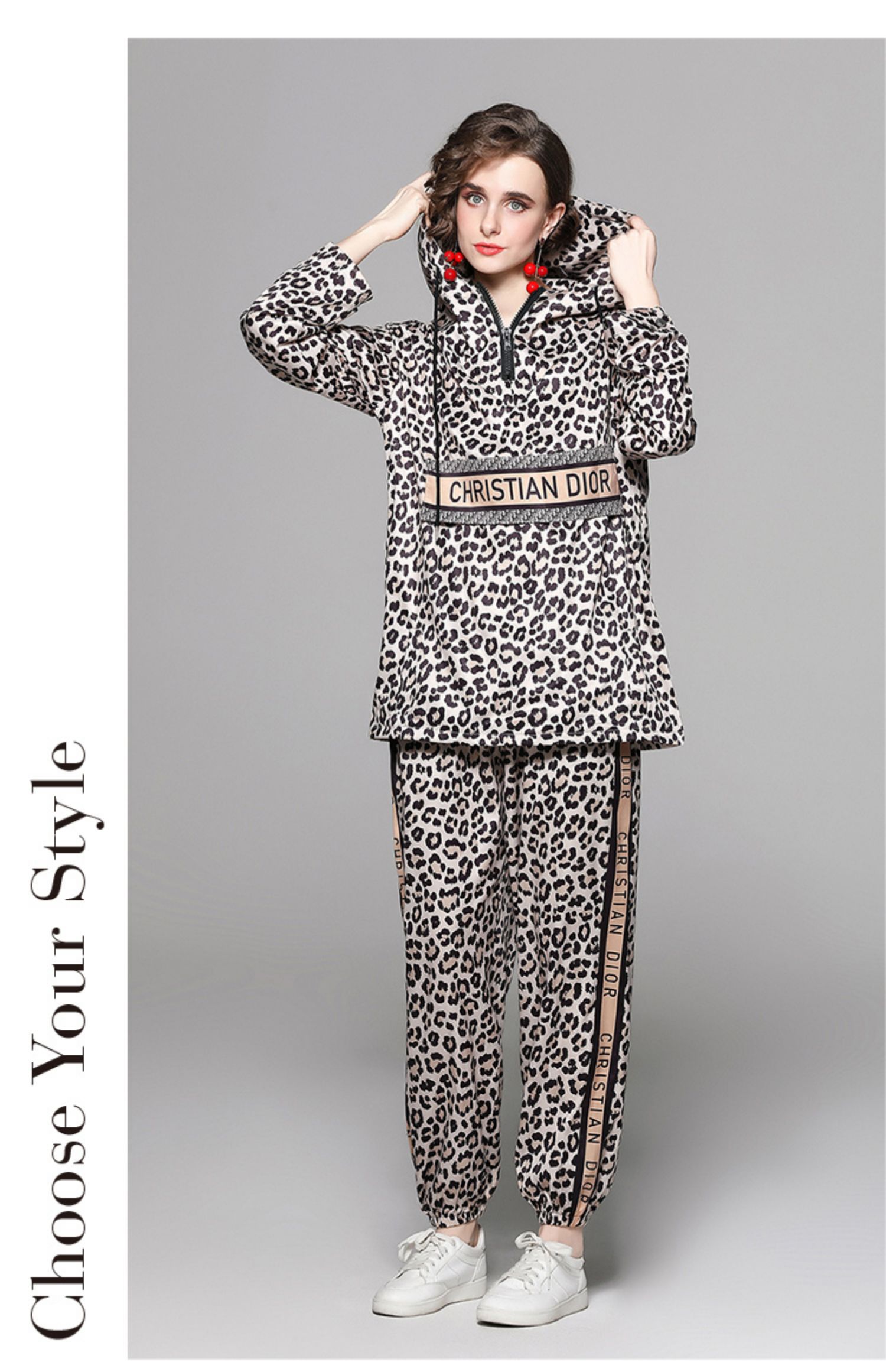 RY2627# 实拍-时尚宽松豹纹印花冲锋衣+长裤休闲套装