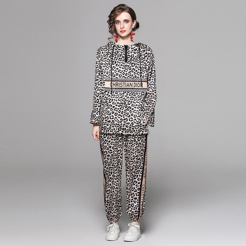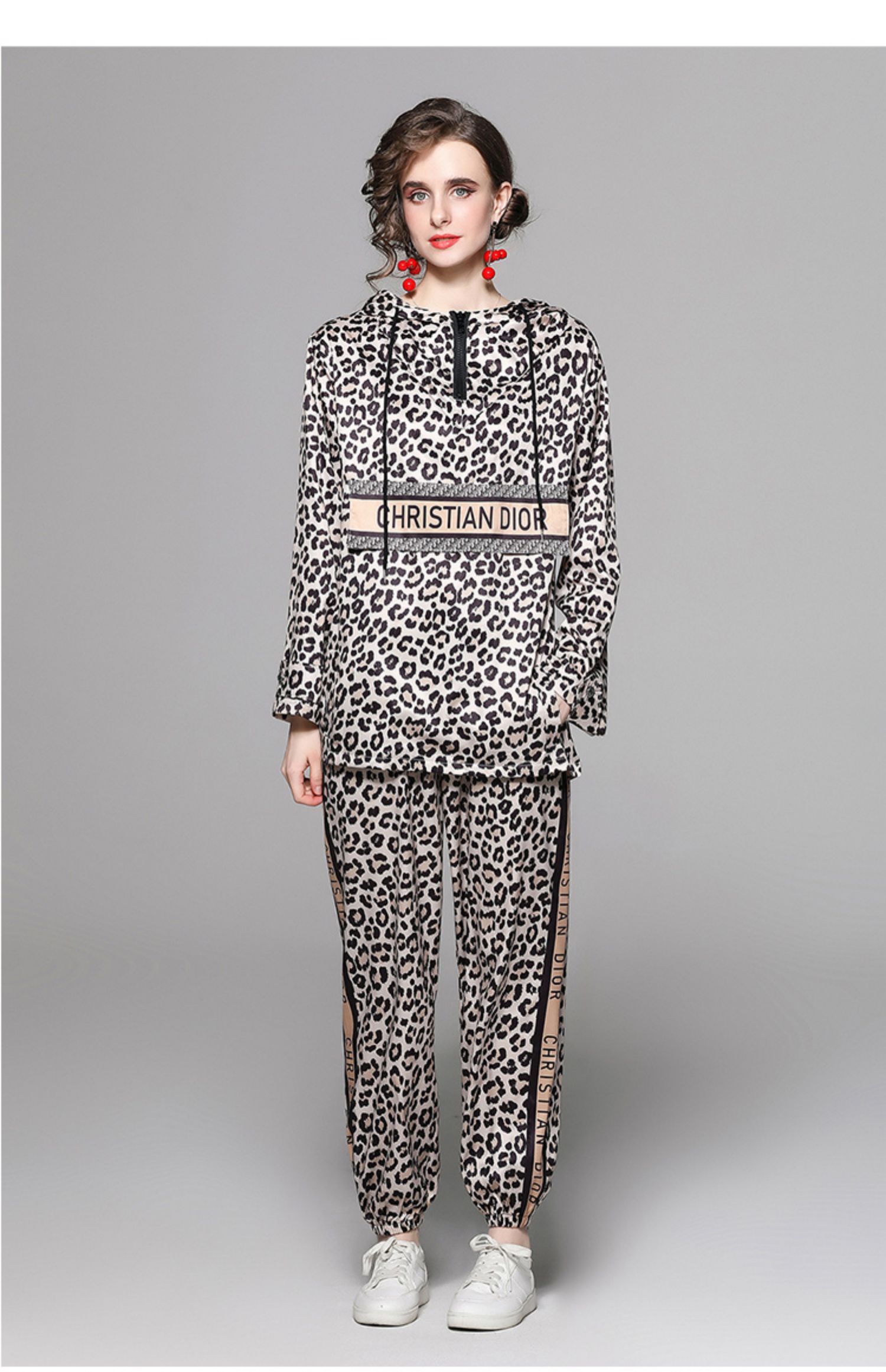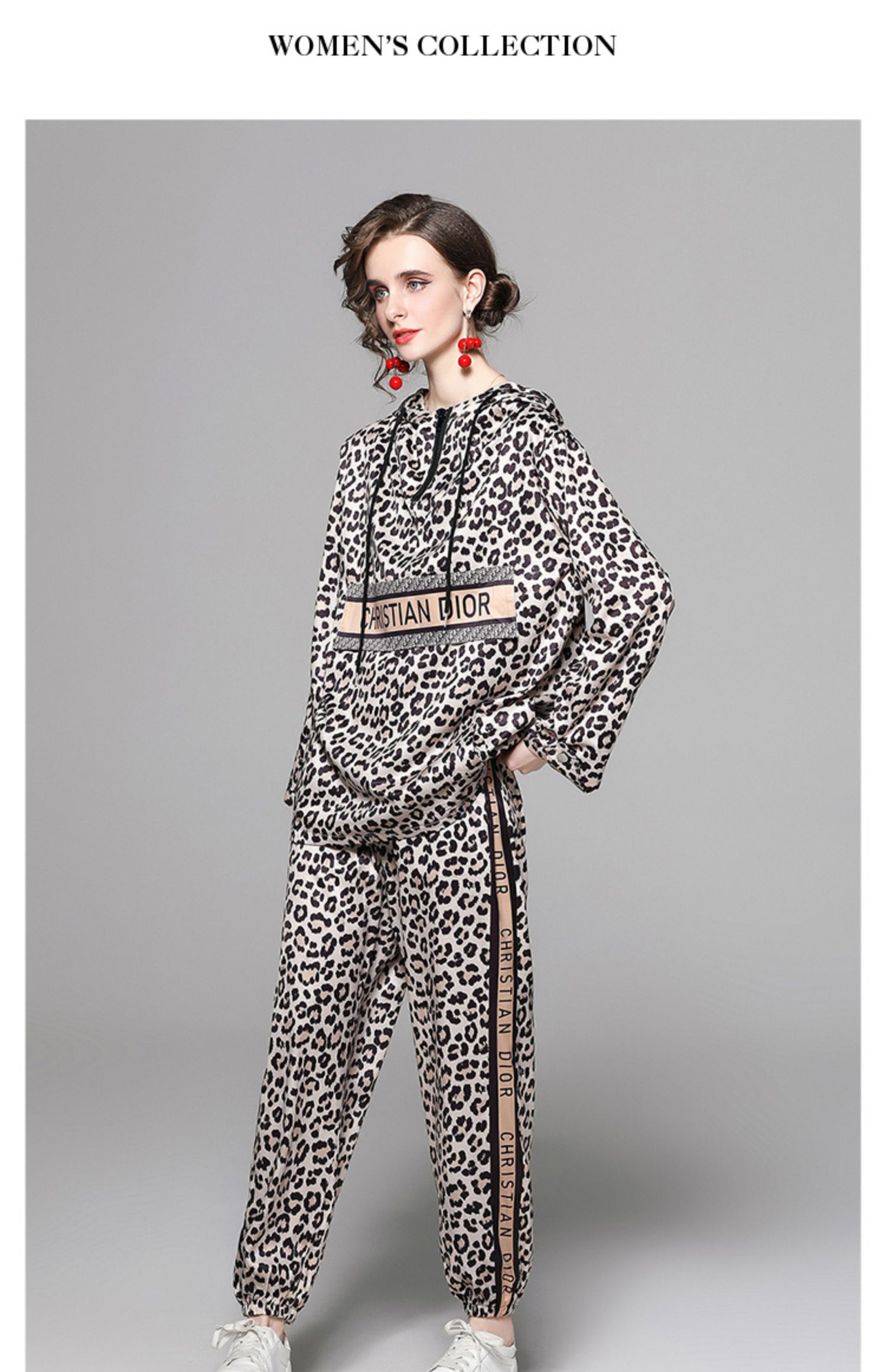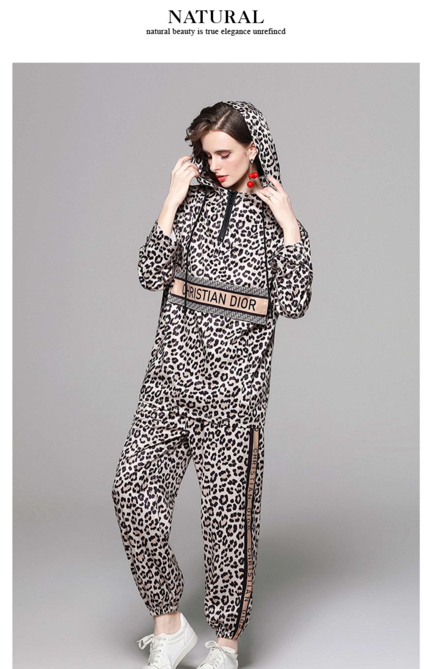 RY2627# 实拍-时尚宽松豹纹印花冲锋衣+长裤休闲套装