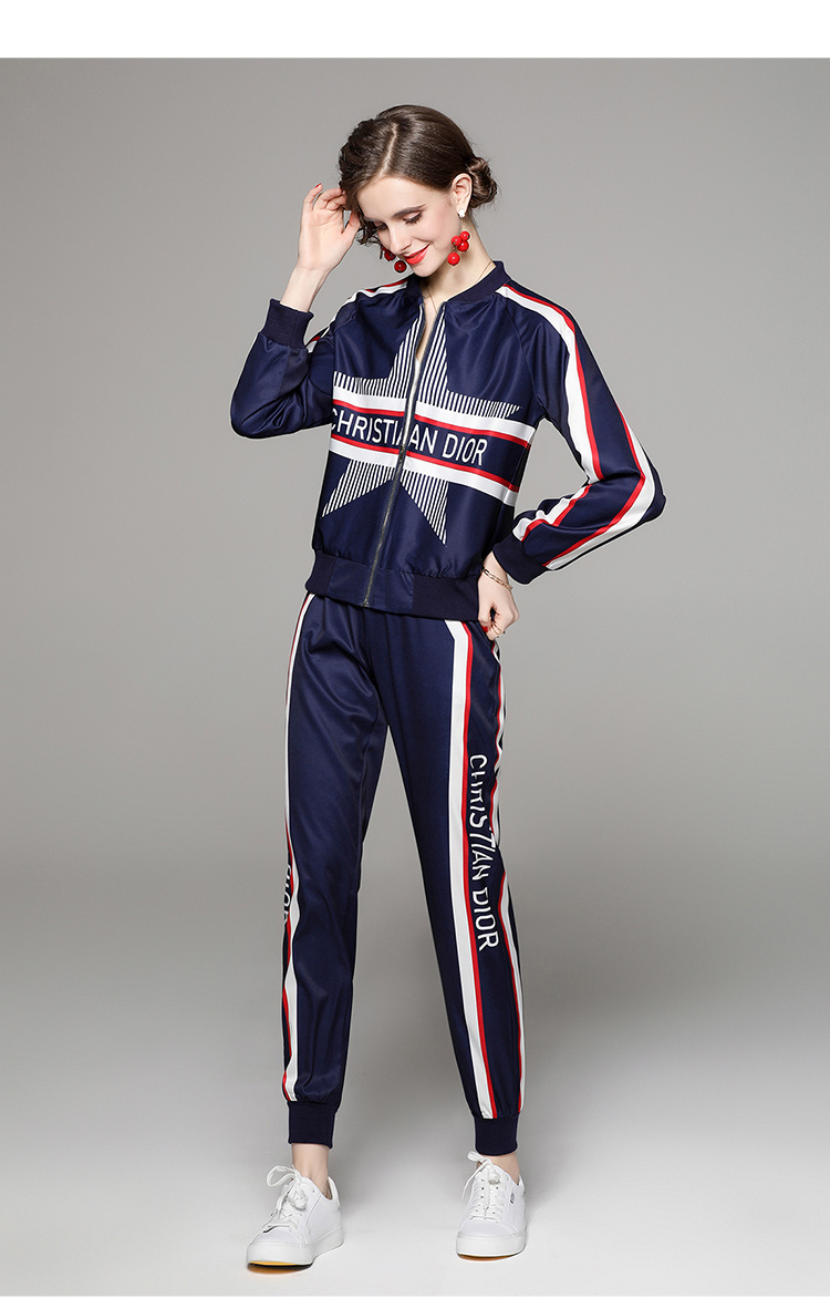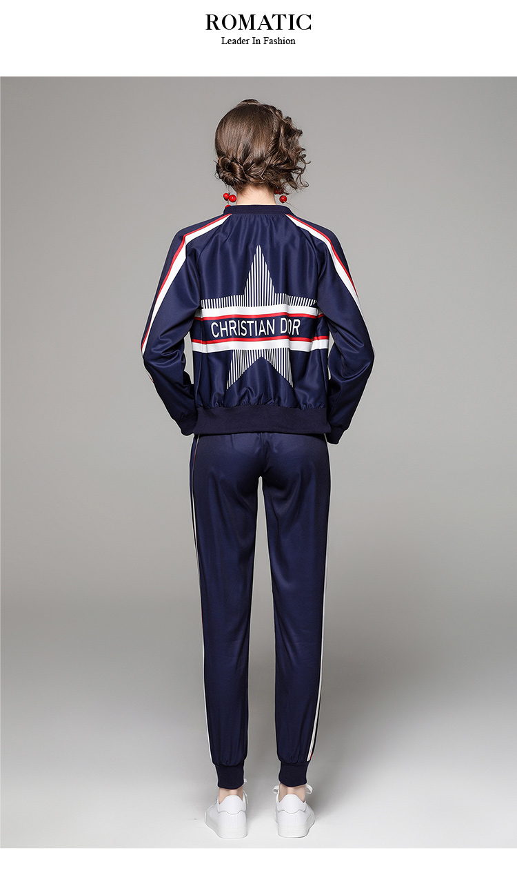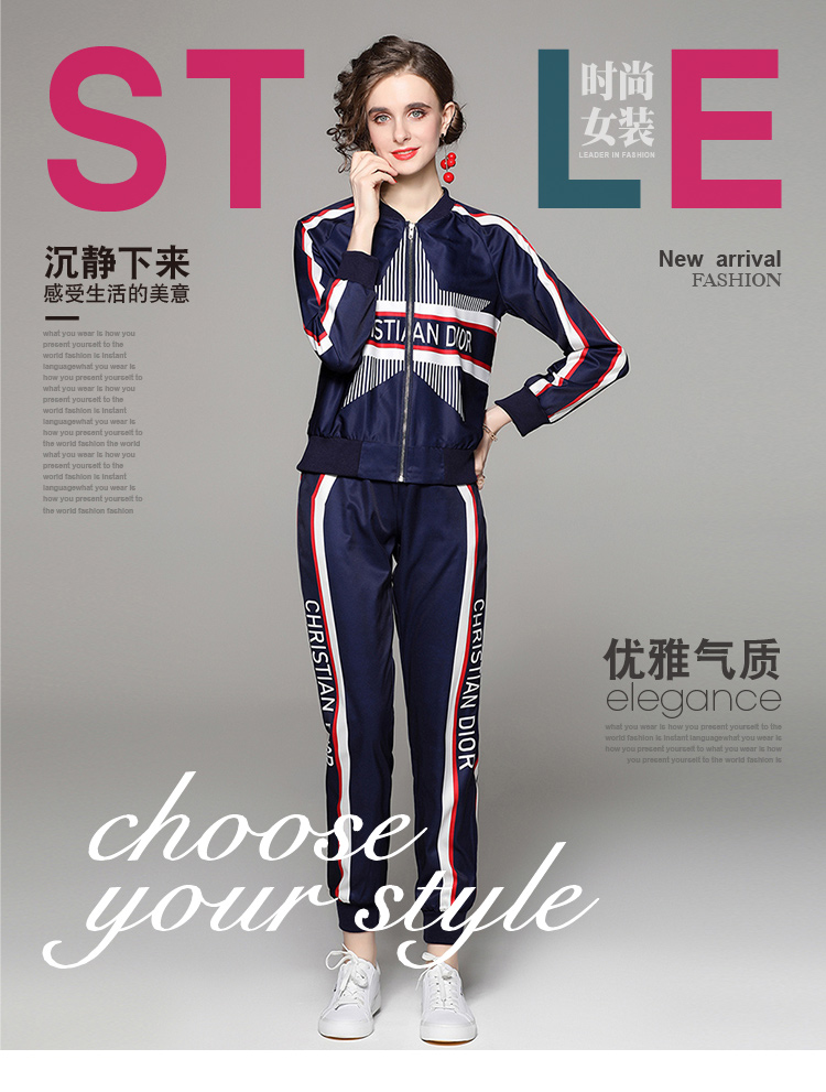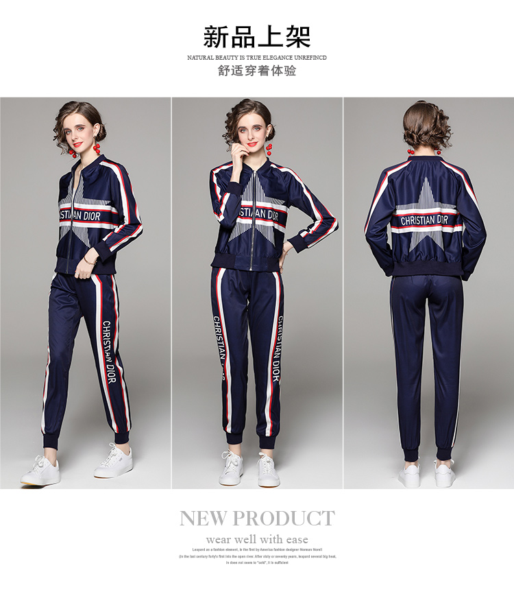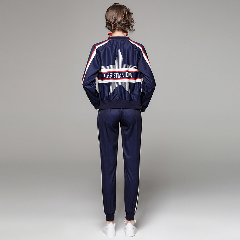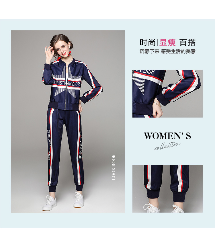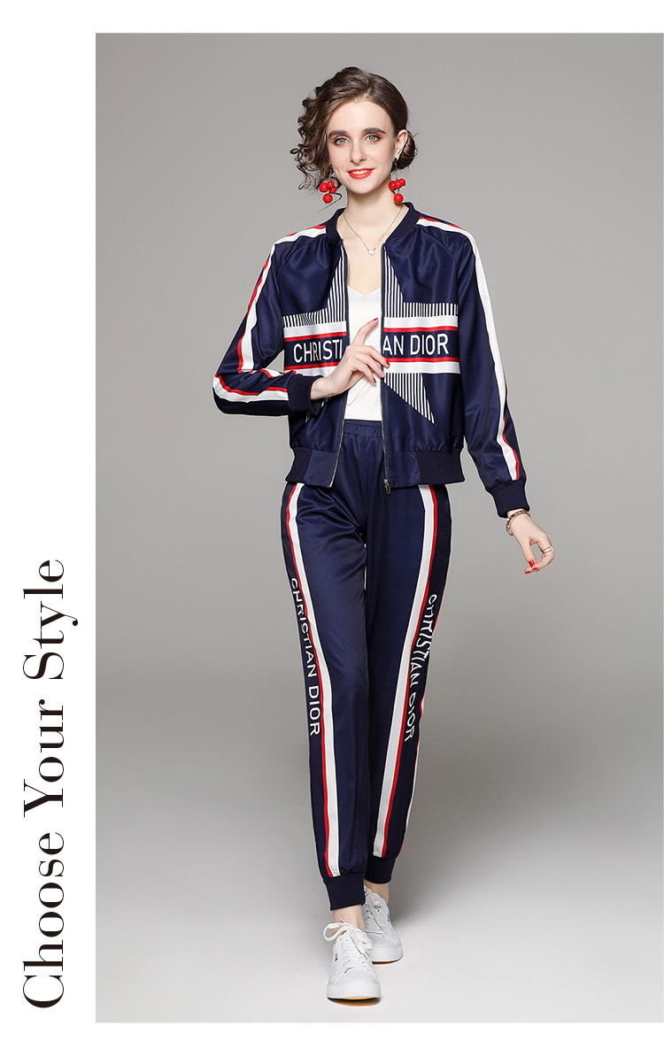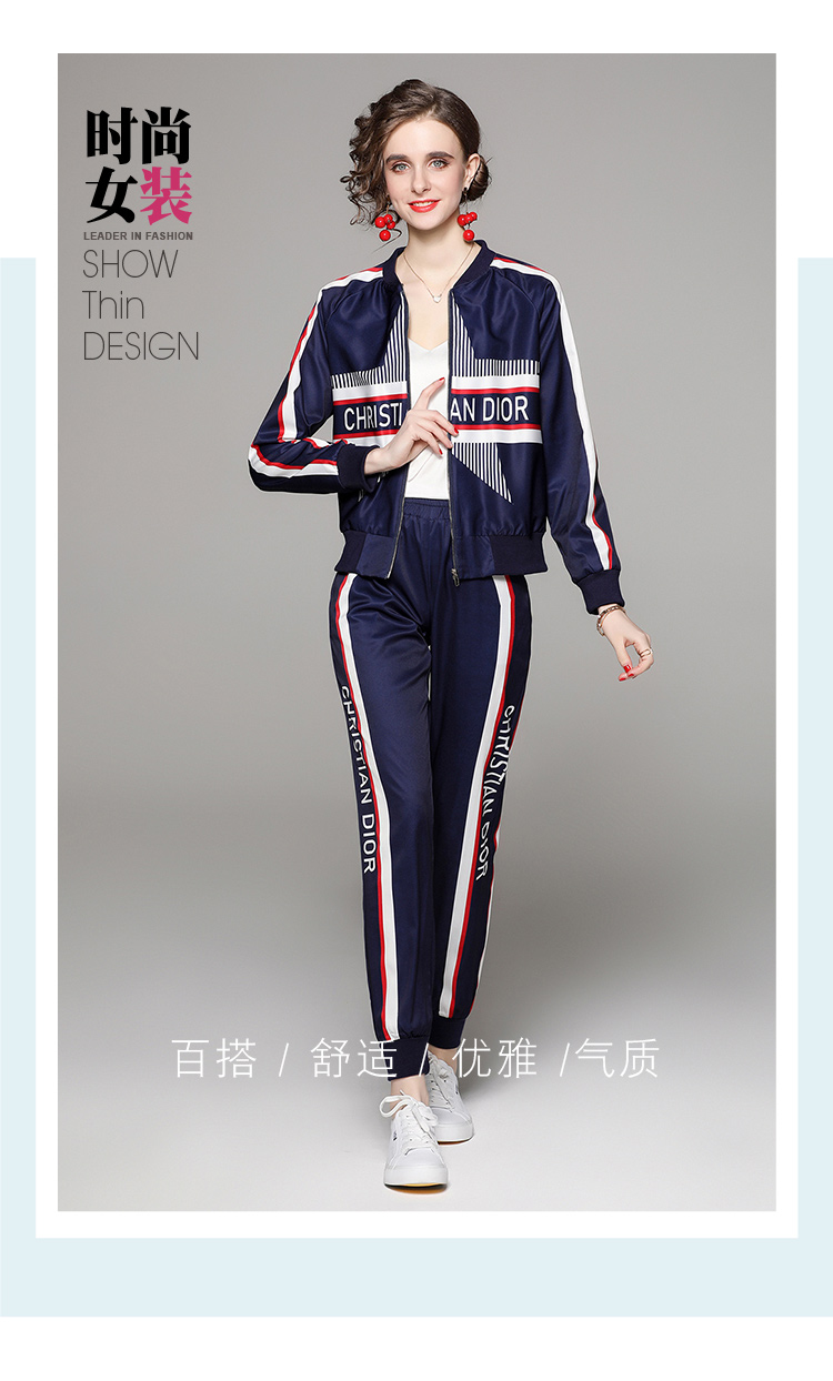 RY2628#欧美时尚百搭开衫定位印花夹克外套+裤子套装