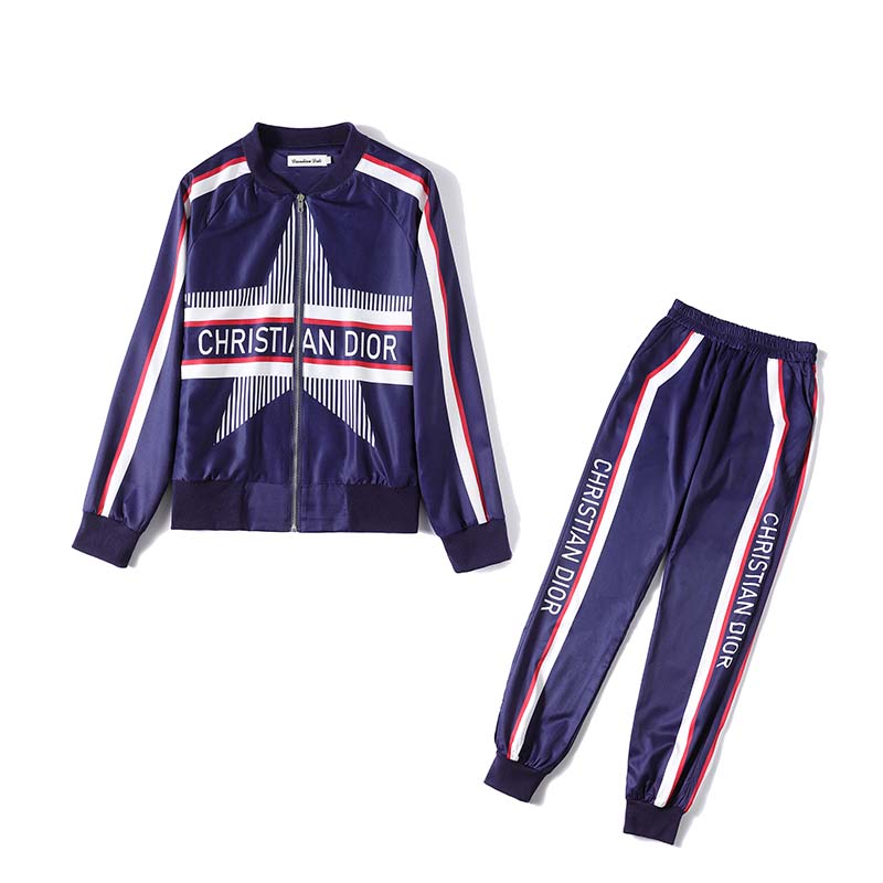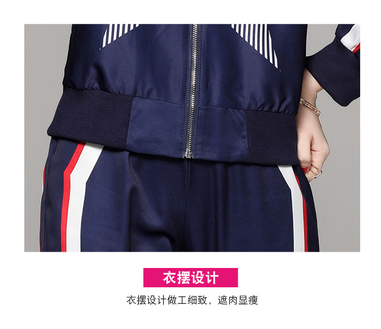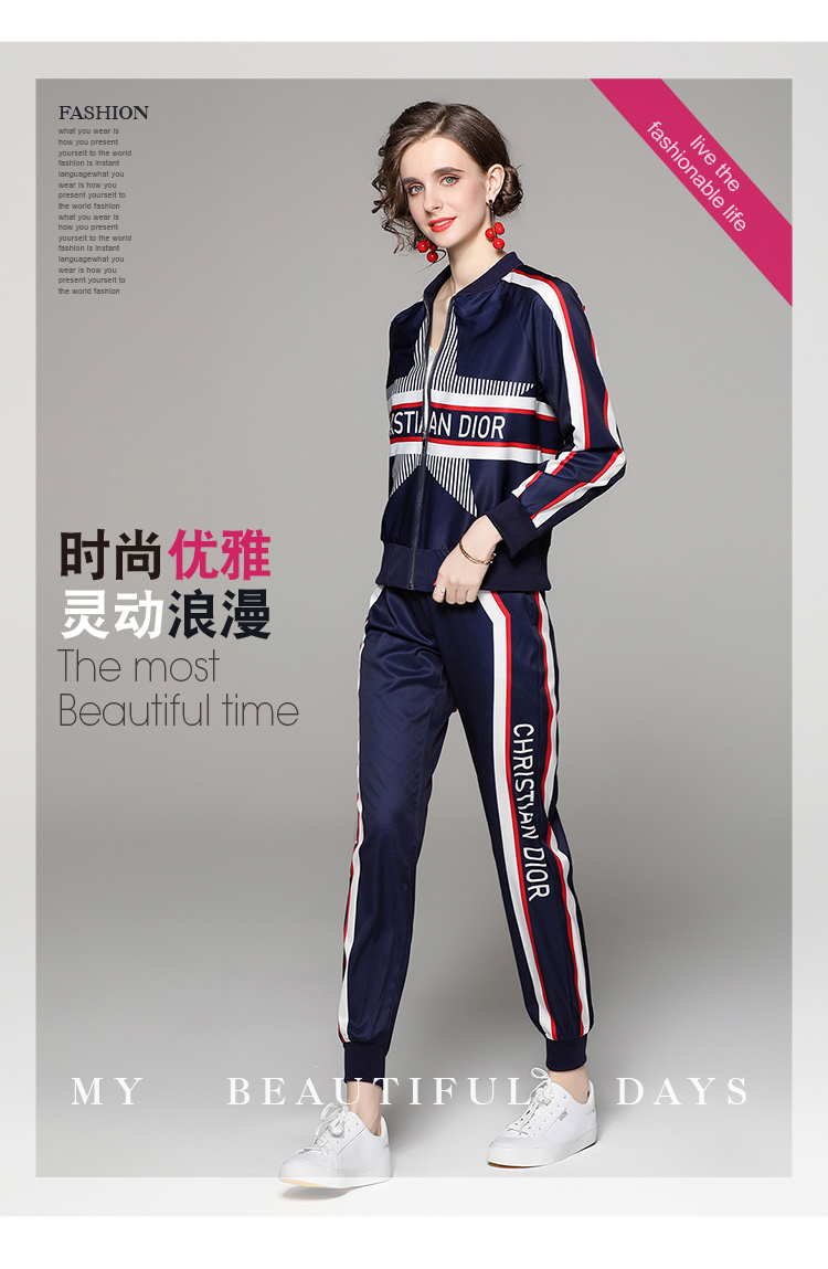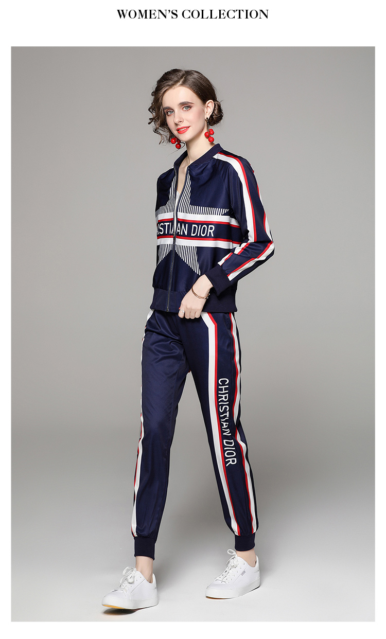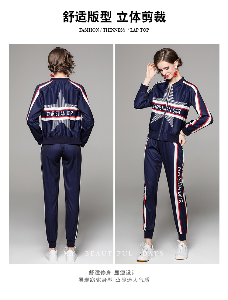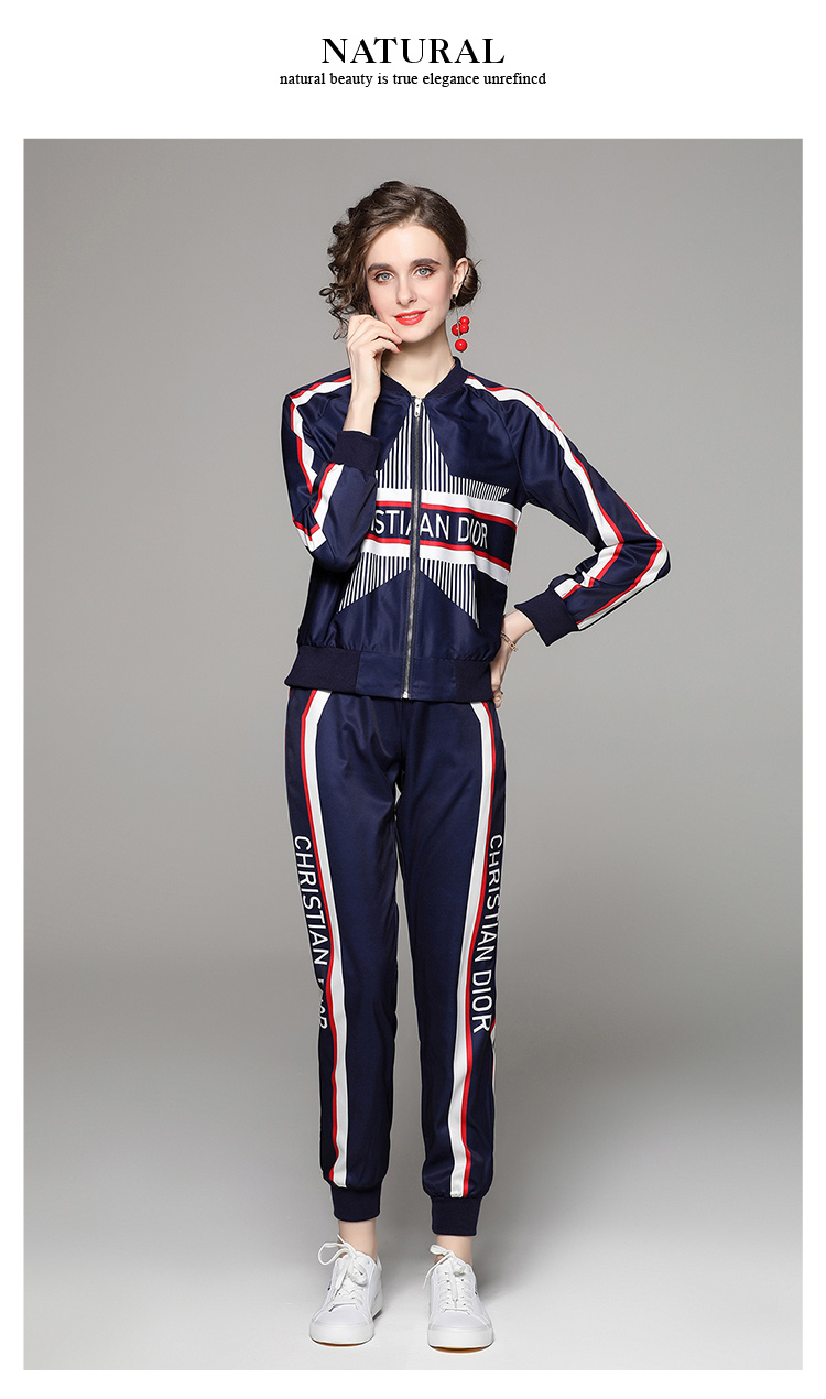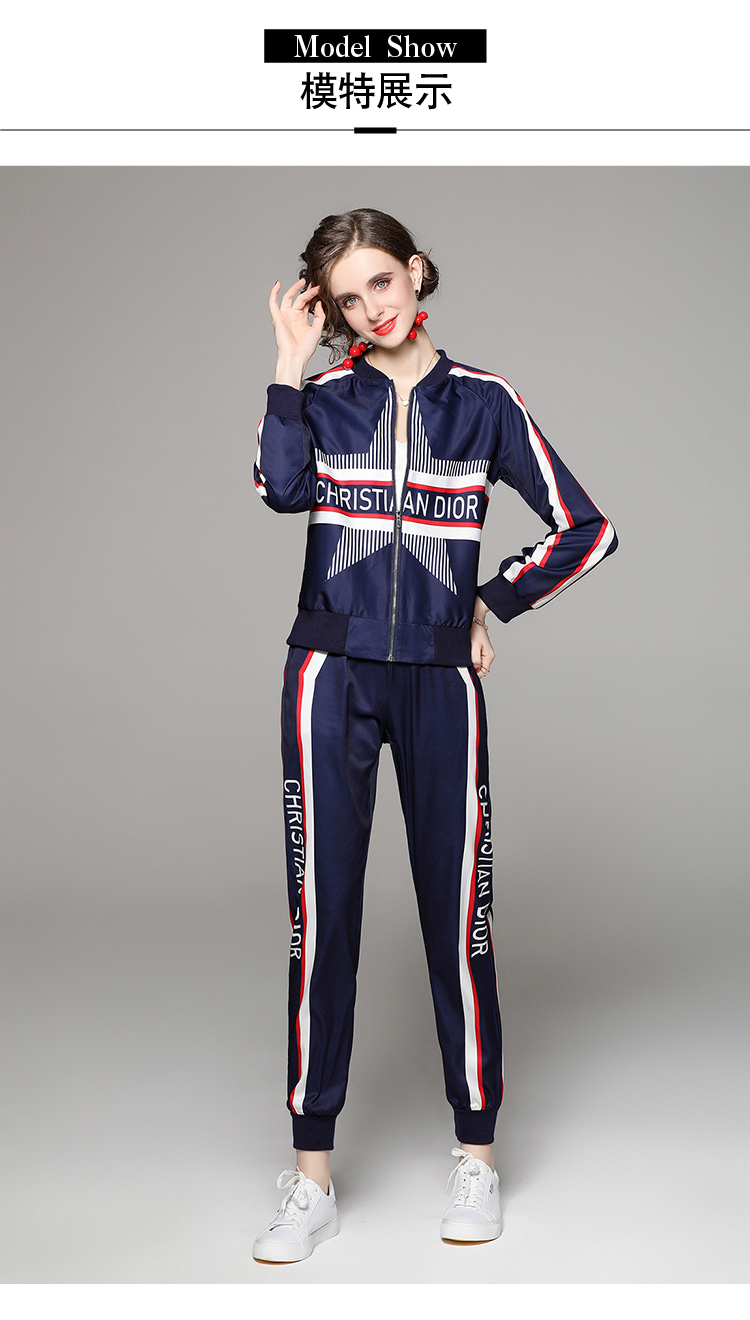 RY2628#欧美时尚百搭开衫定位印花夹克外套+裤子套装