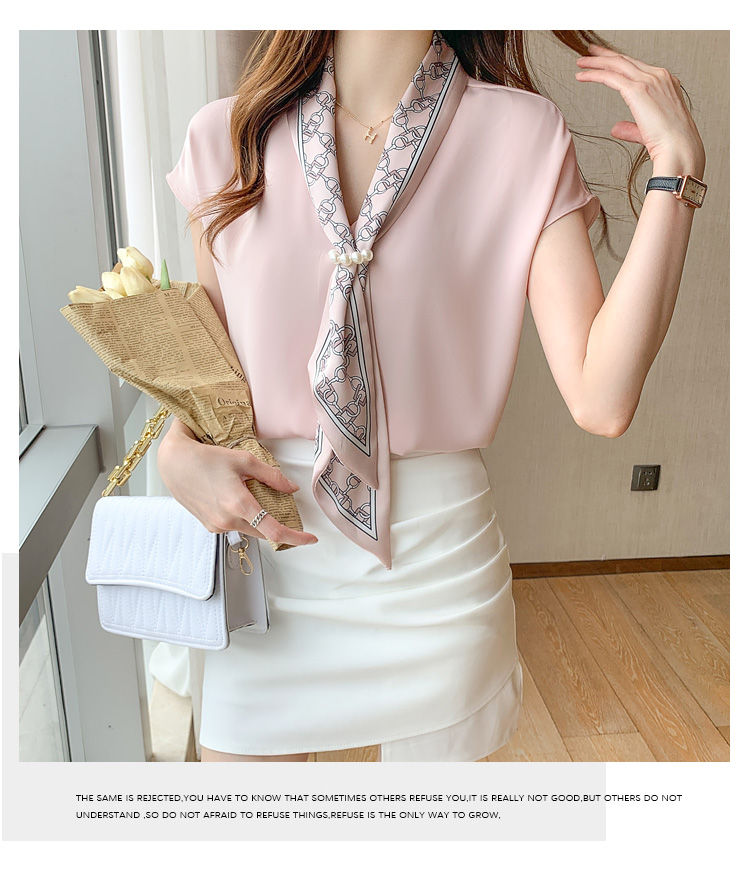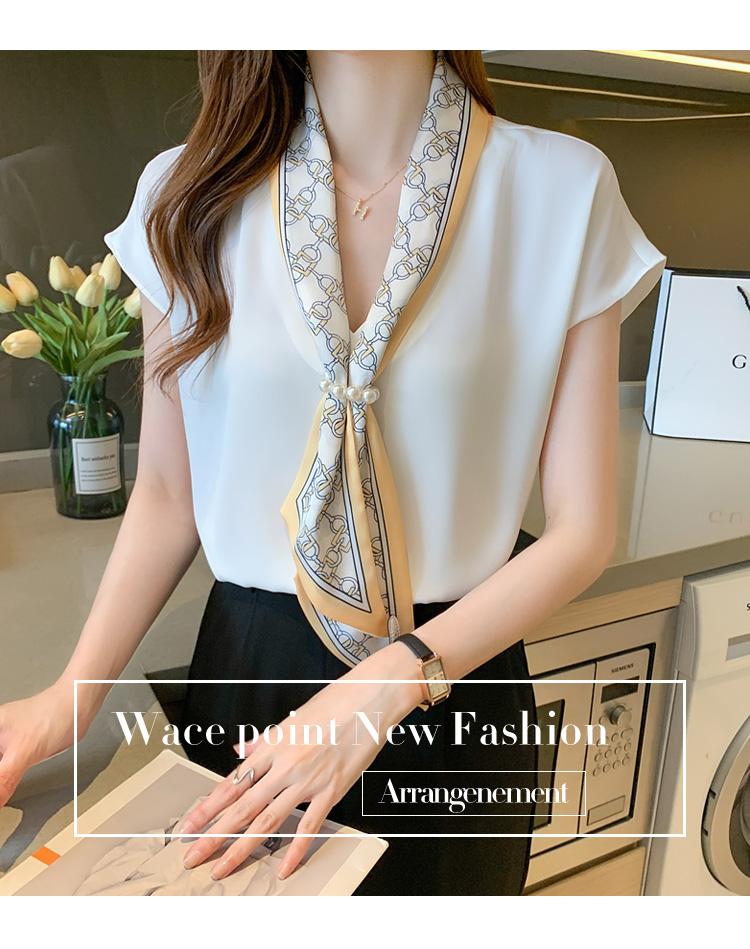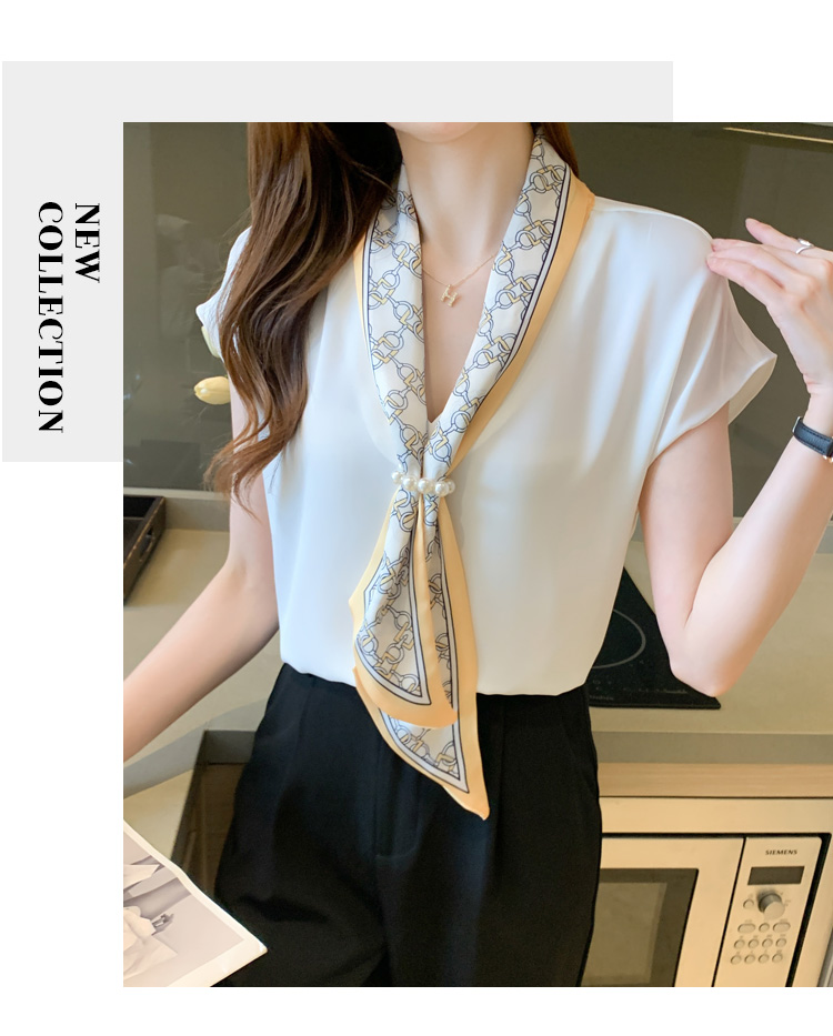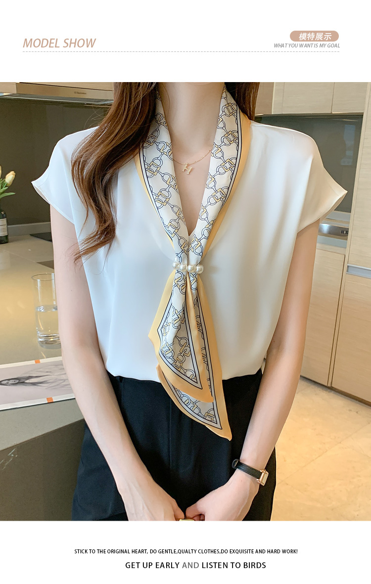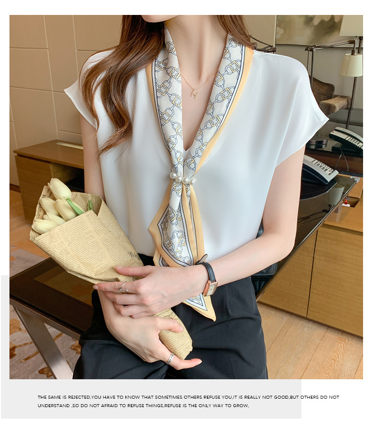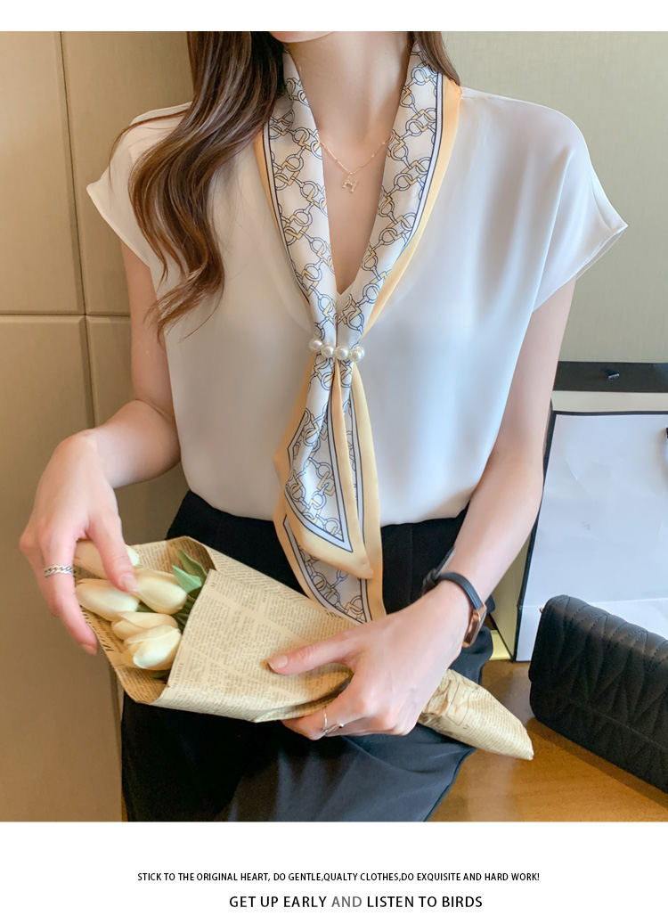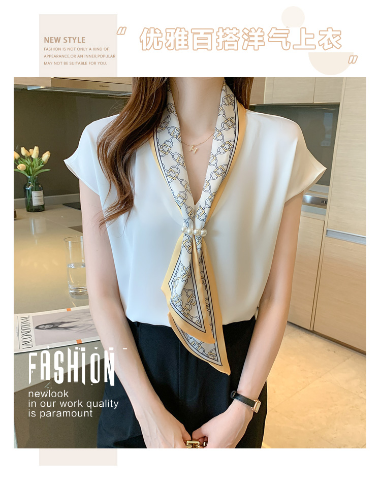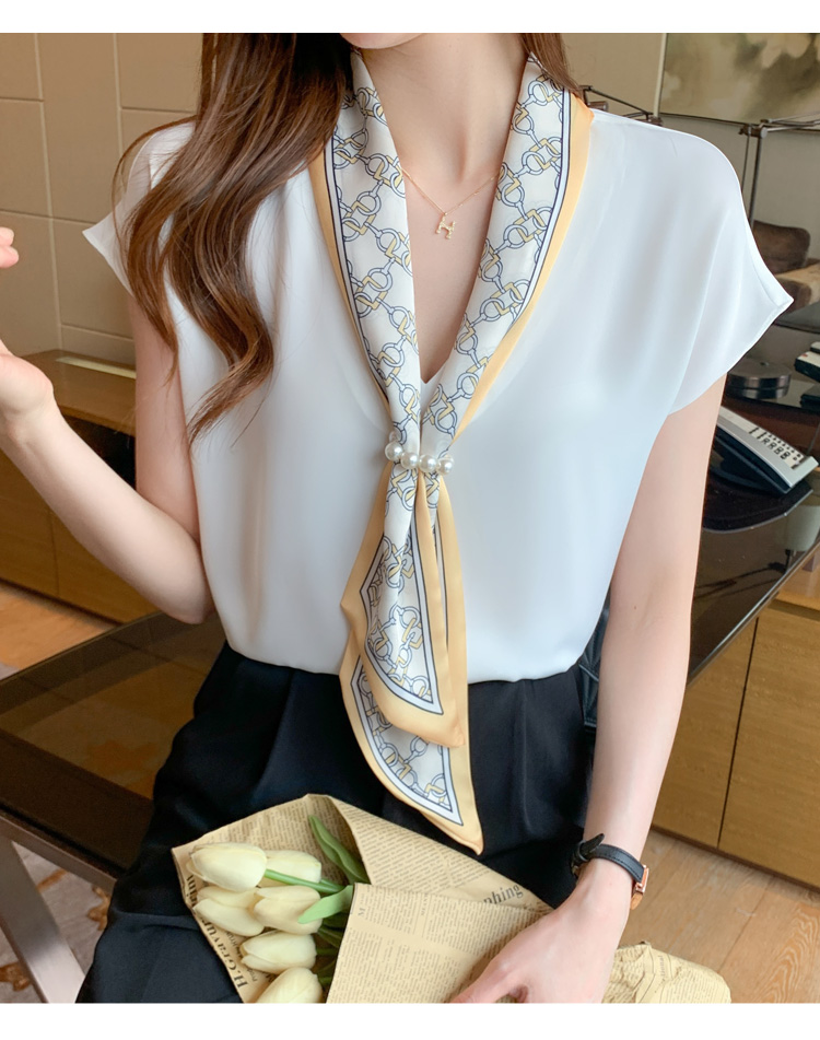 RY2642# 实拍新款2026年夏季韩范新款百搭无袖珍珠丝巾小衫