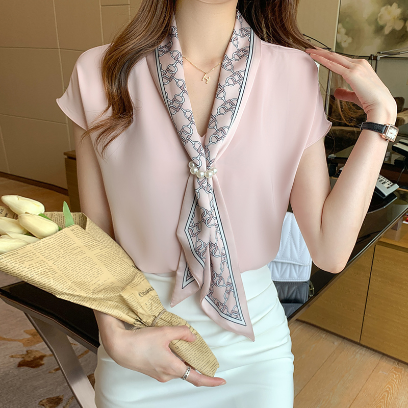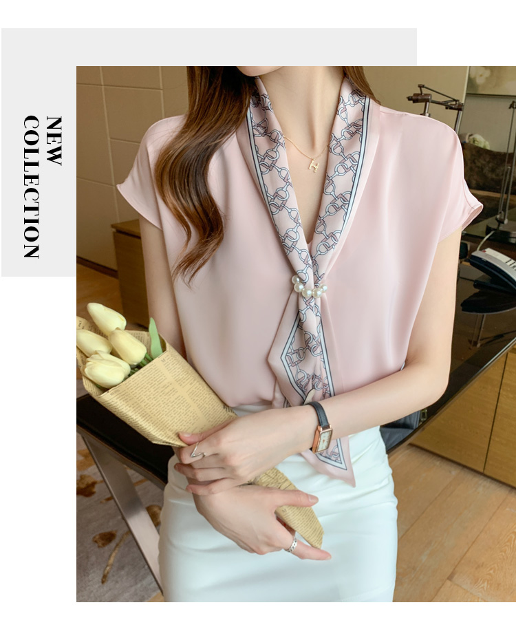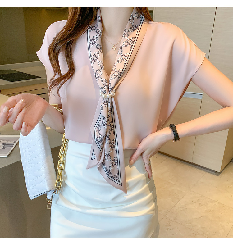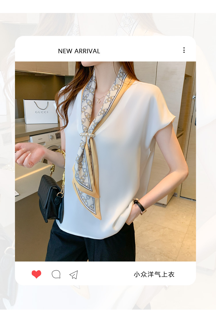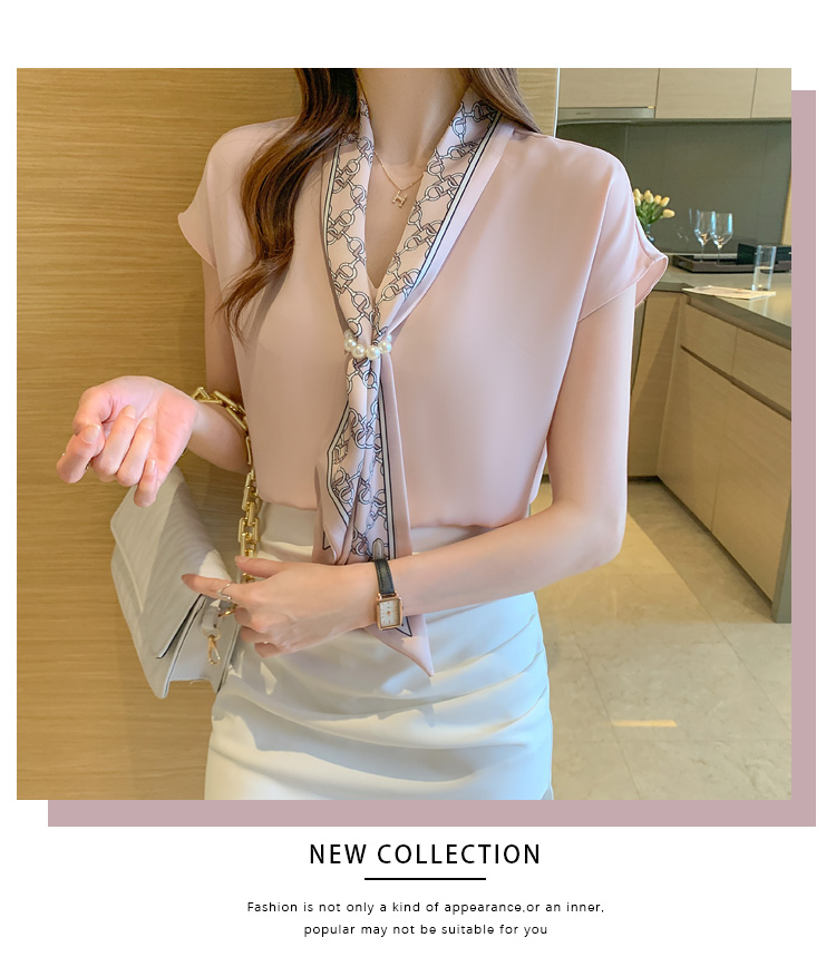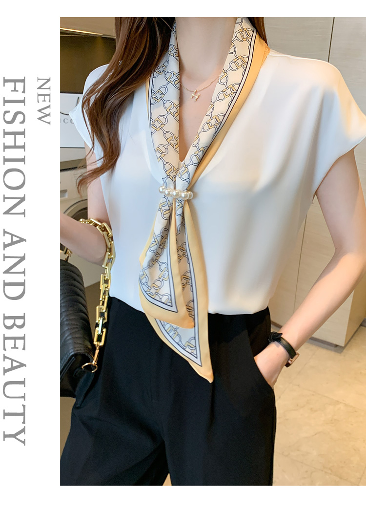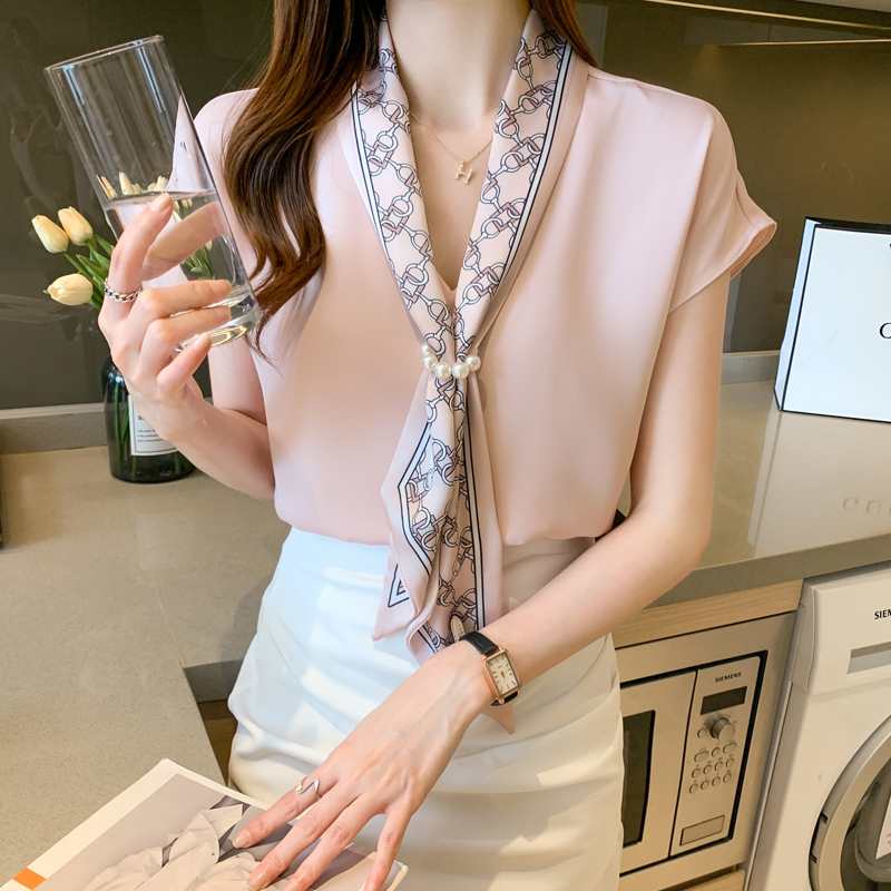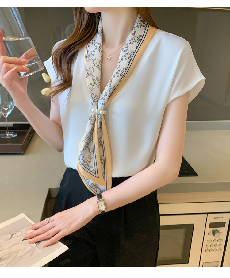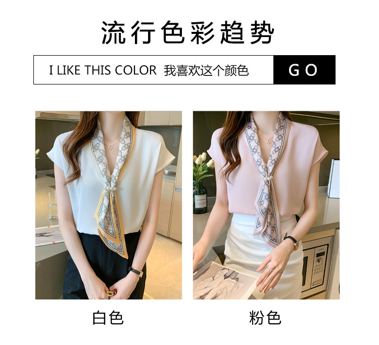 RY2642# 实拍新款2026年夏季韩范新款百搭无袖珍珠丝巾小衫