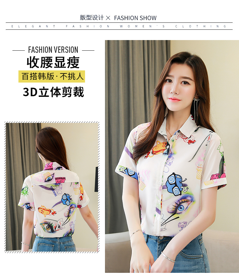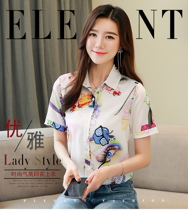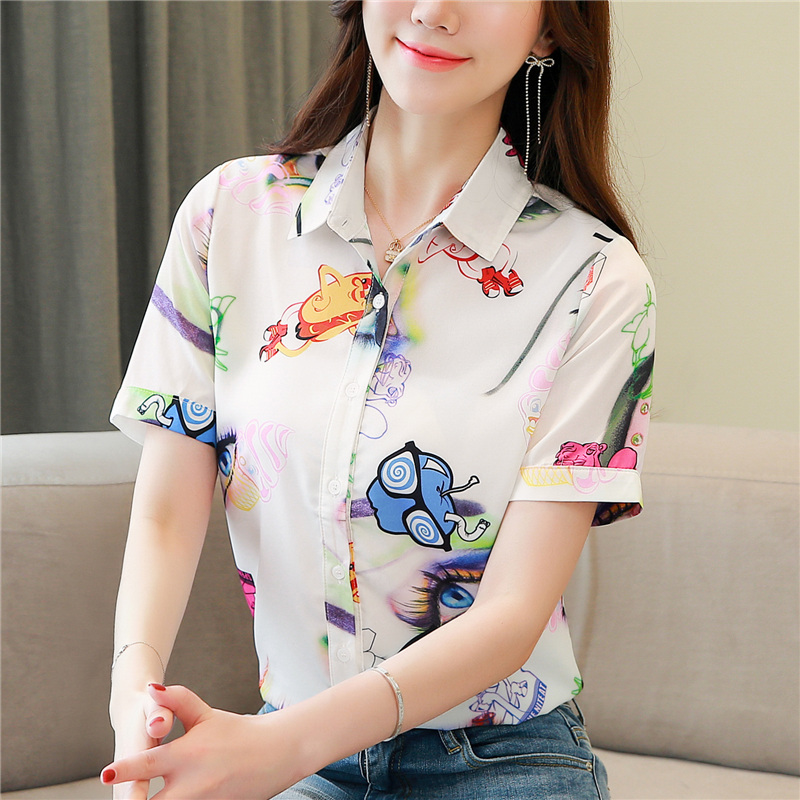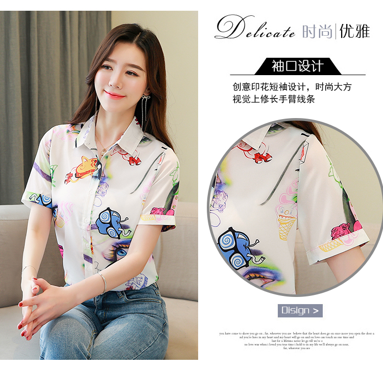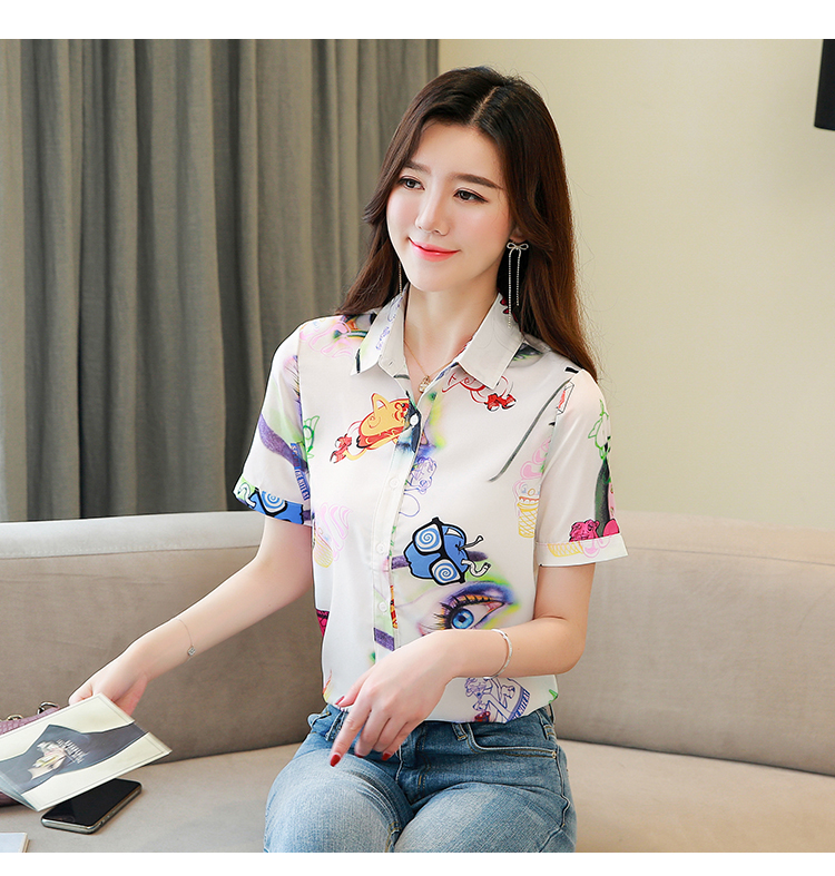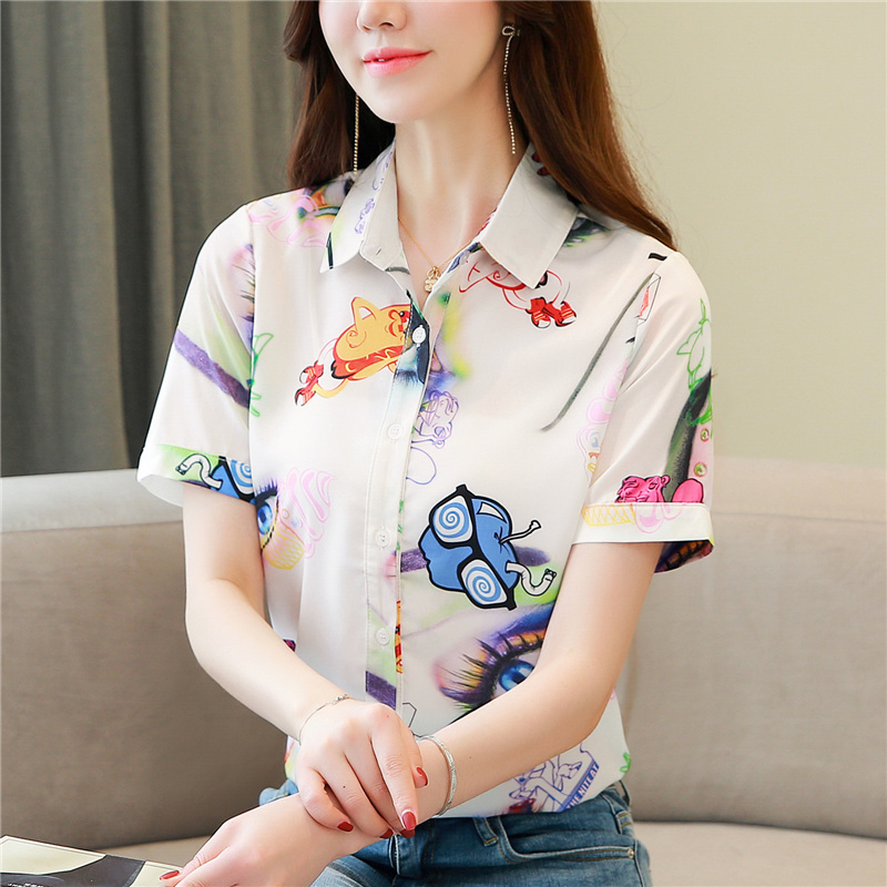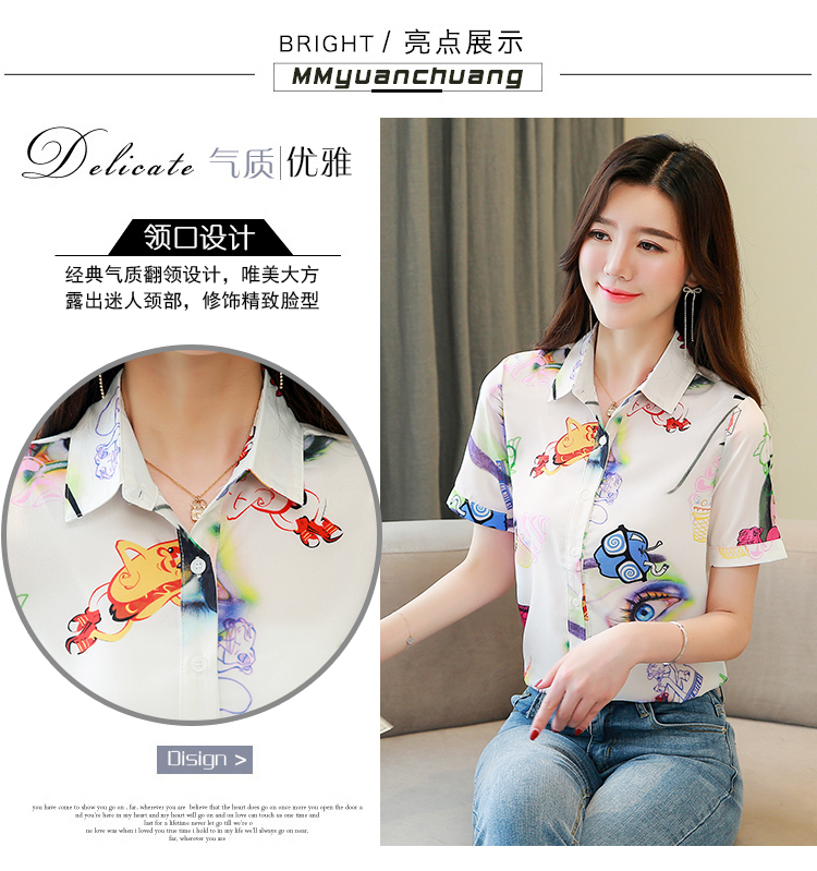 RY2686# 女装2026夏季新款气质桑蚕丝翻领衬衫时尚印花重磅真丝短袖上衣女