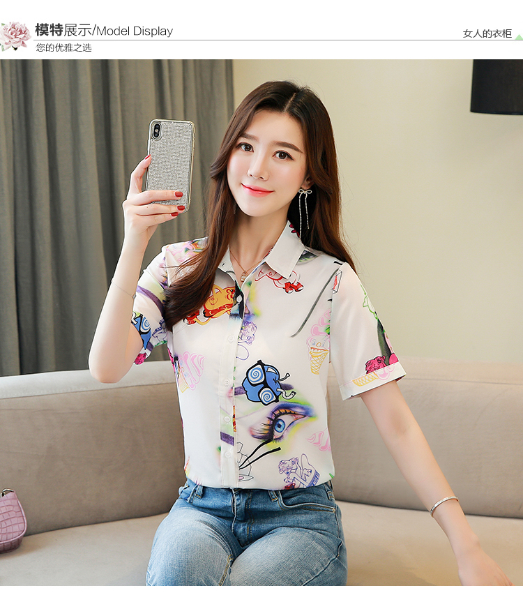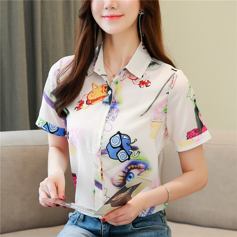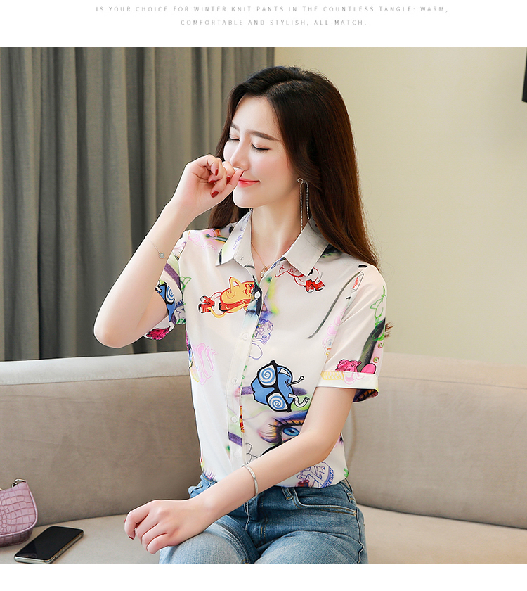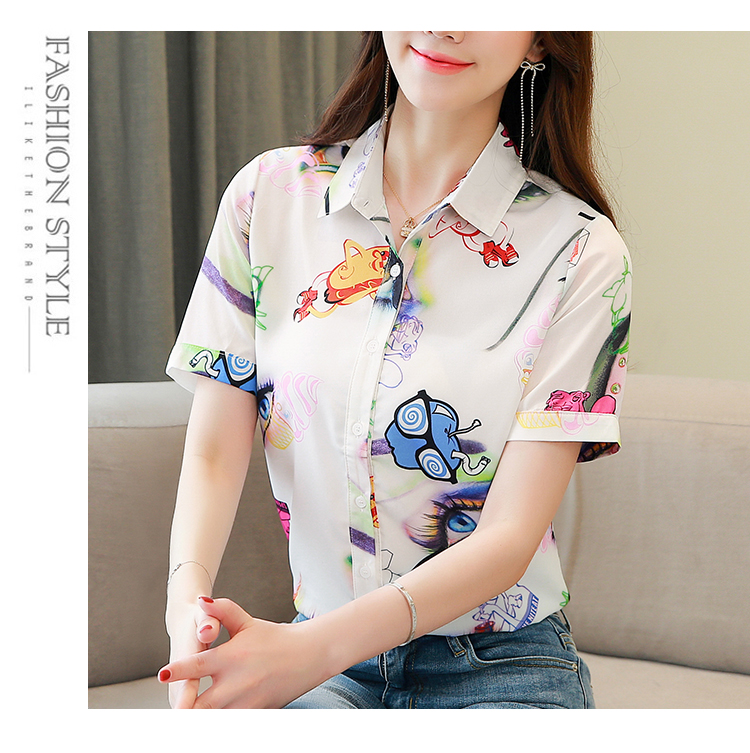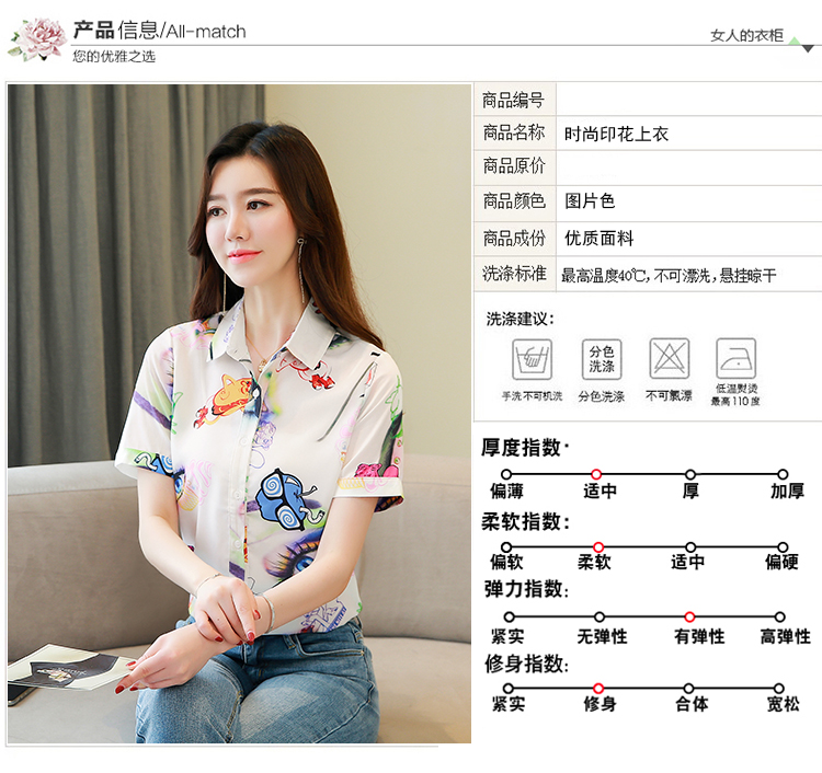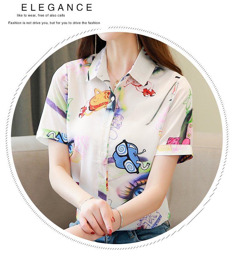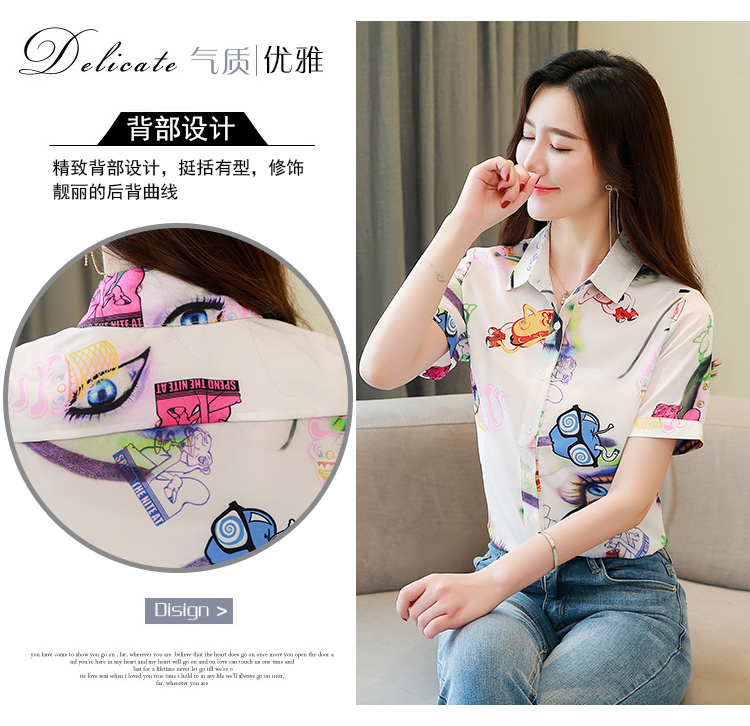 RY2686# 女装2026夏季新款气质桑蚕丝翻领衬衫时尚印花重磅真丝短袖上衣女