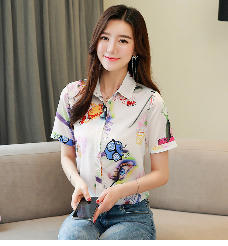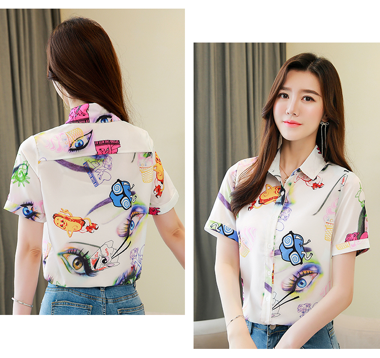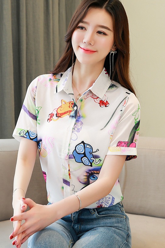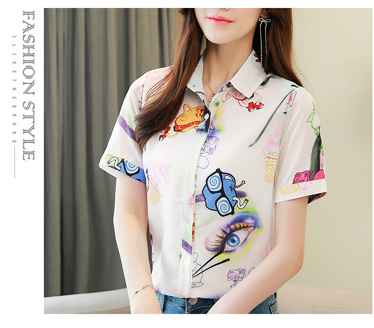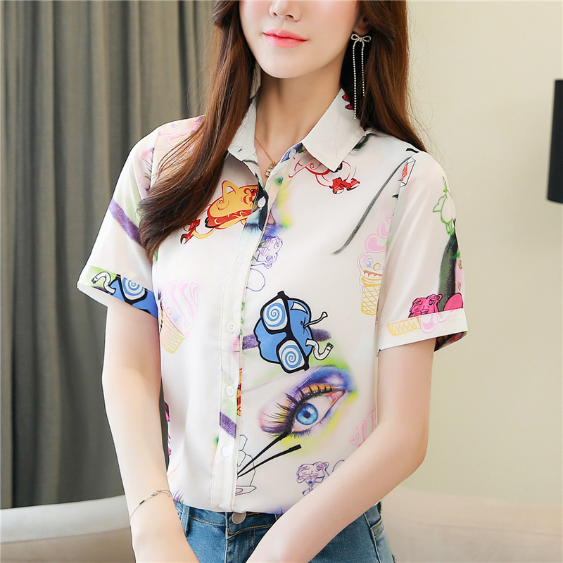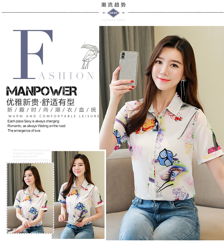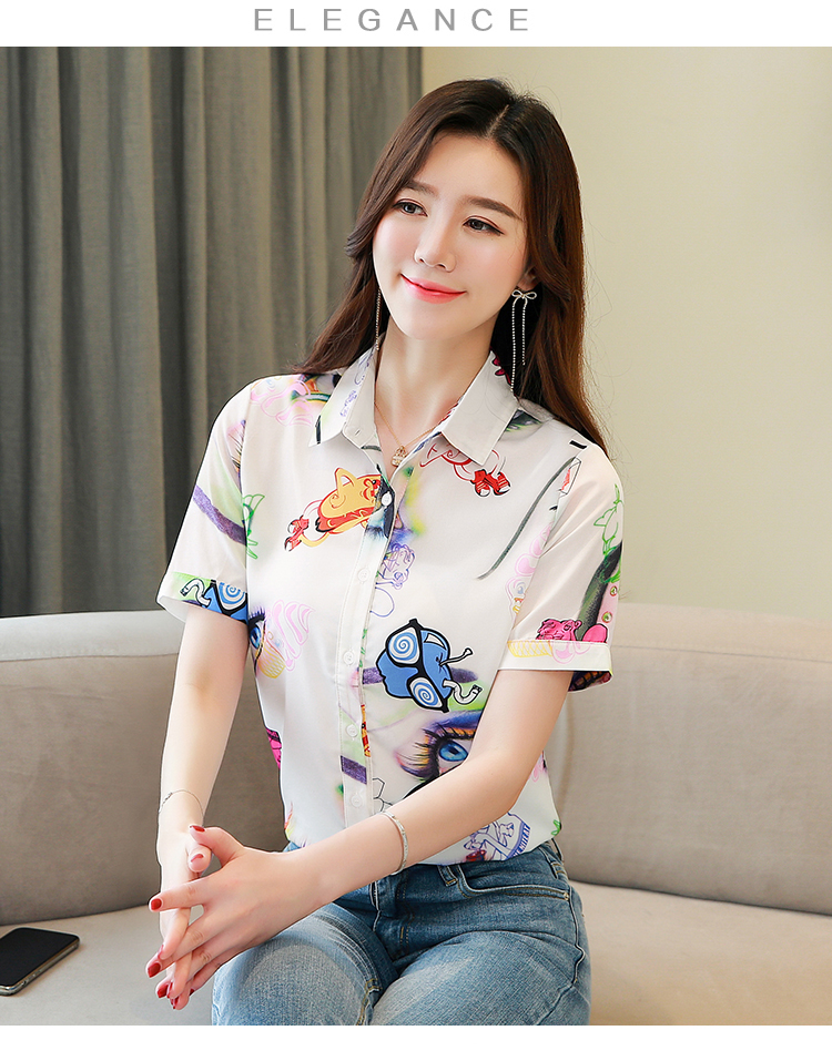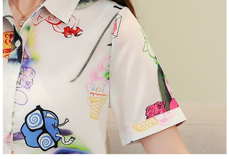 RY2686# 女装2026夏季新款气质桑蚕丝翻领衬衫时尚印花重磅真丝短袖上衣女