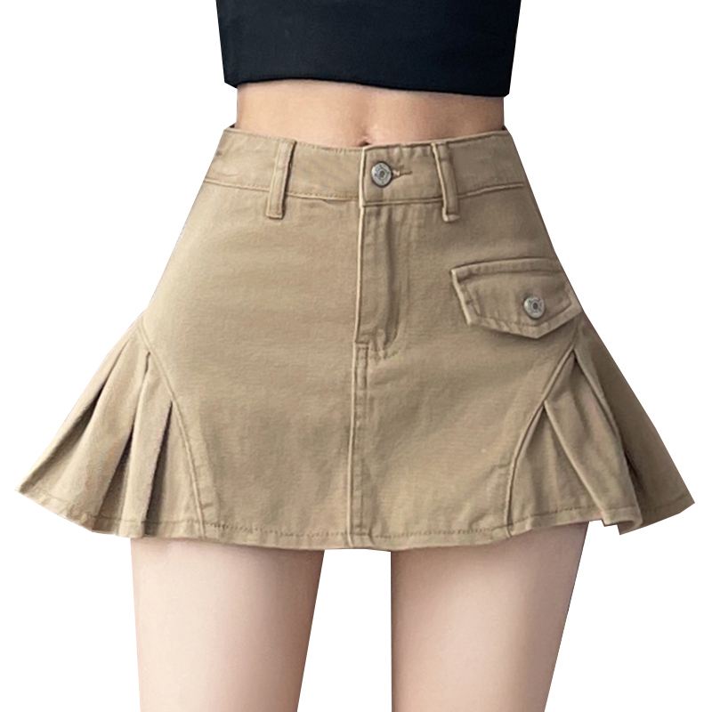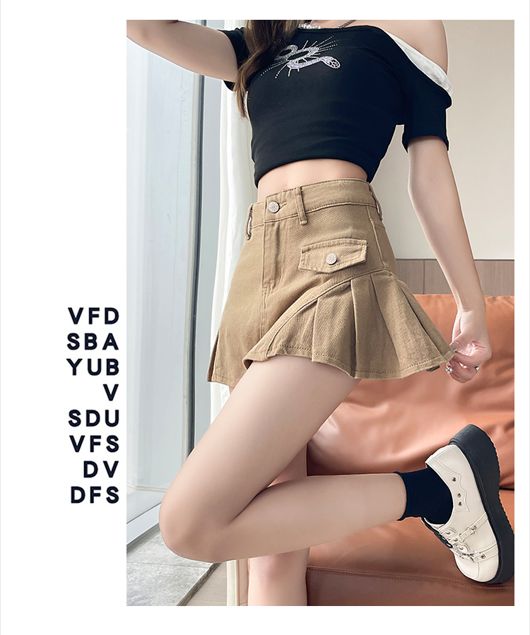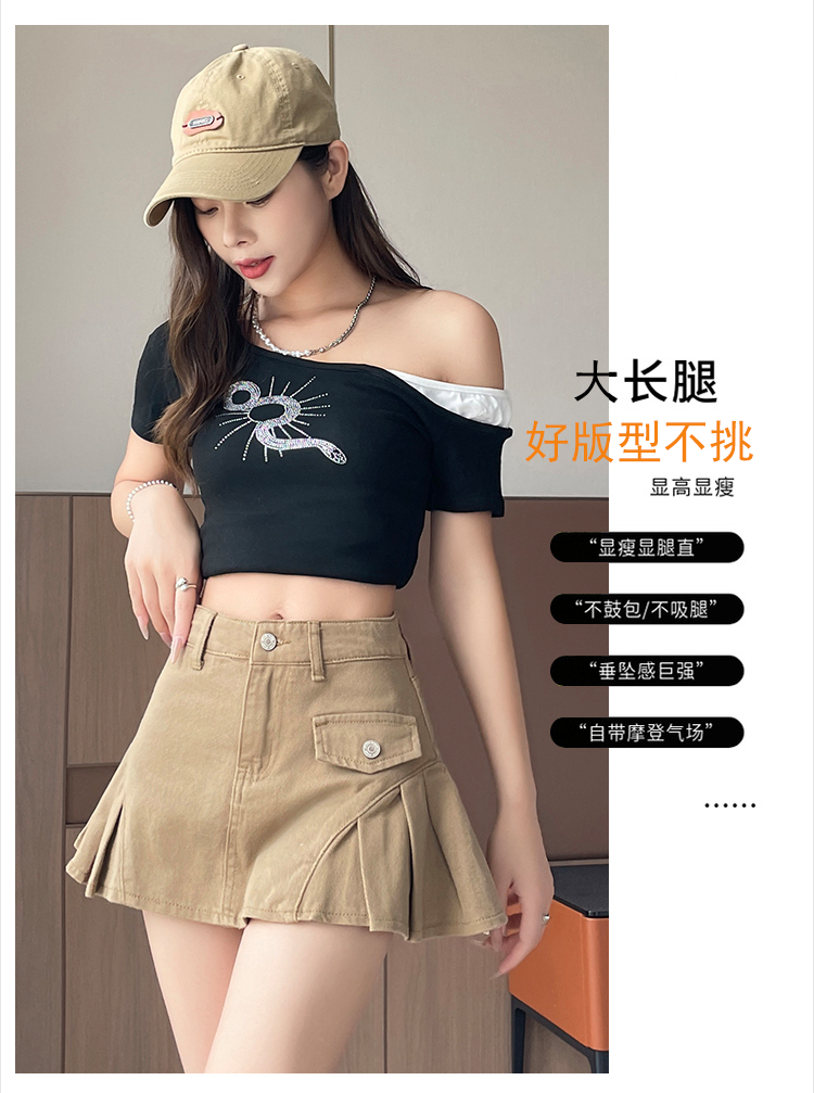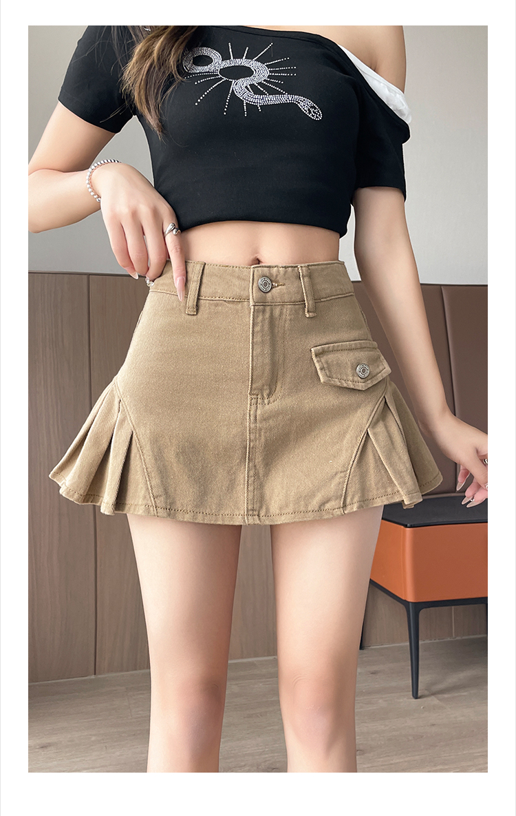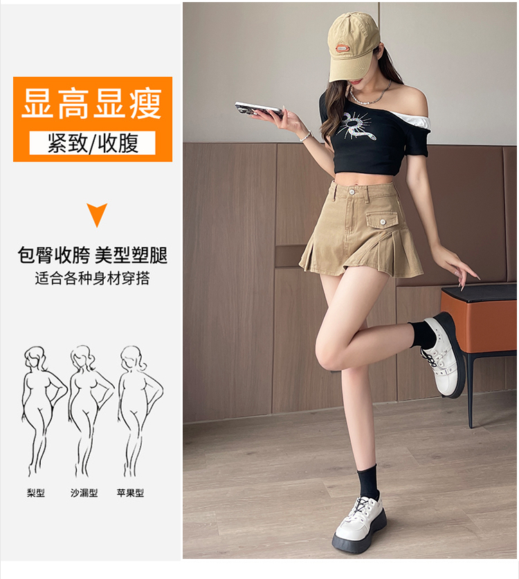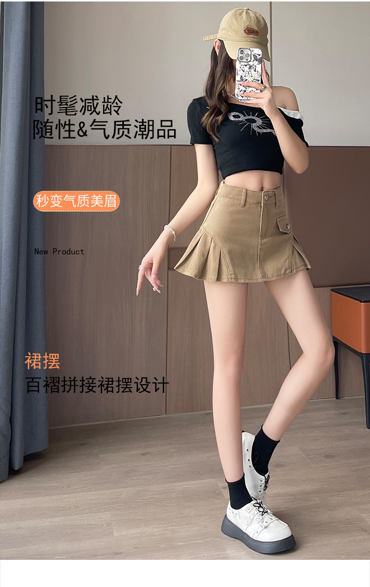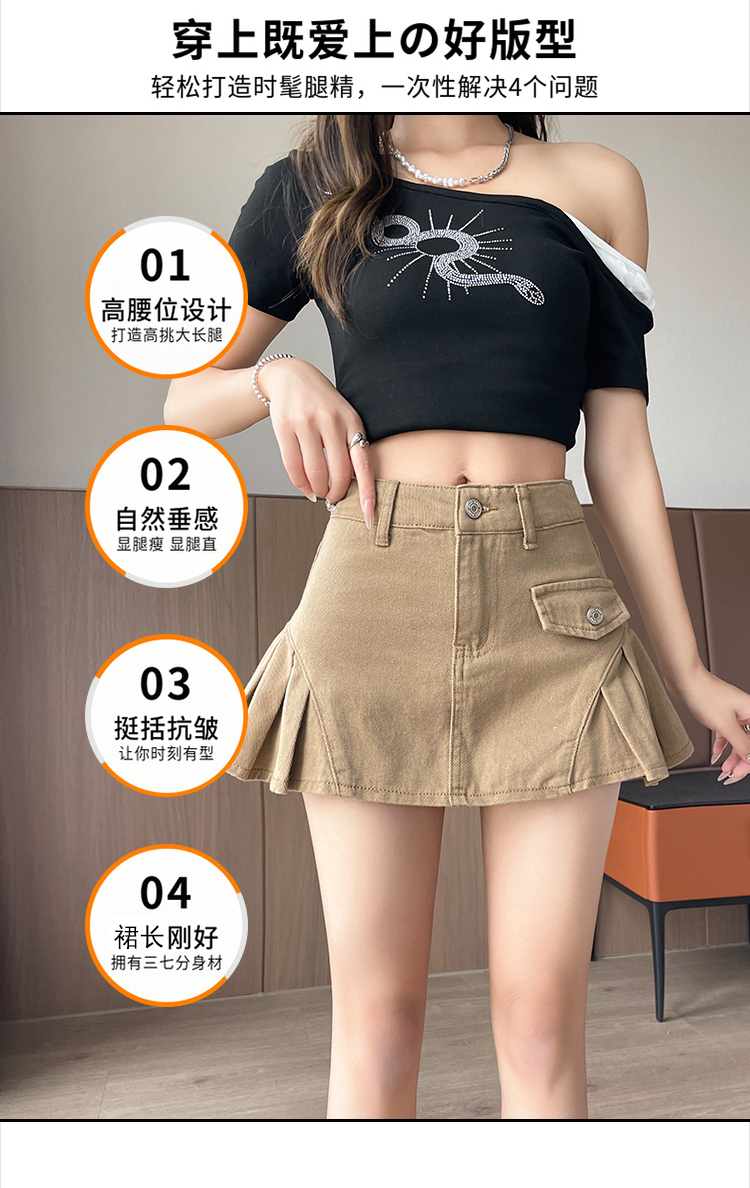 RY2689# 实拍2026夏季小个子防走光牛仔裙高腰显瘦百褶裙A字裙子短裙