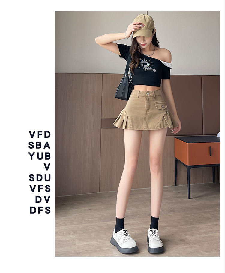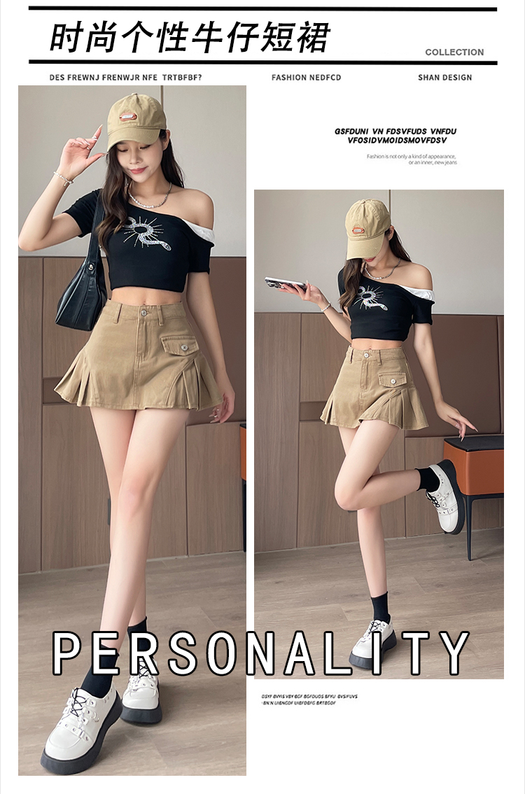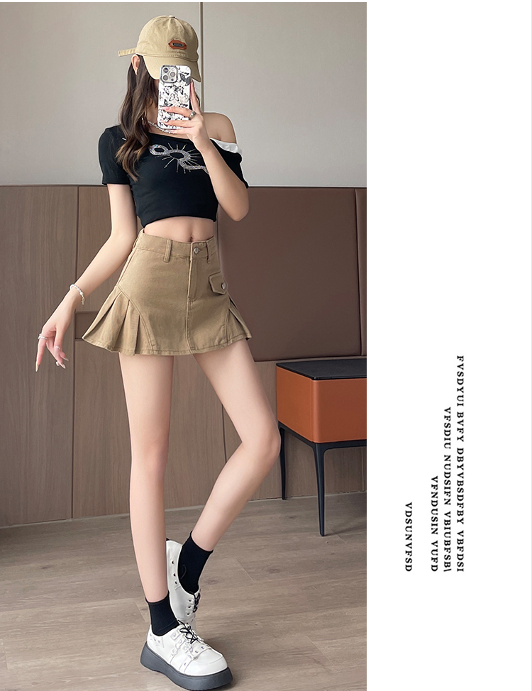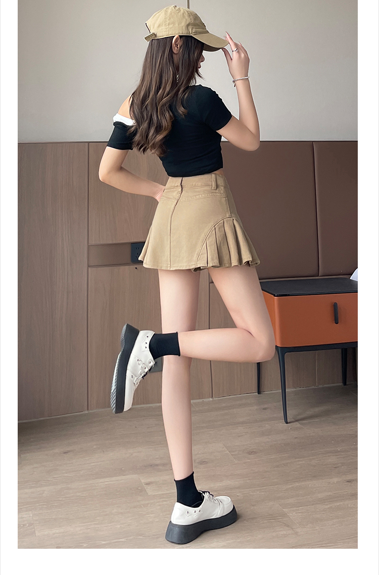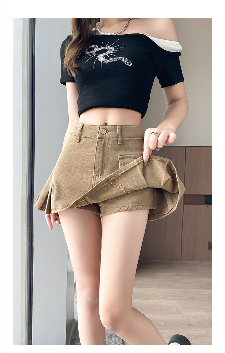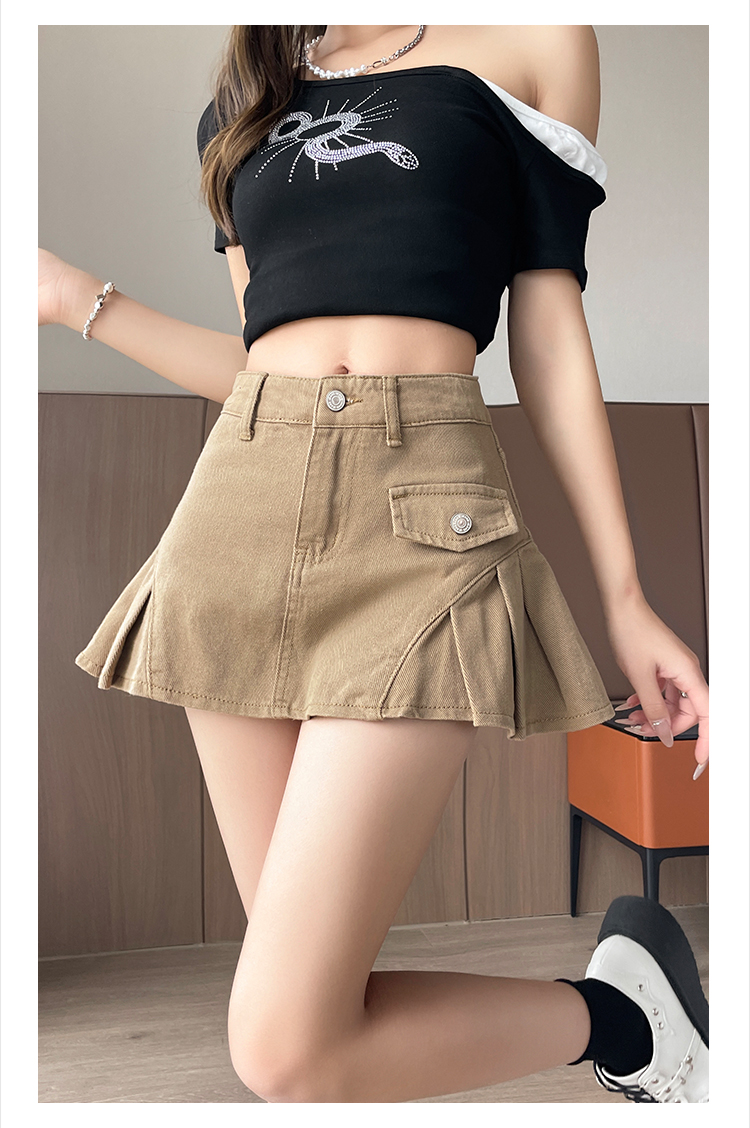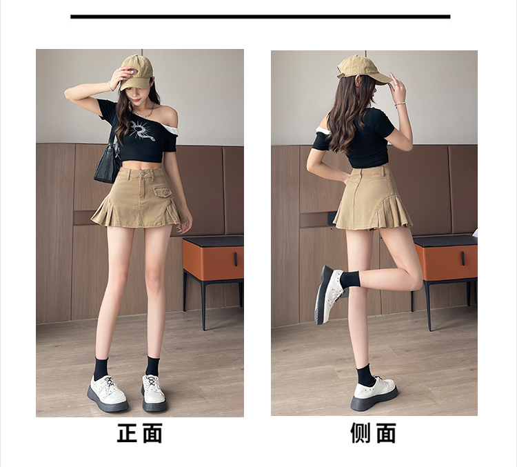 RY2689# 实拍2026夏季小个子防走光牛仔裙高腰显瘦百褶裙A字裙子短裙