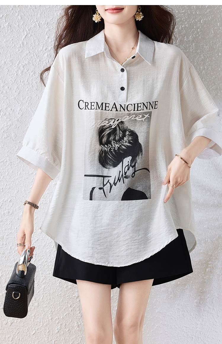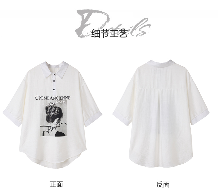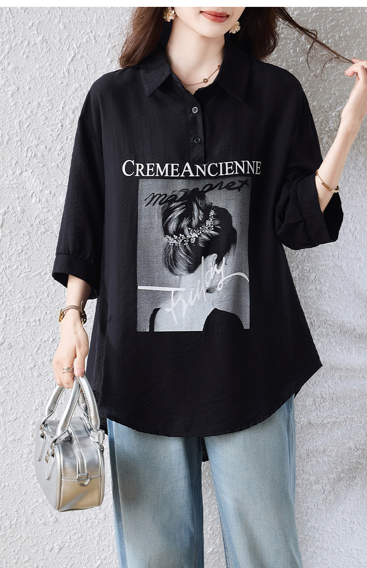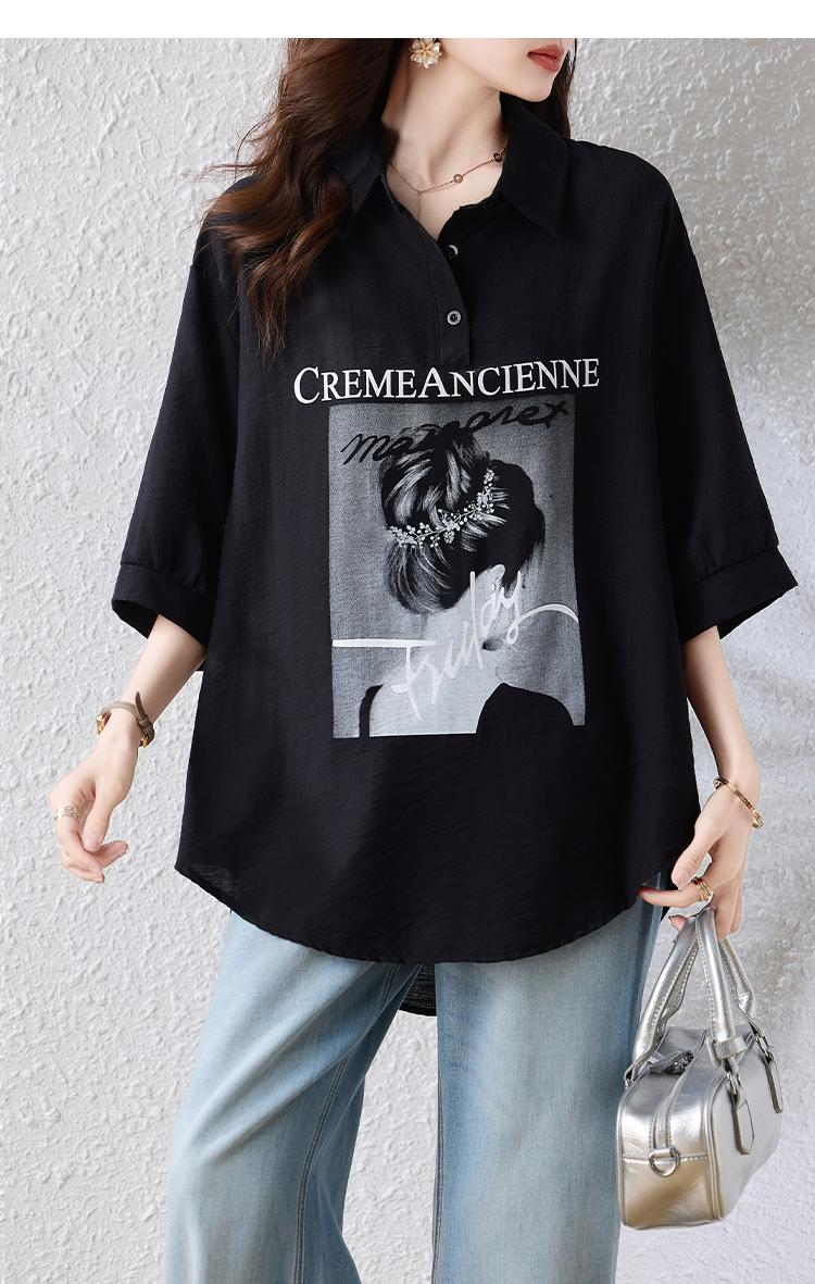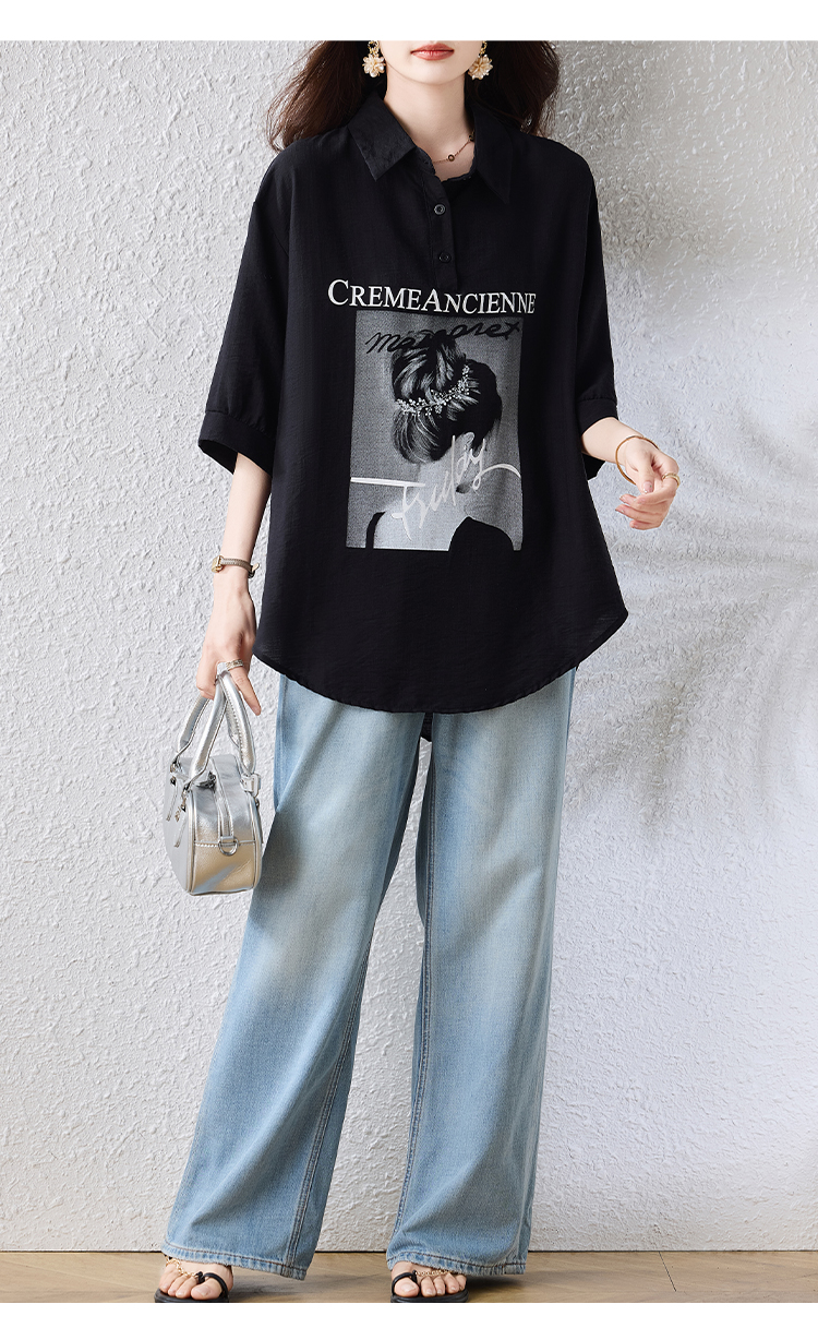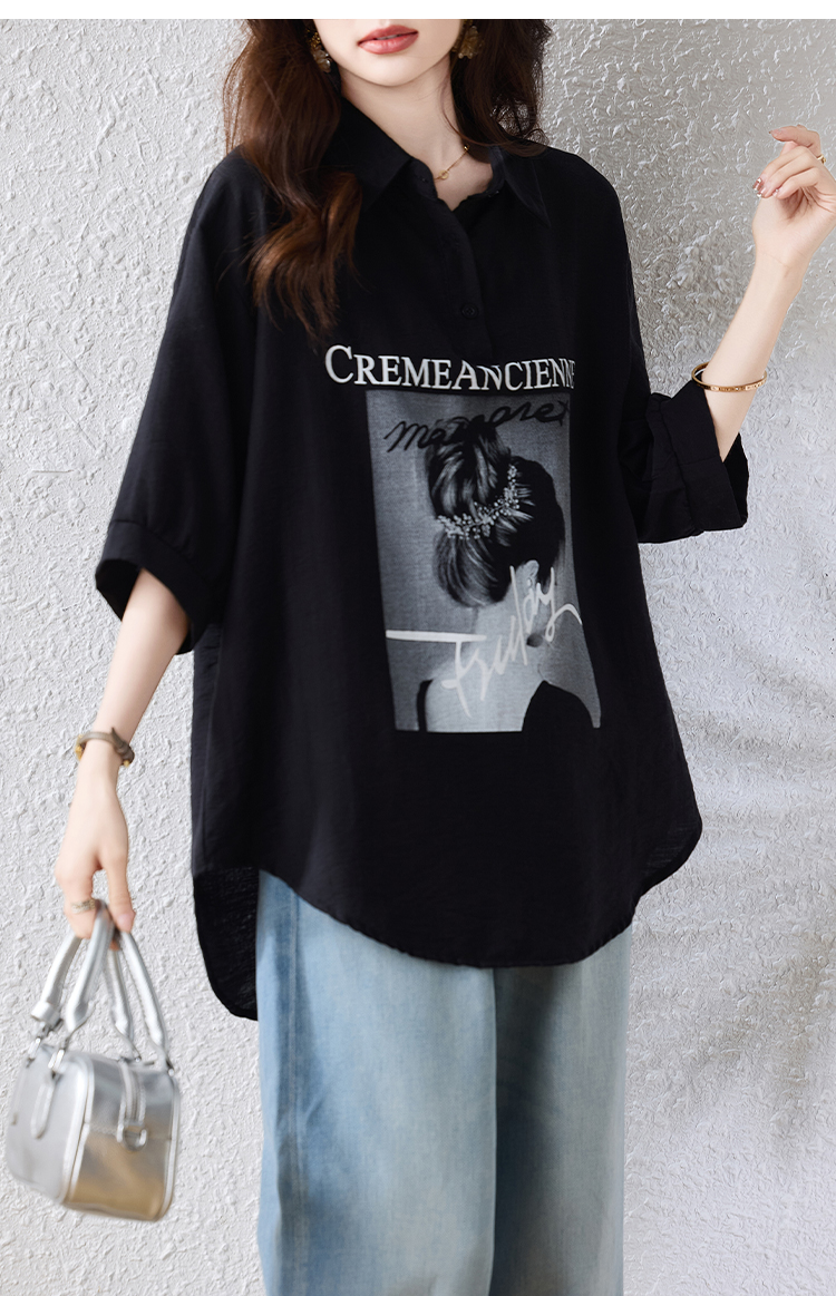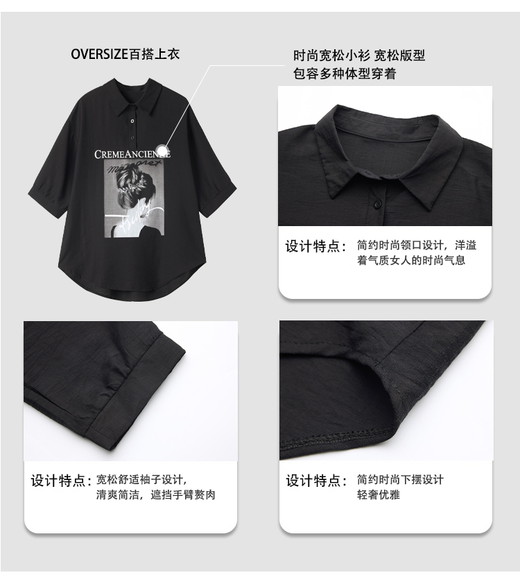 RY2691# 实拍2026夏季新款休闲时尚印花大码百搭显瘦减龄设计感衬衫上衣女