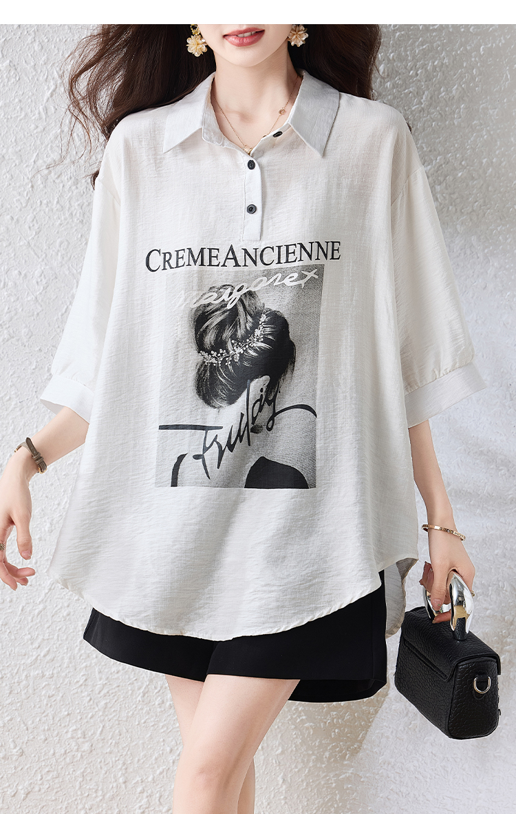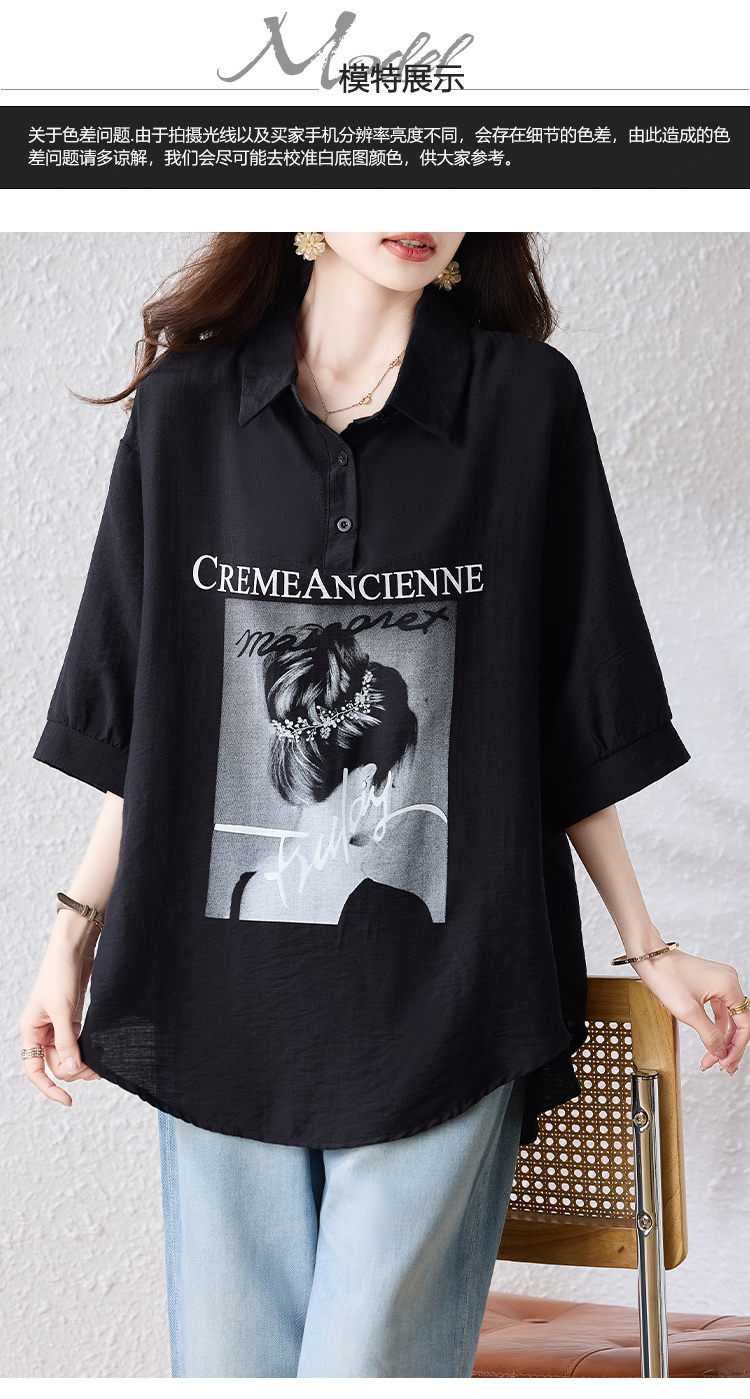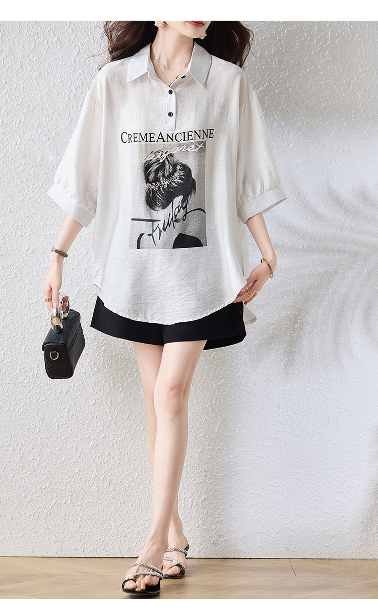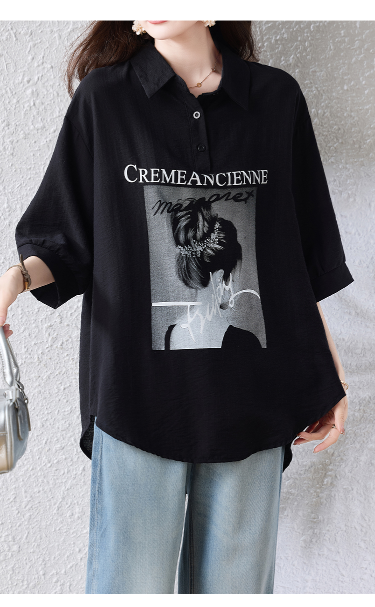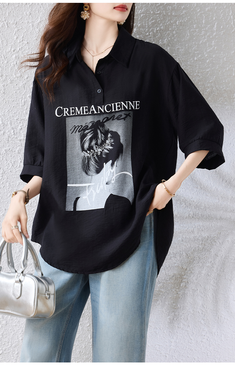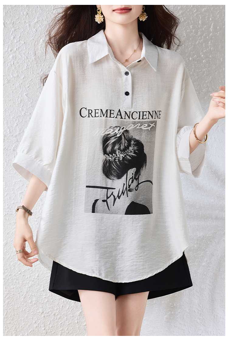 RY2691# 实拍2026夏季新款休闲时尚印花大码百搭显瘦减龄设计感衬衫上衣女