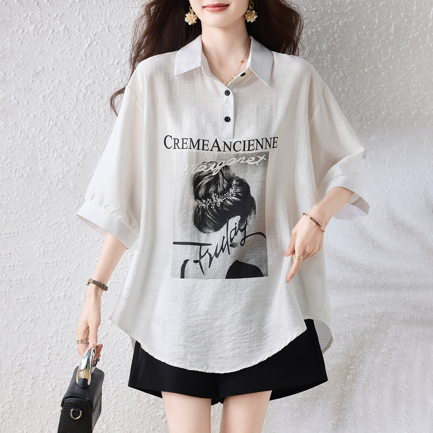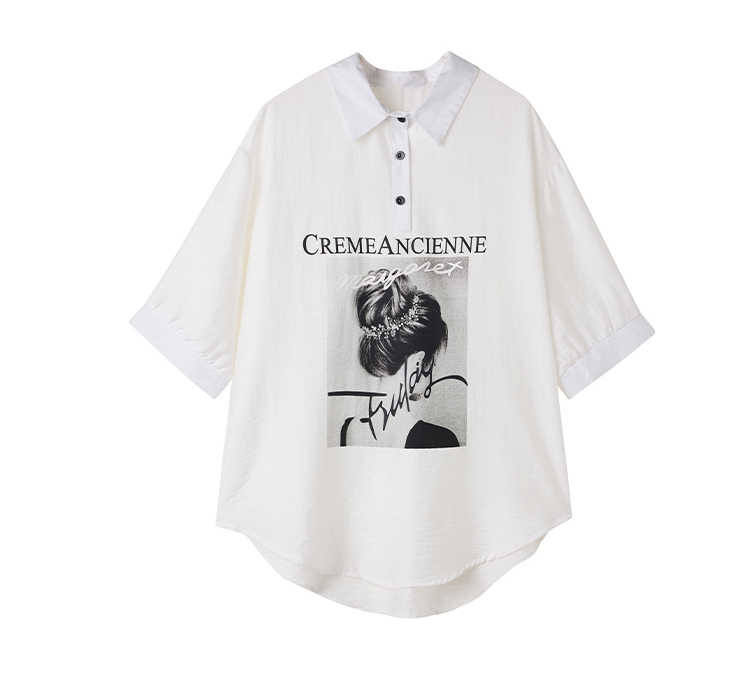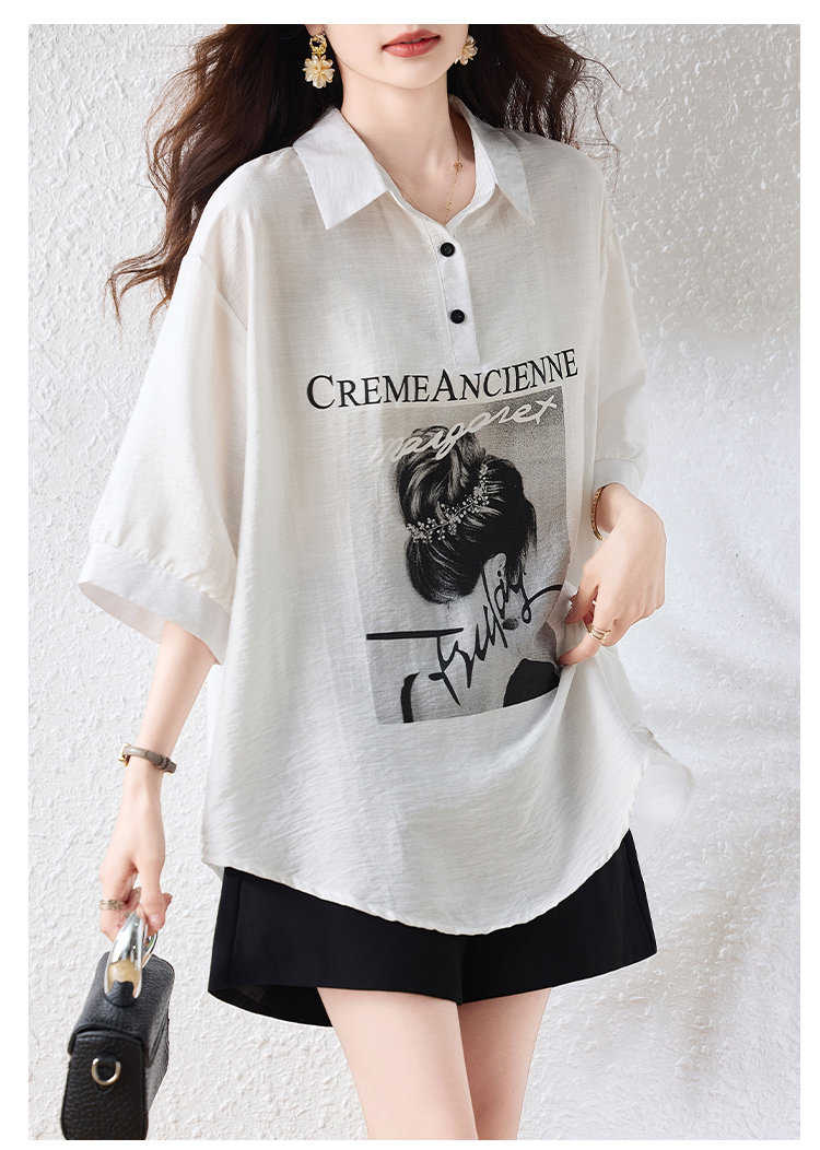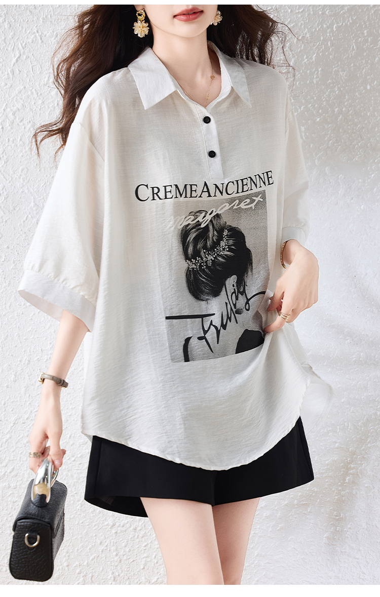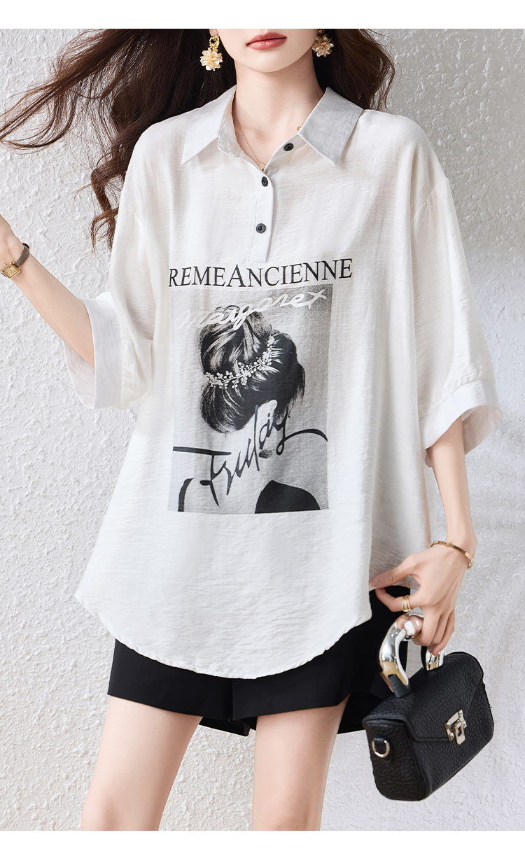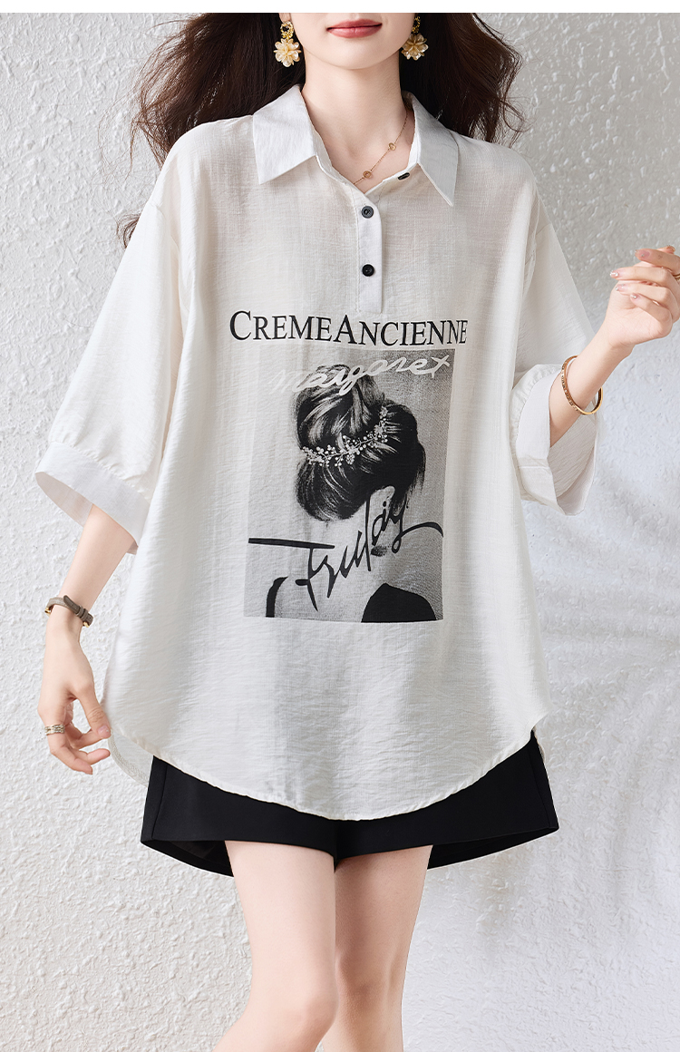 RY2691# 实拍2026夏季新款休闲时尚印花大码百搭显瘦减龄设计感衬衫上衣女