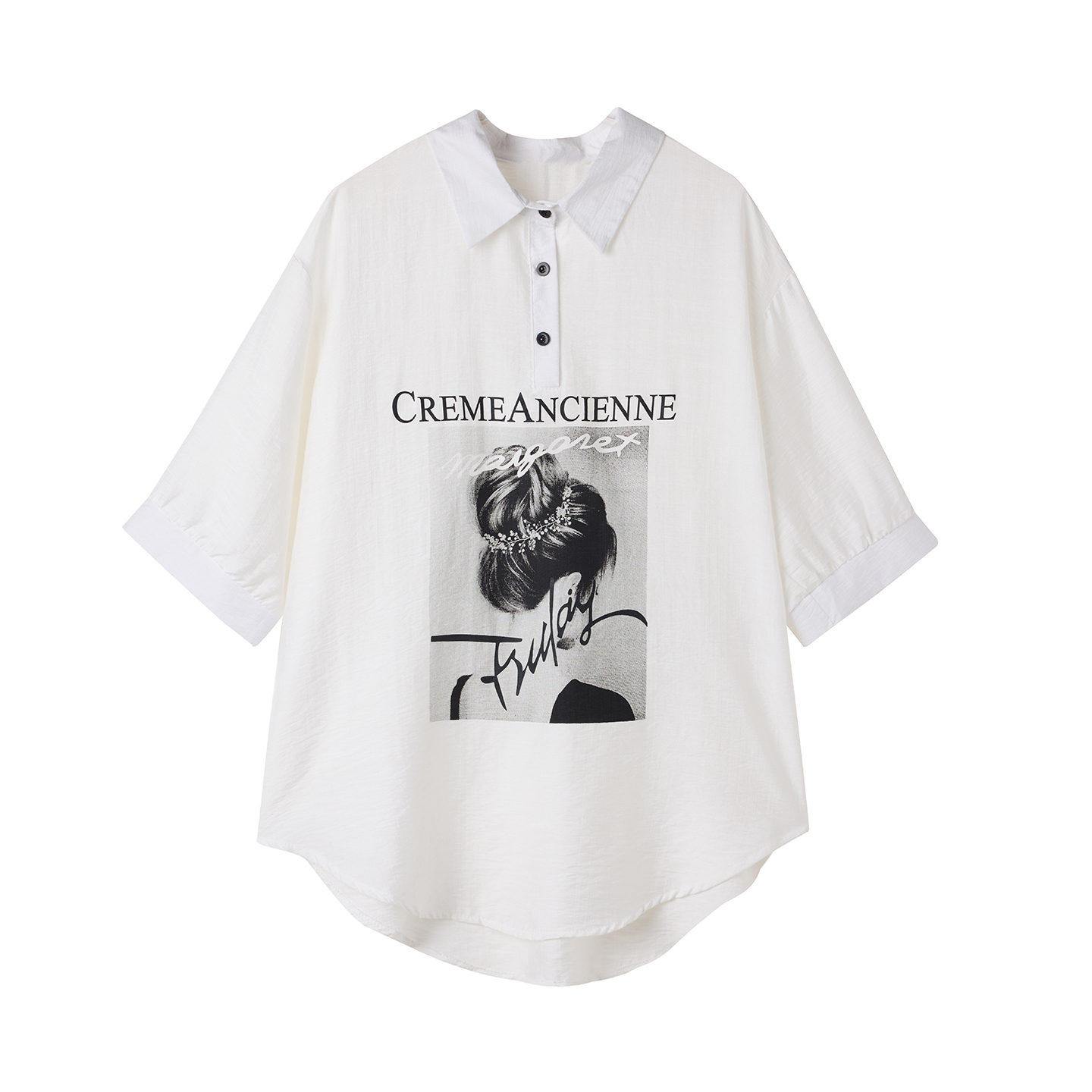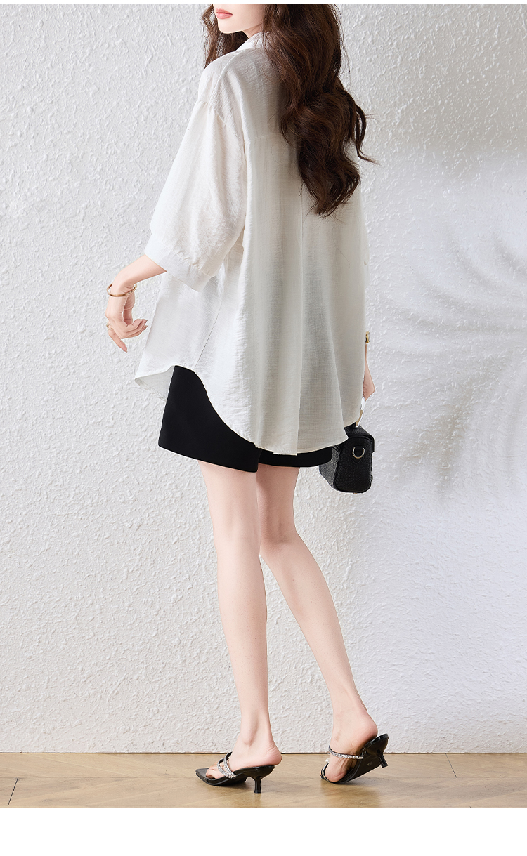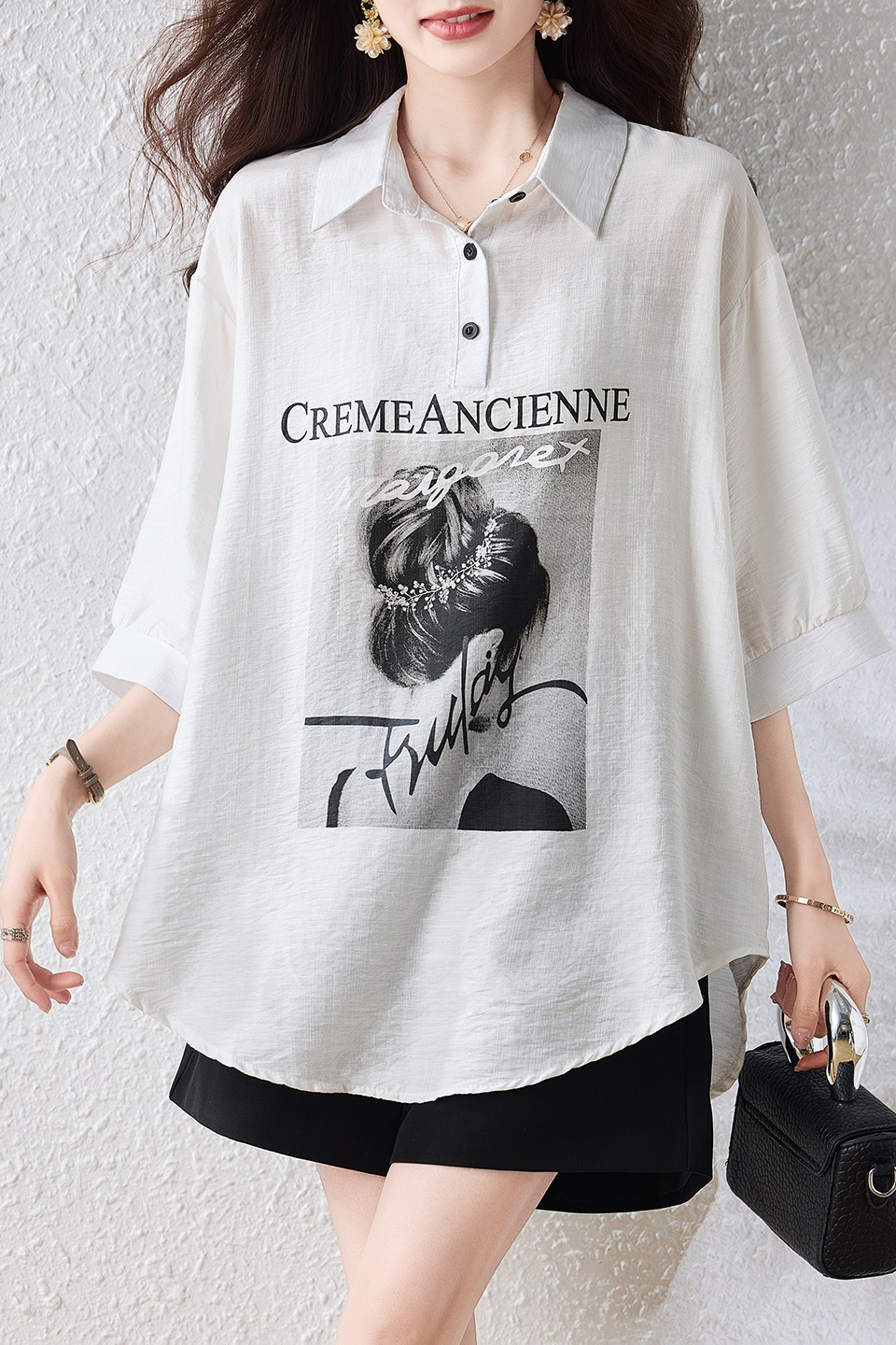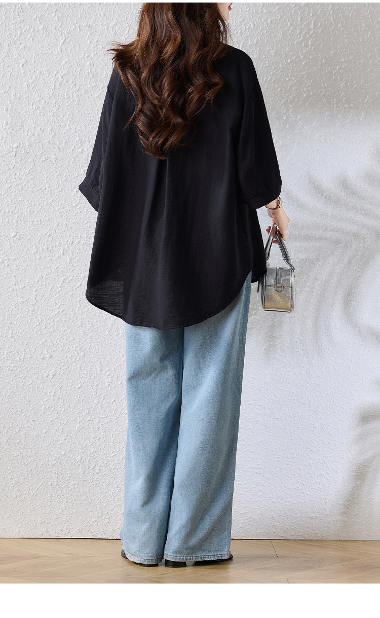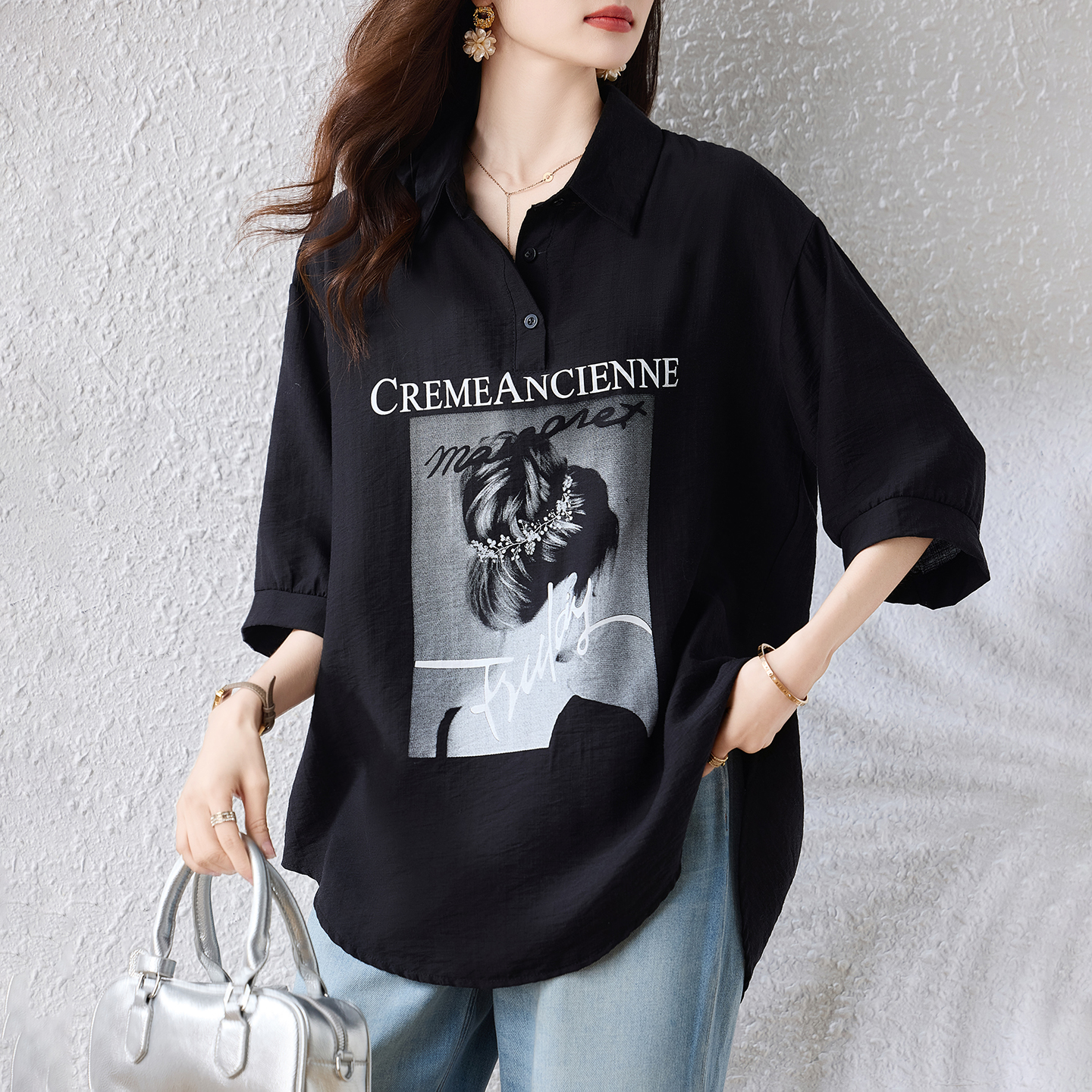 RY2691# 实拍2026夏季新款休闲时尚印花大码百搭显瘦减龄设计感衬衫上衣女