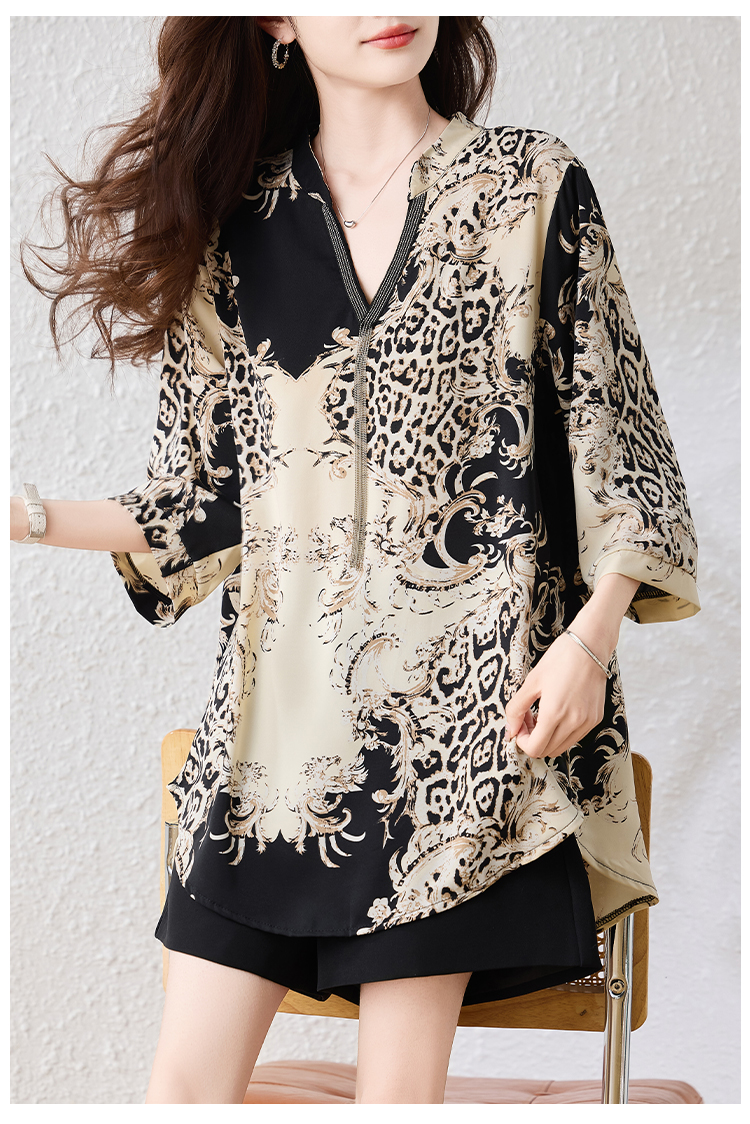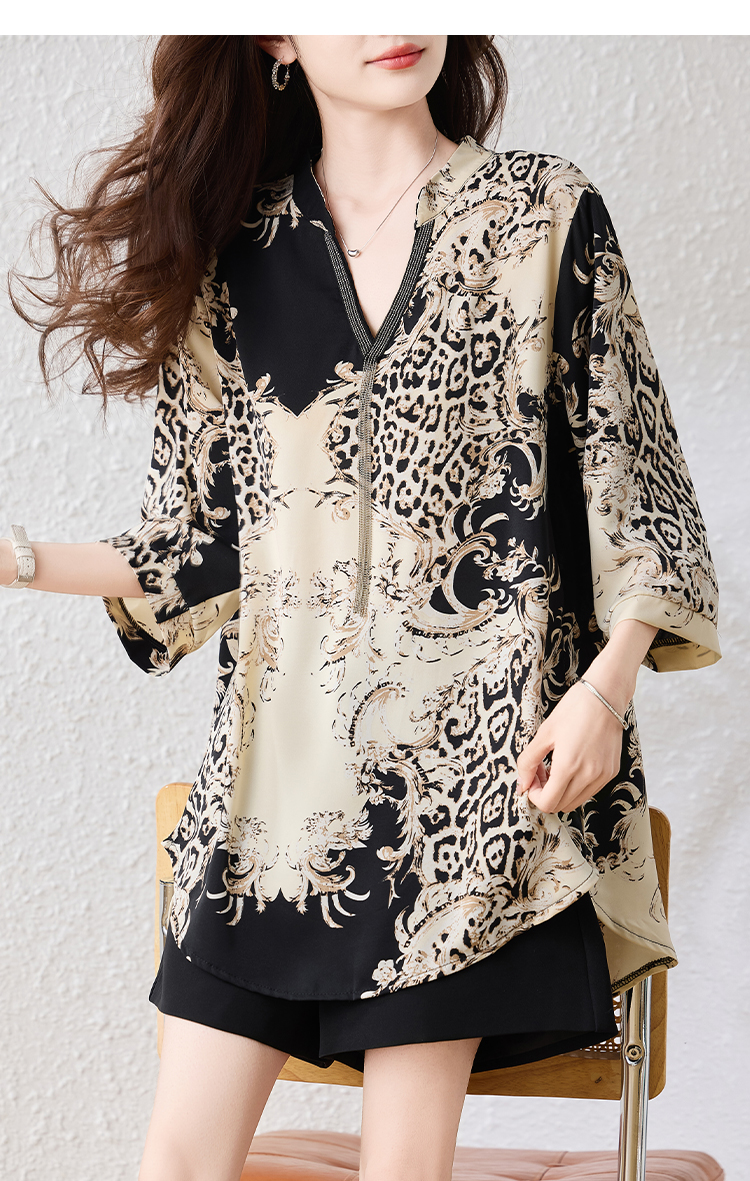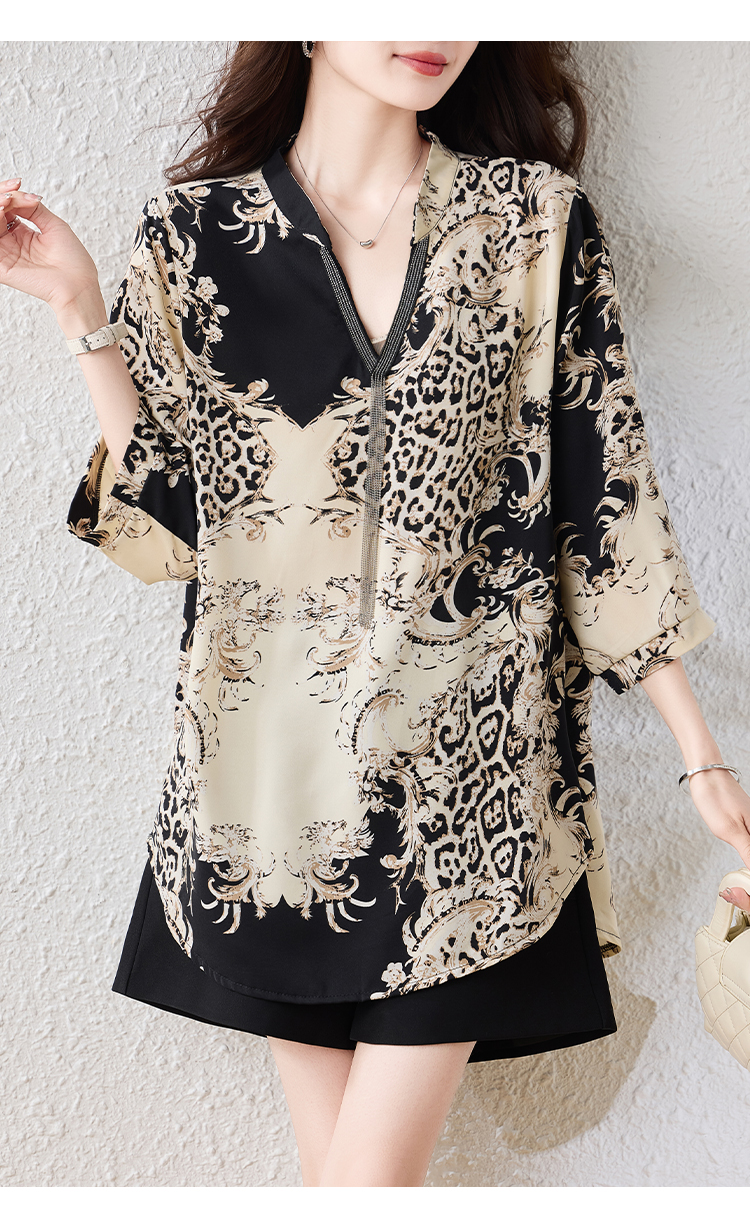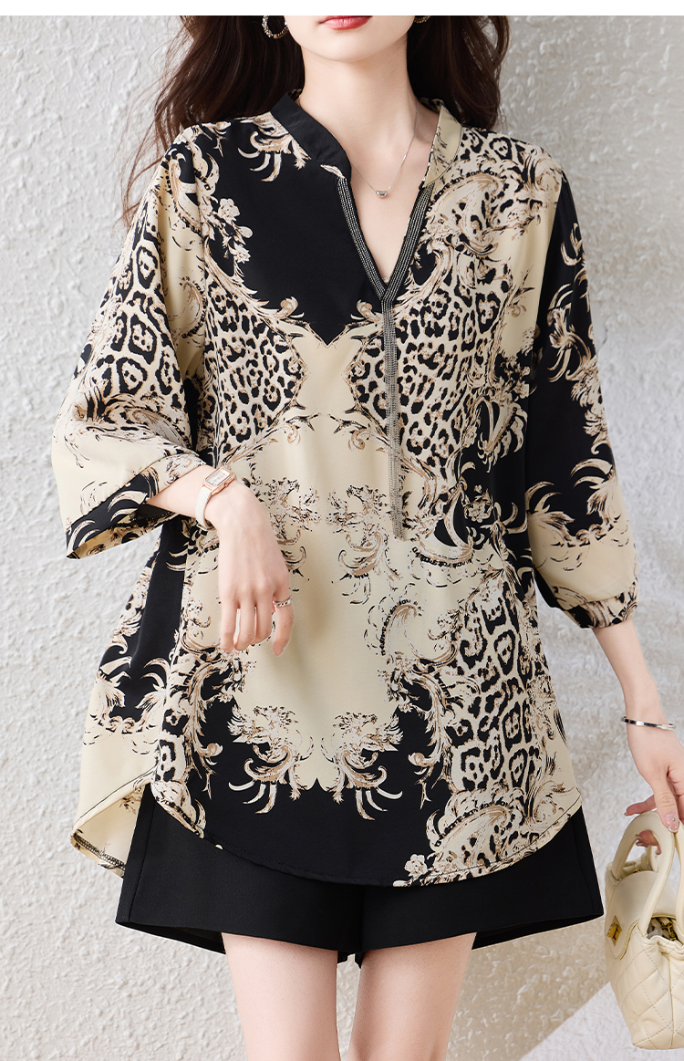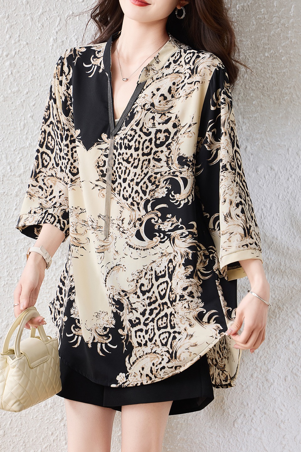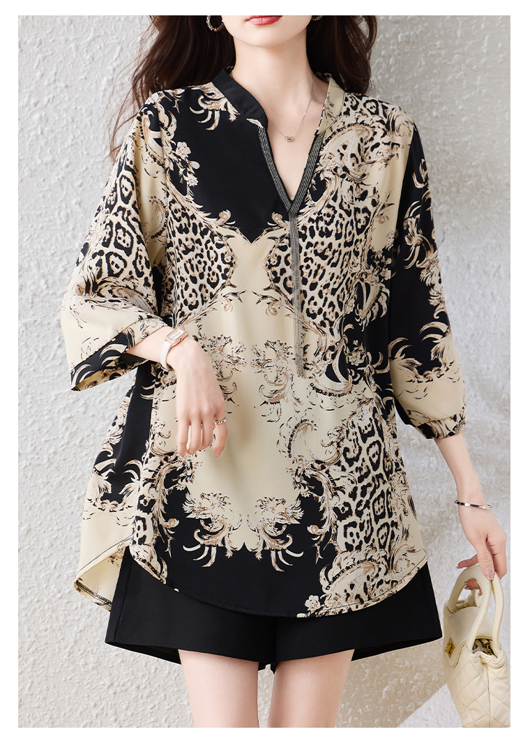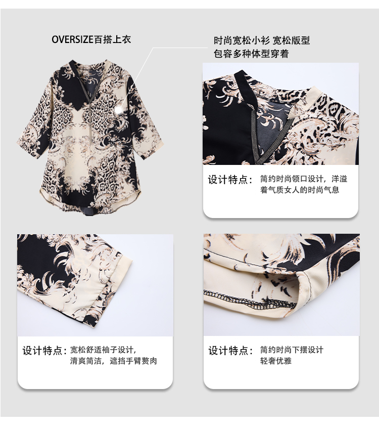 RY2692# 实拍欧货宽松型大码衬衫上衣2026夏季新款五分袖流苏薄款雪纺衫女