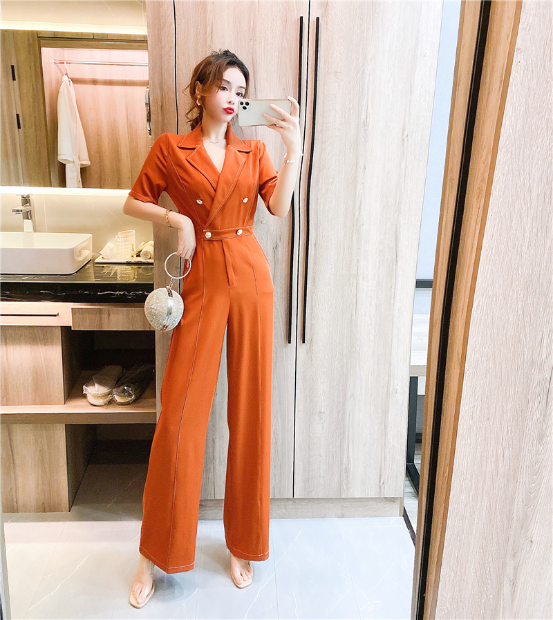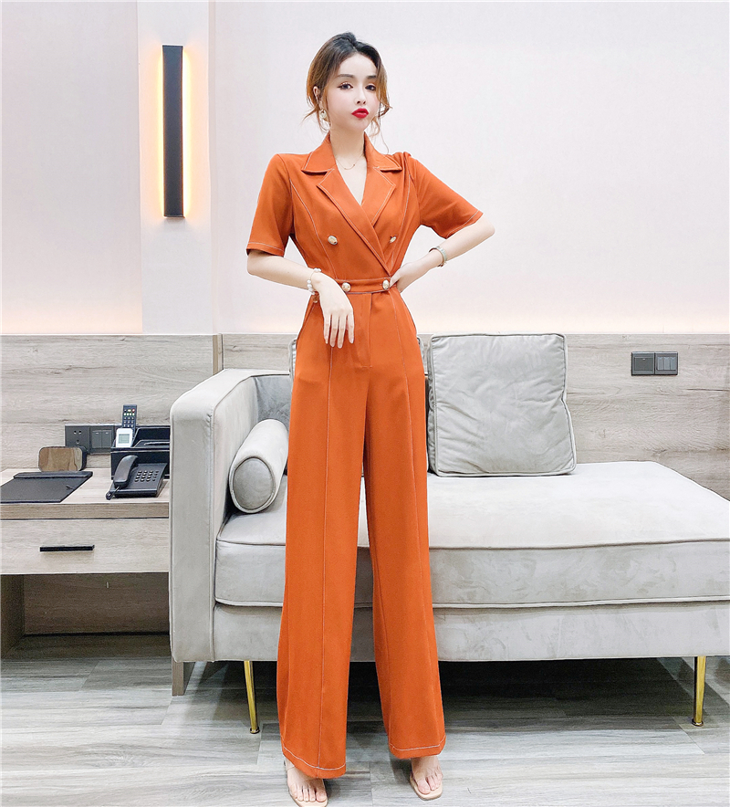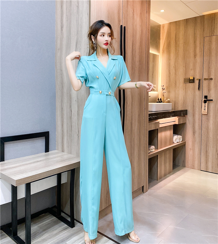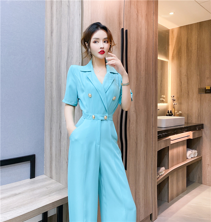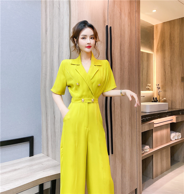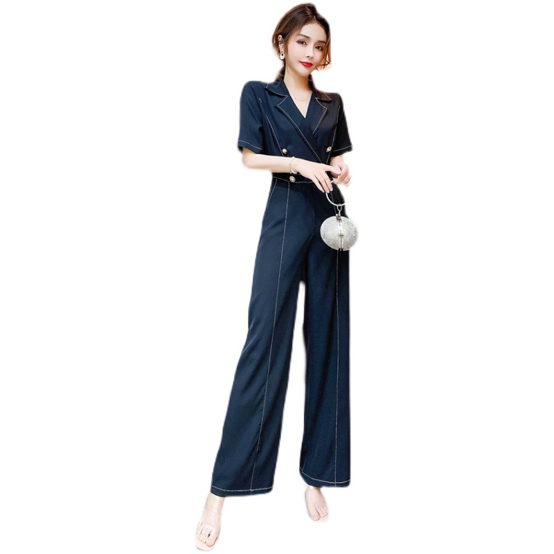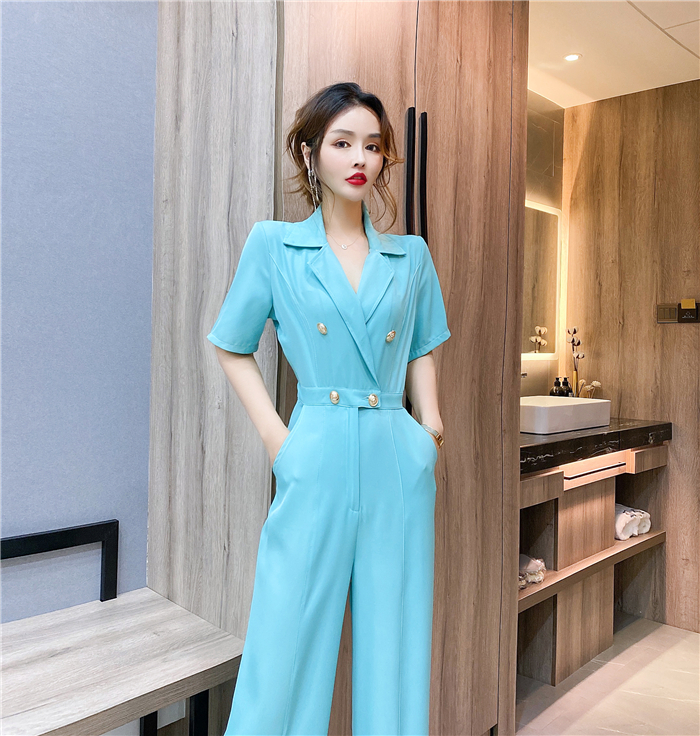 RY2743# 实拍2026夏时尚网红气质翻领双排扣收腰修身显瘦连体裤长裤A