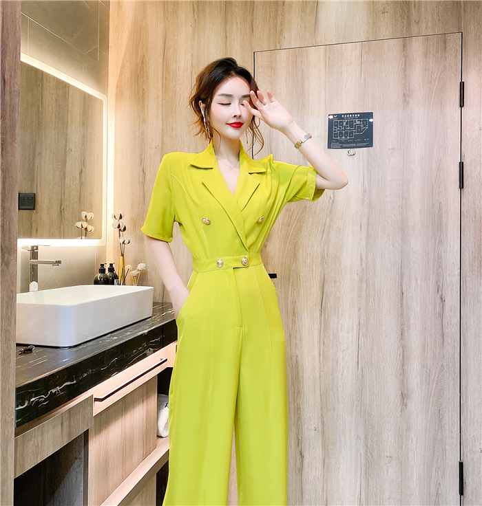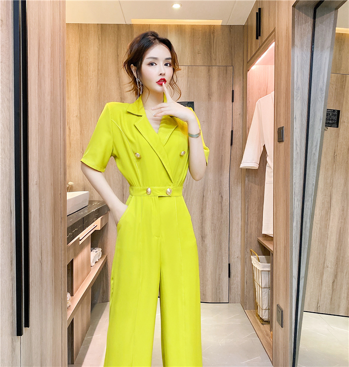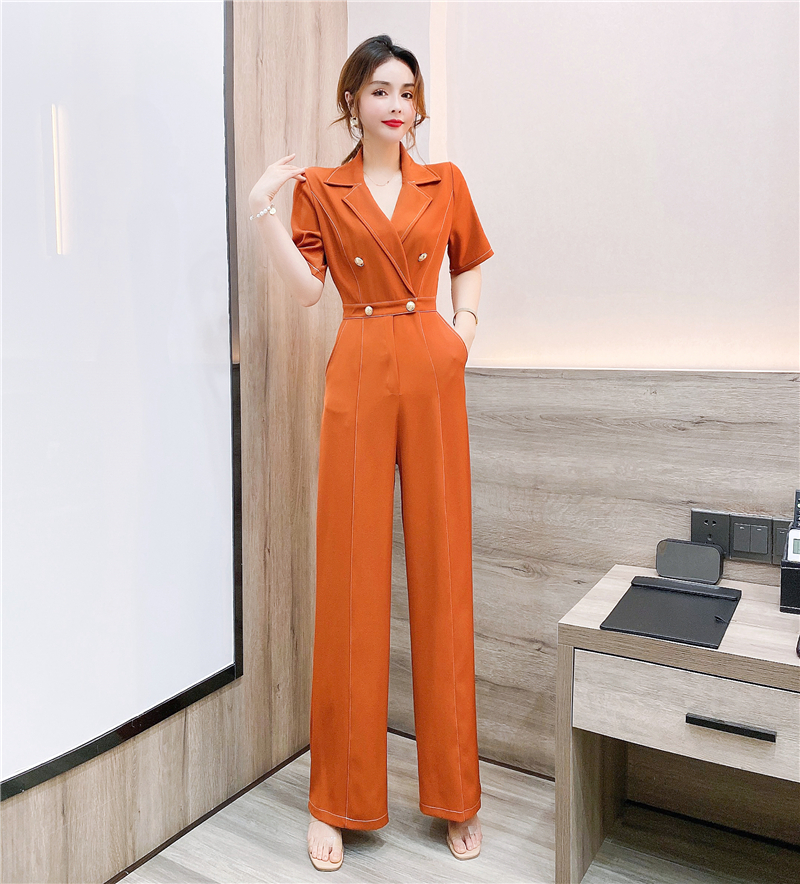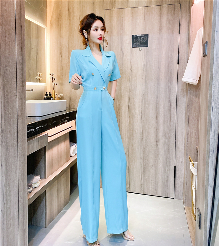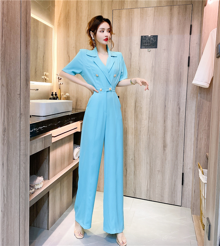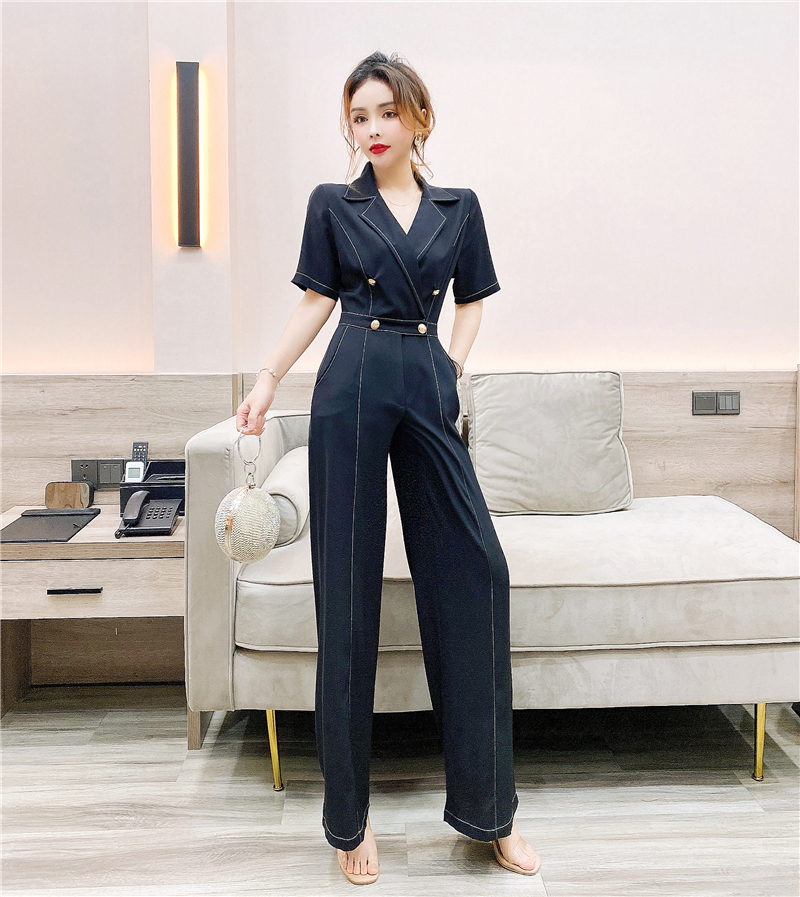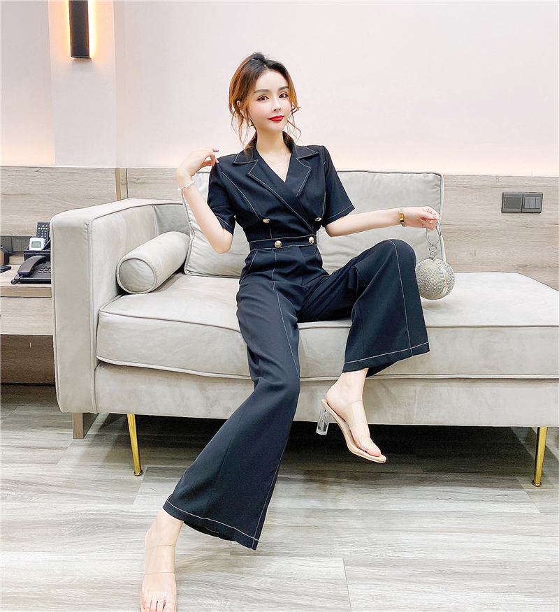 RY2743# 实拍2026夏时尚网红气质翻领双排扣收腰修身显瘦连体裤长裤A