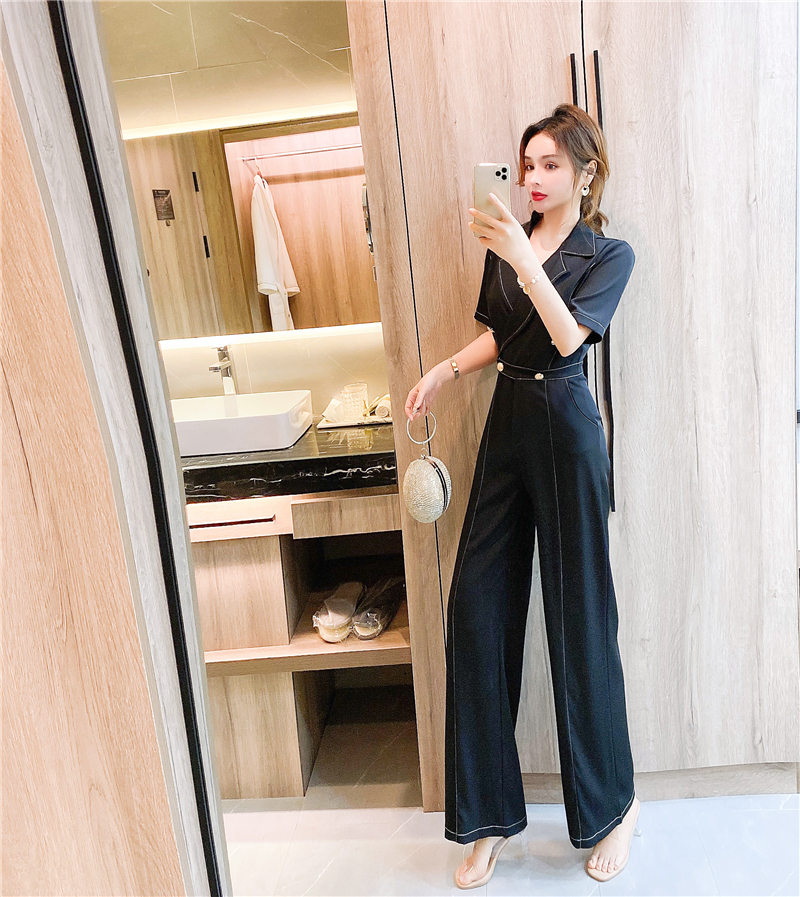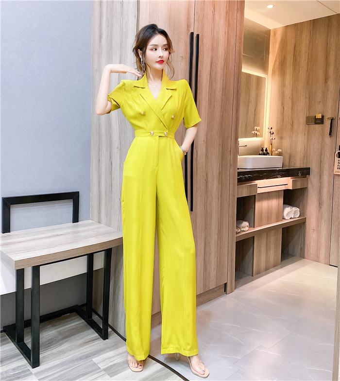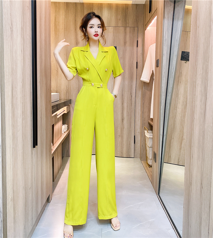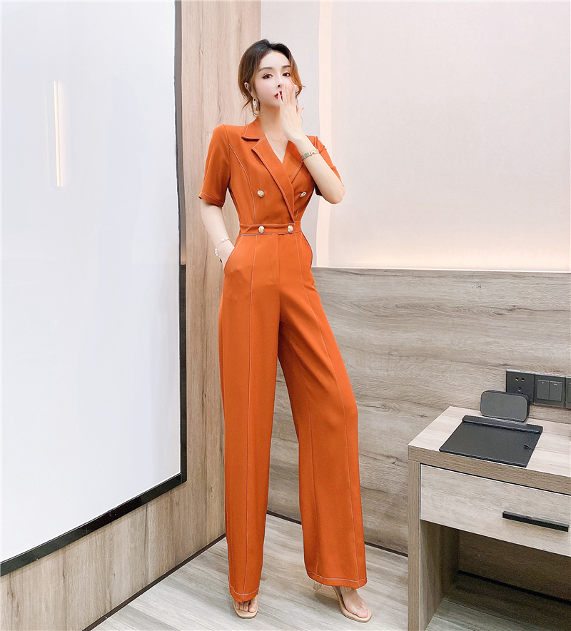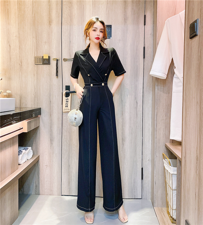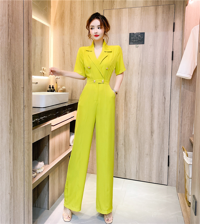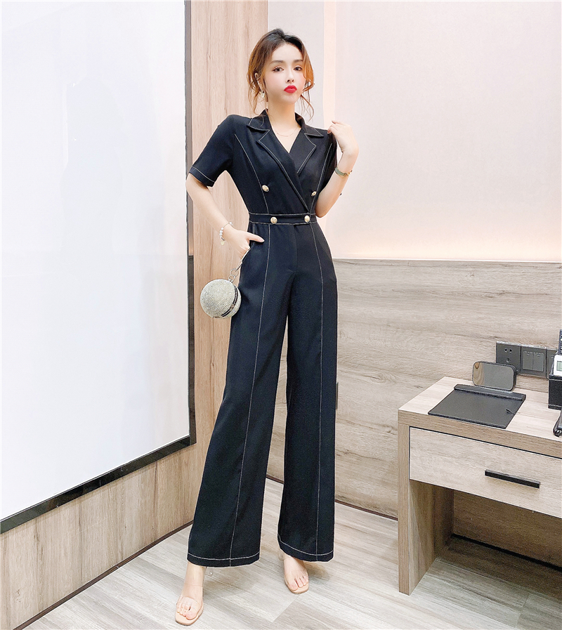 RY2743# 实拍2026夏时尚网红气质翻领双排扣收腰修身显瘦连体裤长裤A