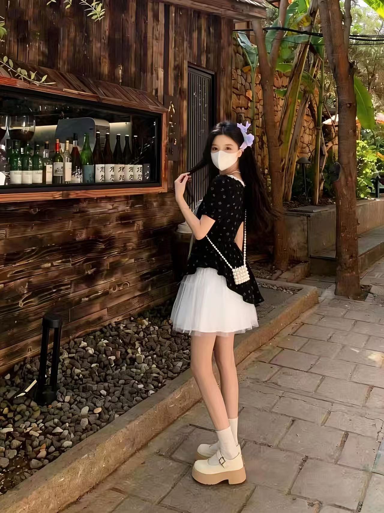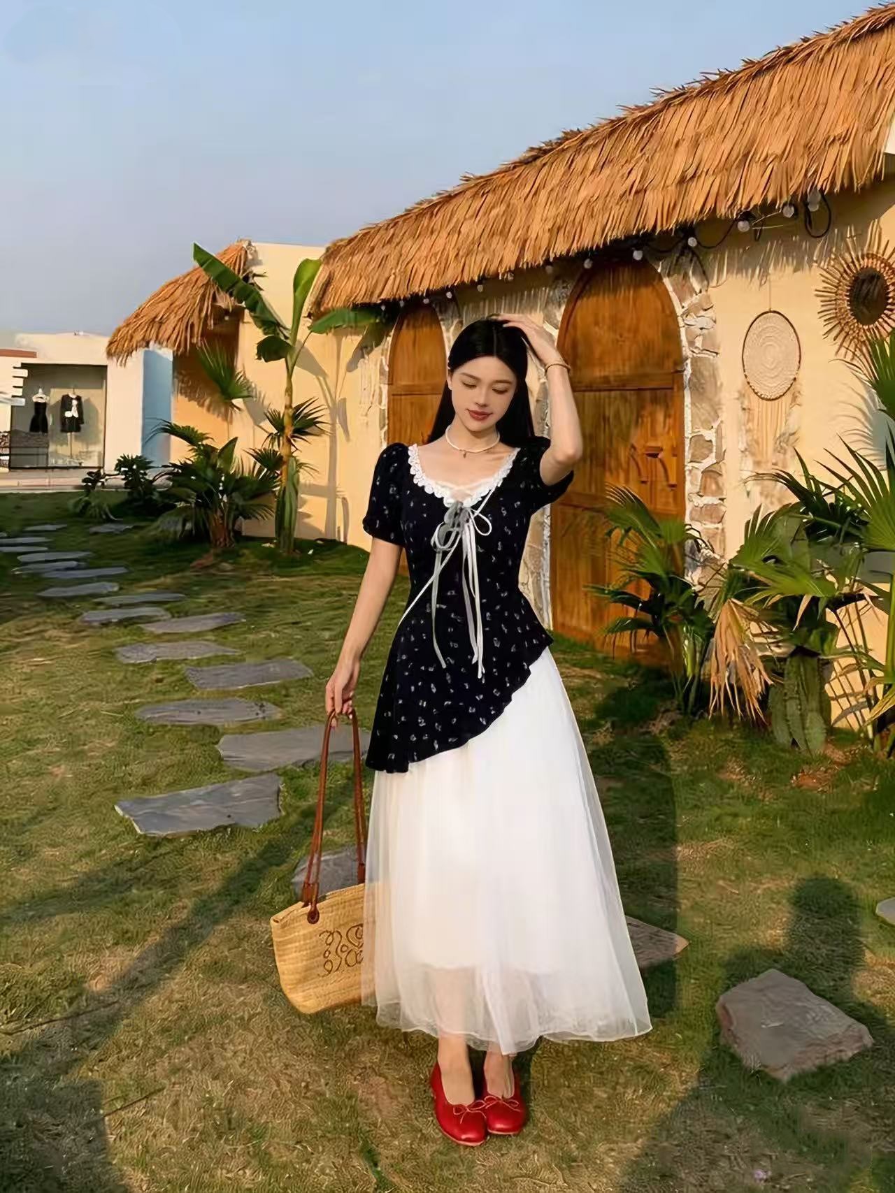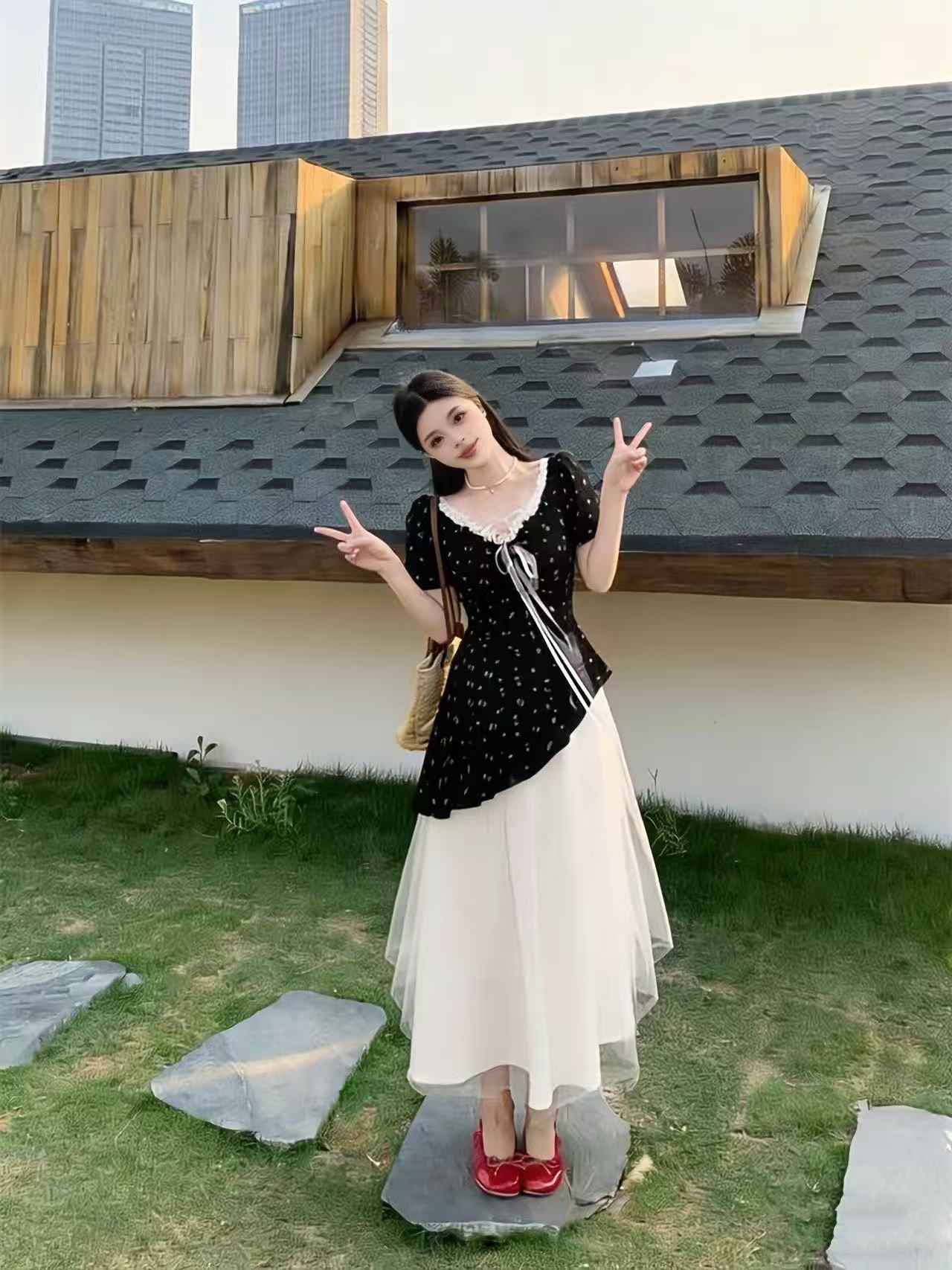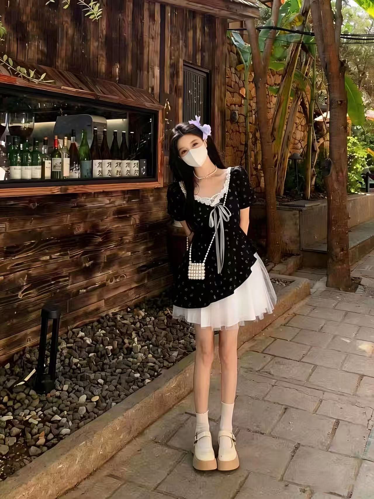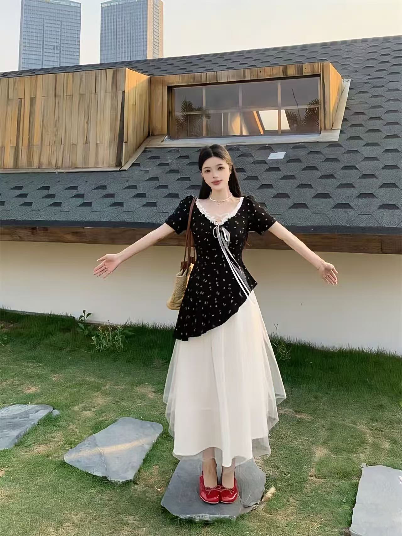 RY2749# 2026夏季新款胖mm甜美温柔风荷叶边网纱拼接收腰显瘦碎花连衣裙女