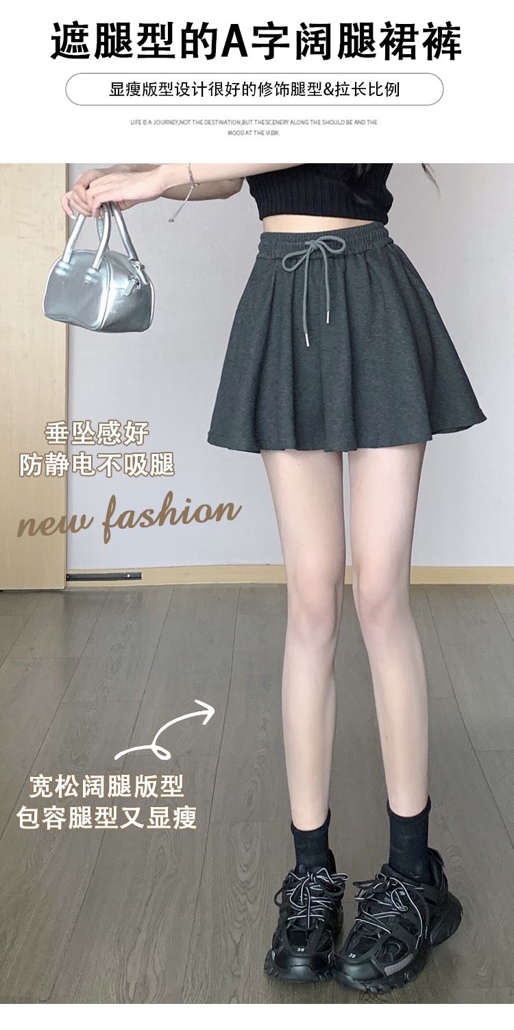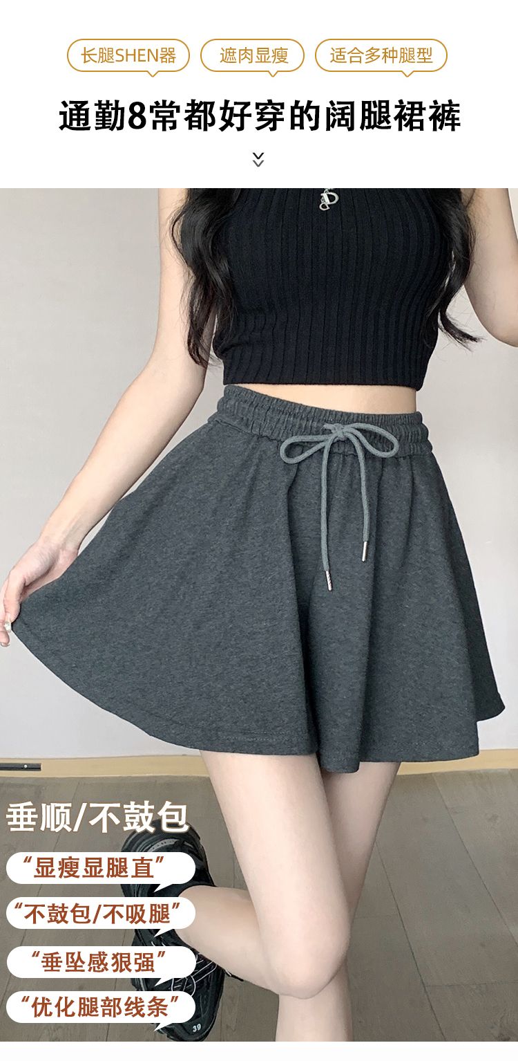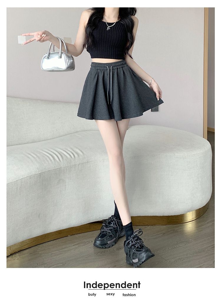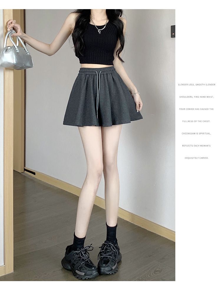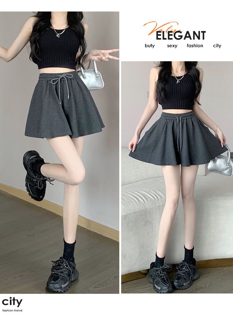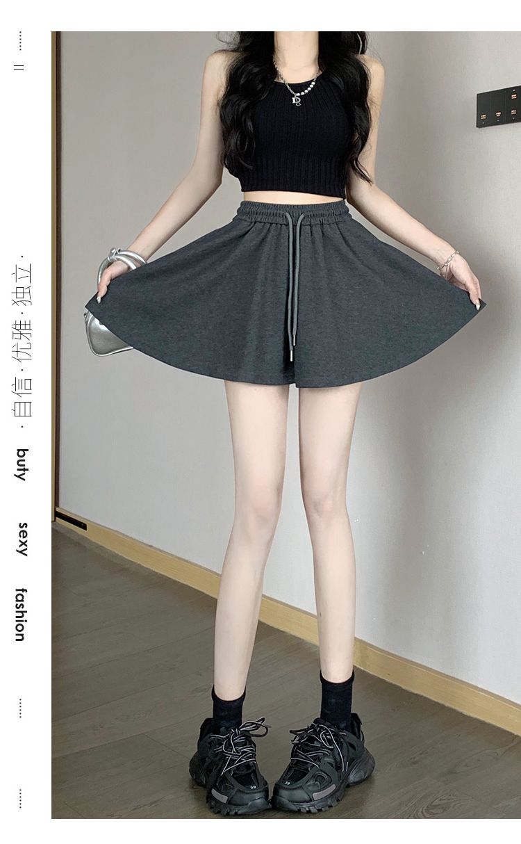 RY2759# 灰色运动短裤女夏季新款短裙宽松显瘦休闲百搭高腰阔腿a字热裤