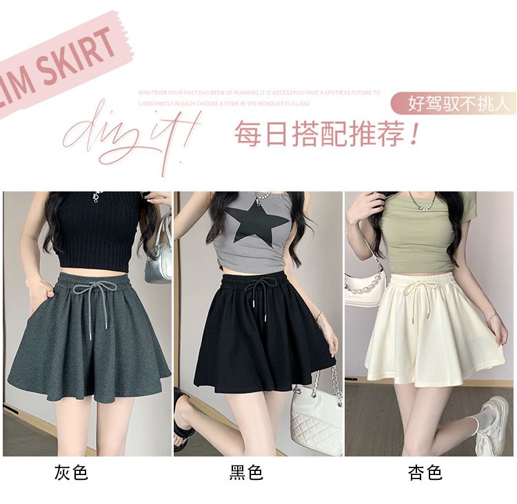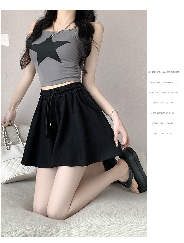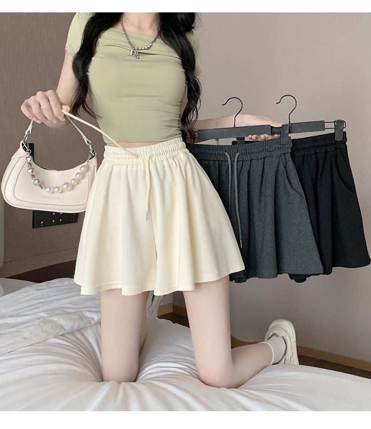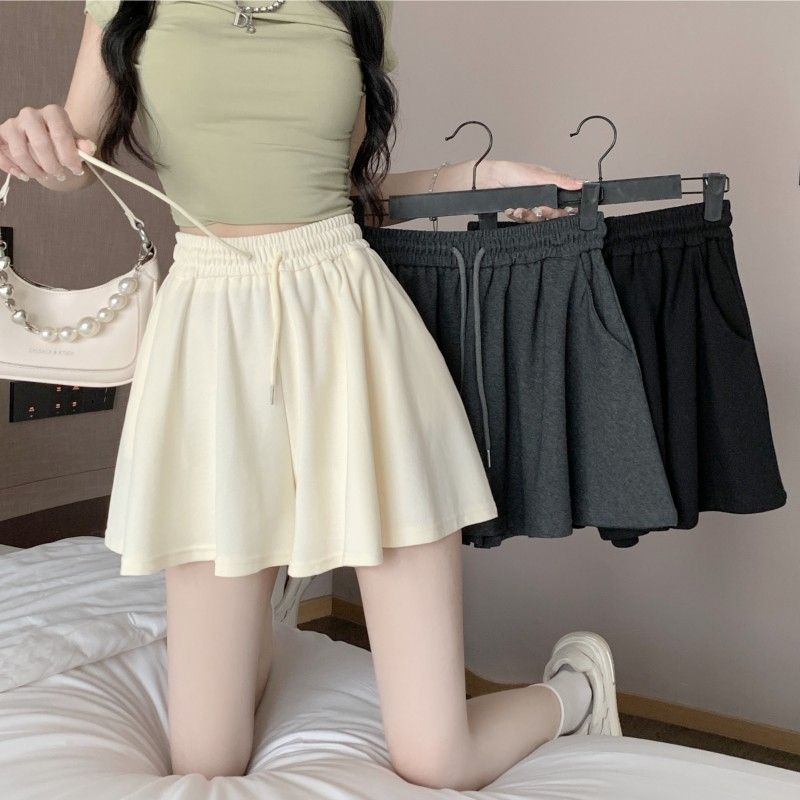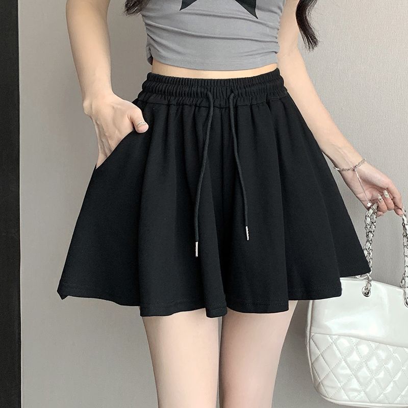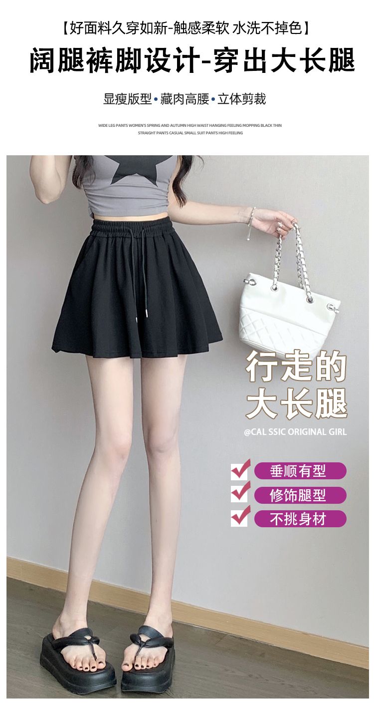 RY2759# 灰色运动短裤女夏季新款短裙宽松显瘦休闲百搭高腰阔腿a字热裤