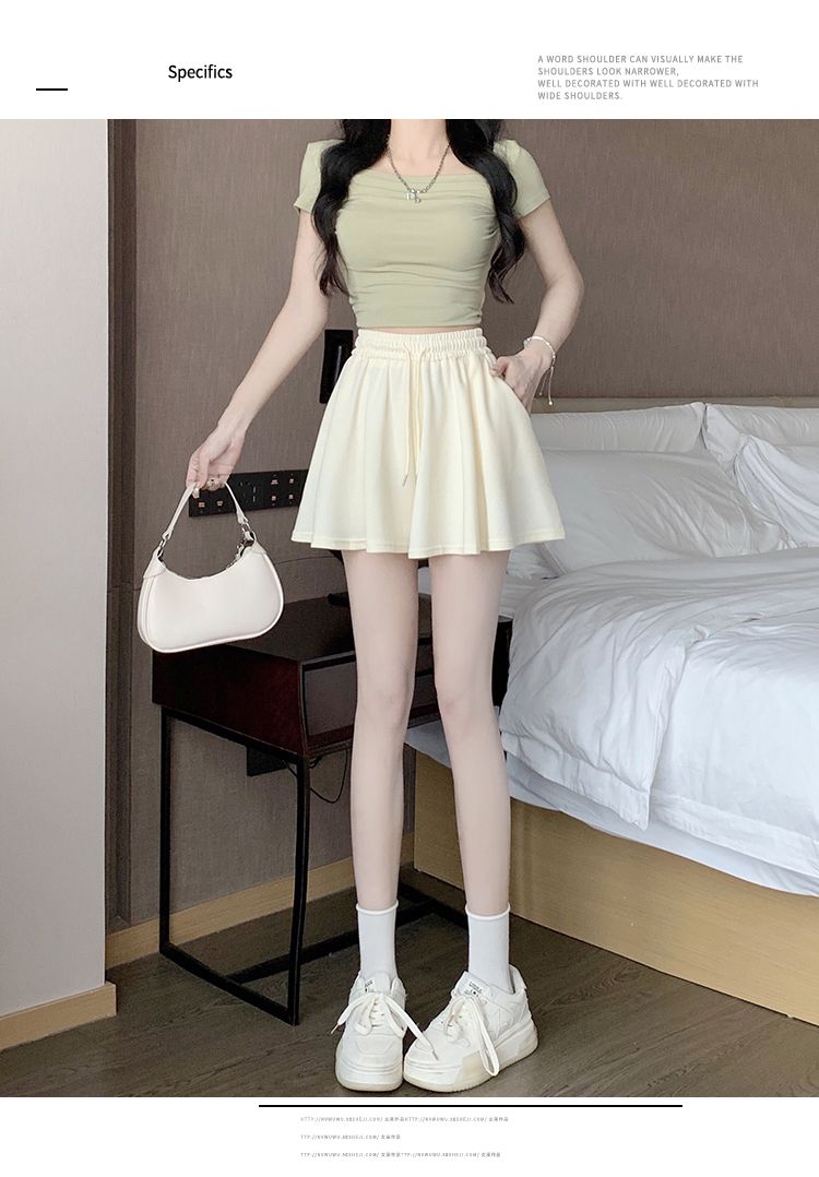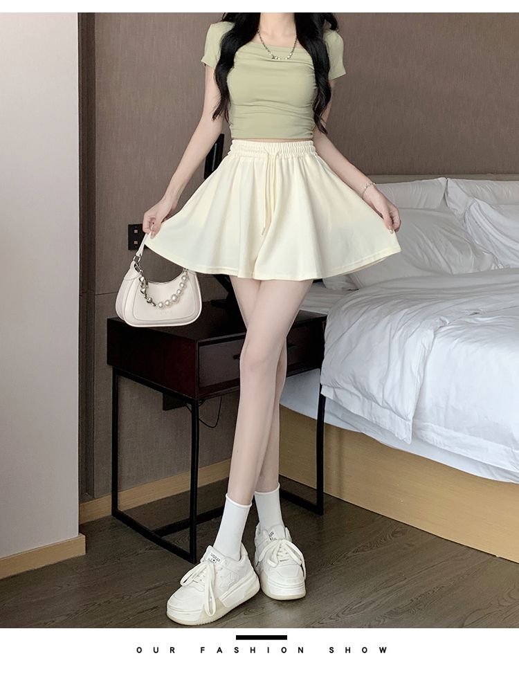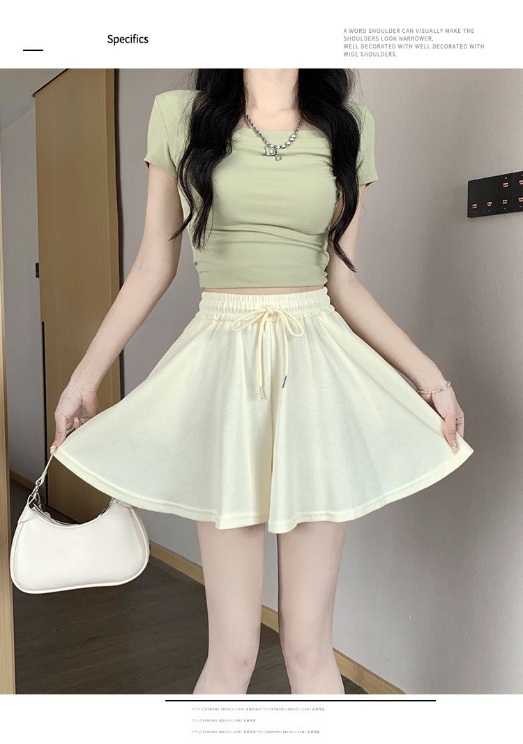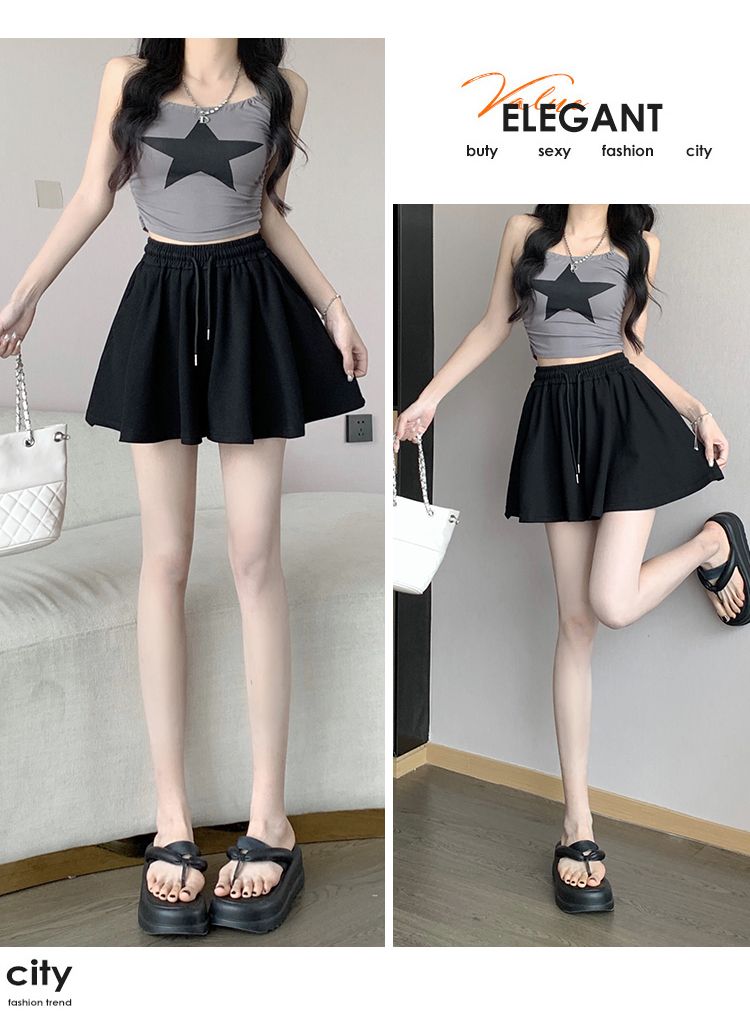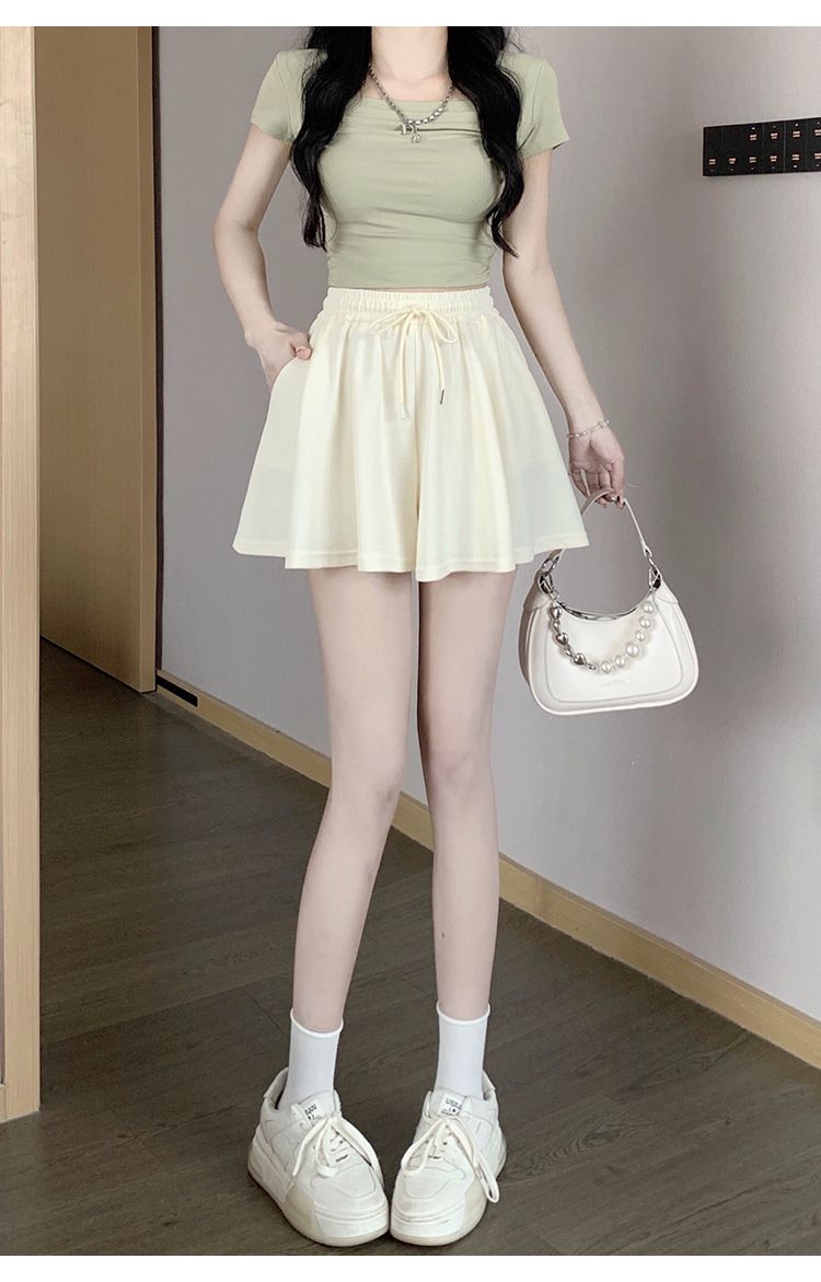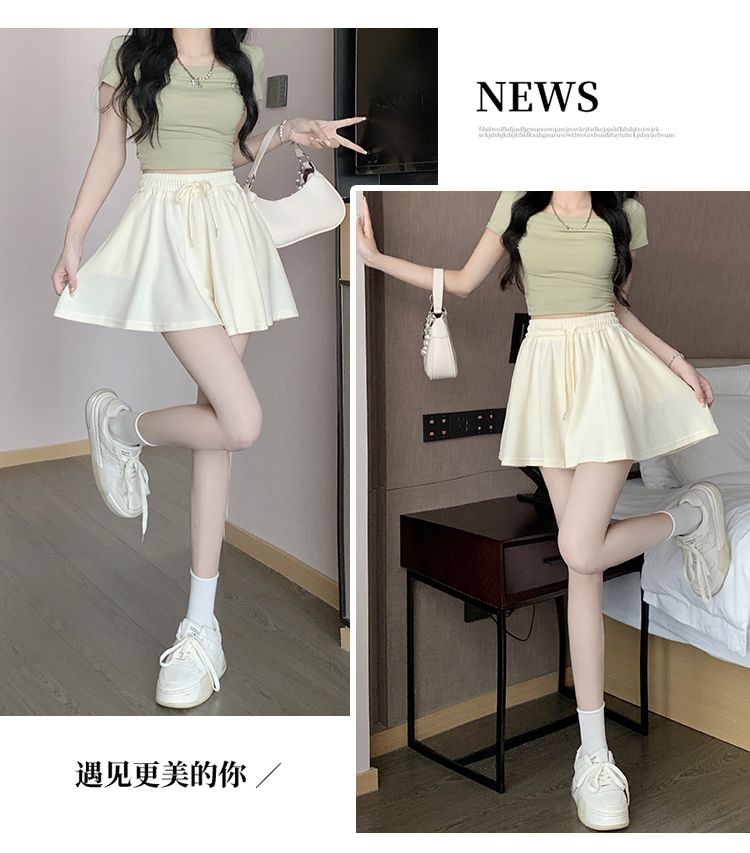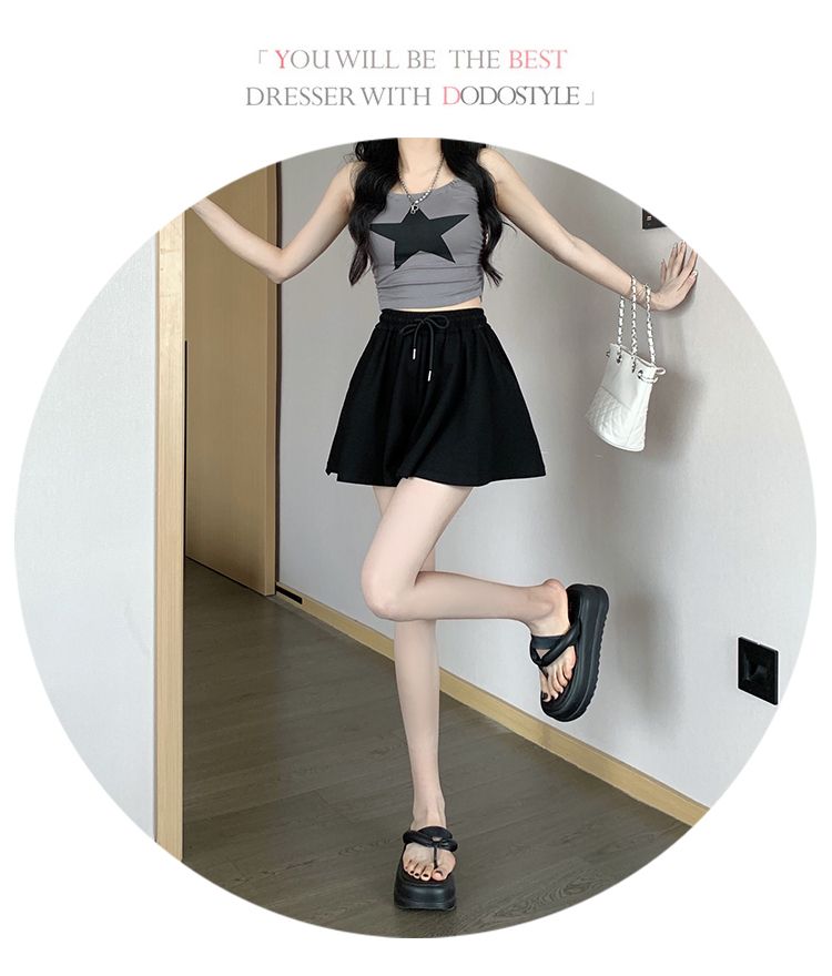 RY2759# 灰色运动短裤女夏季新款短裙宽松显瘦休闲百搭高腰阔腿a字热裤