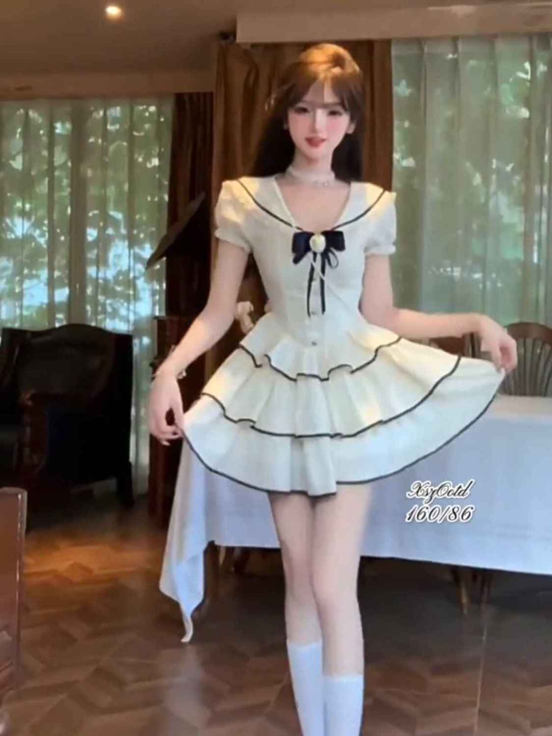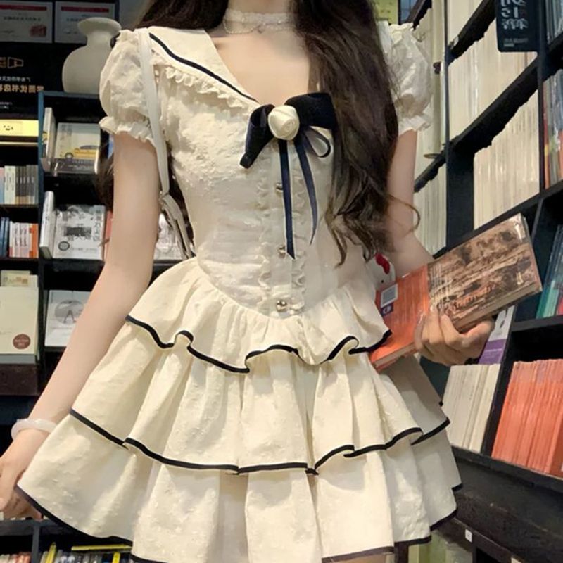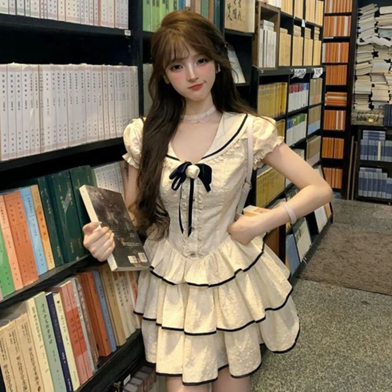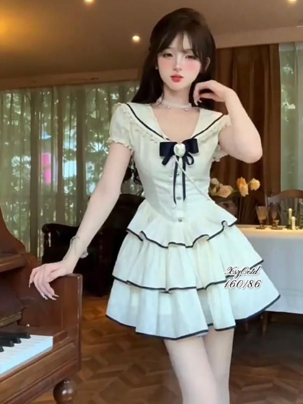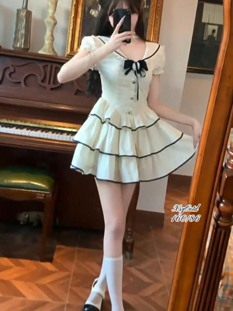 RY2760# 原版做法有内里海军领蛋糕裙夏季新款高级设计感收腰公主蓬蓬裙女