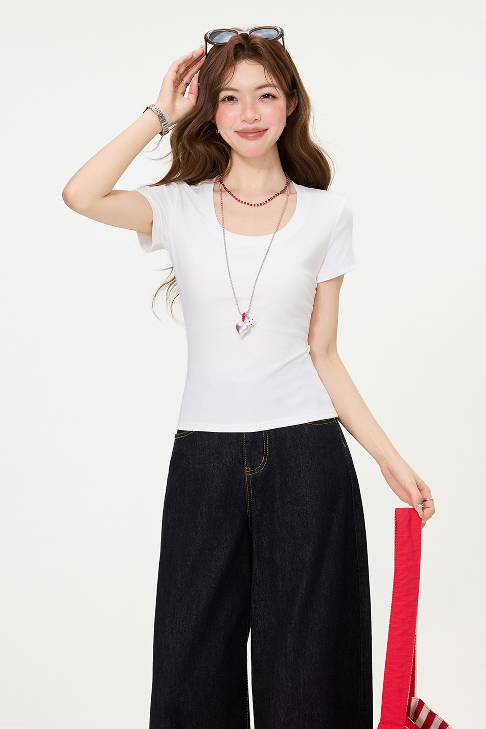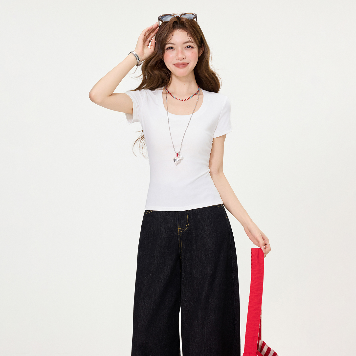 RY2763# 实拍实价韩系简约方领正肩修身短袖T恤夏季新款显瘦百搭上衣女装