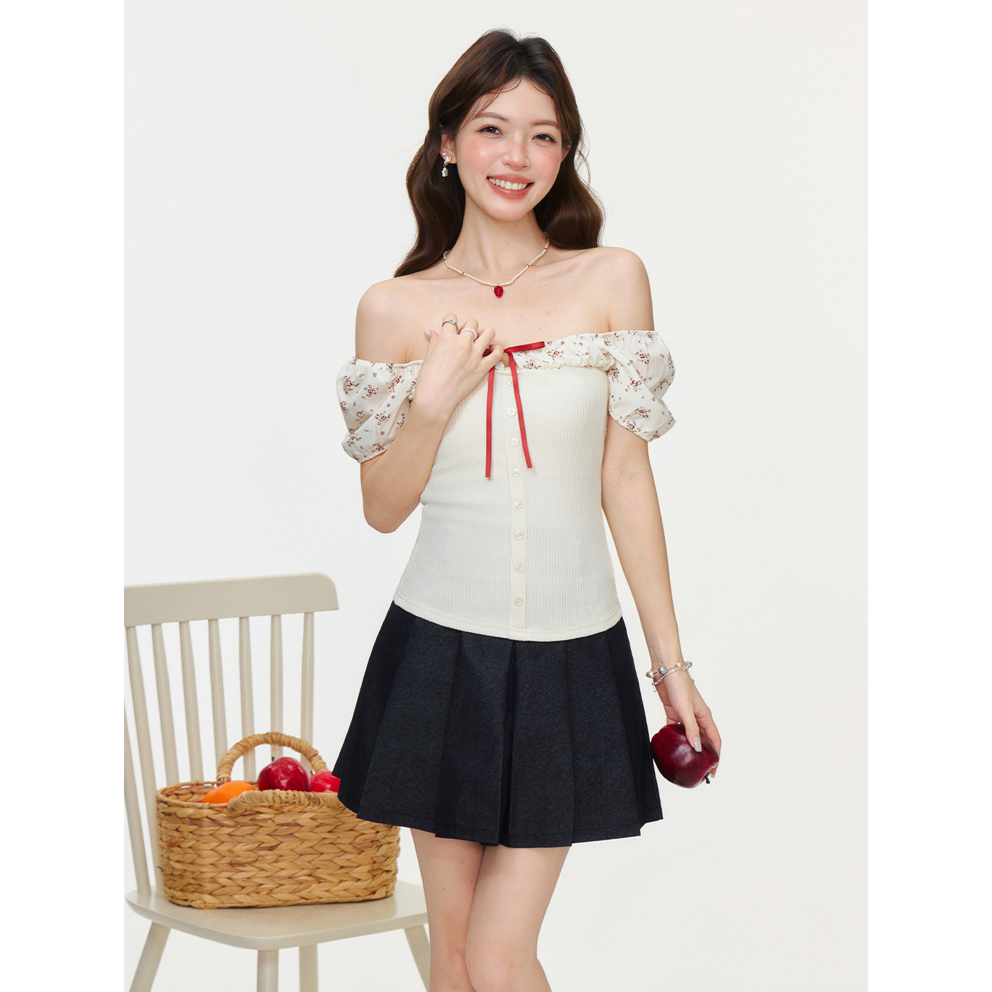 RY2768# 实拍实价短袖t恤女2026新款夏季一字肩修身辣妹露肩韩系短款上衣