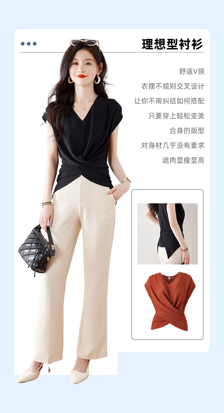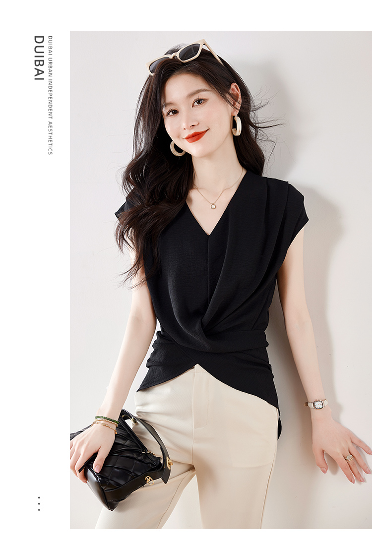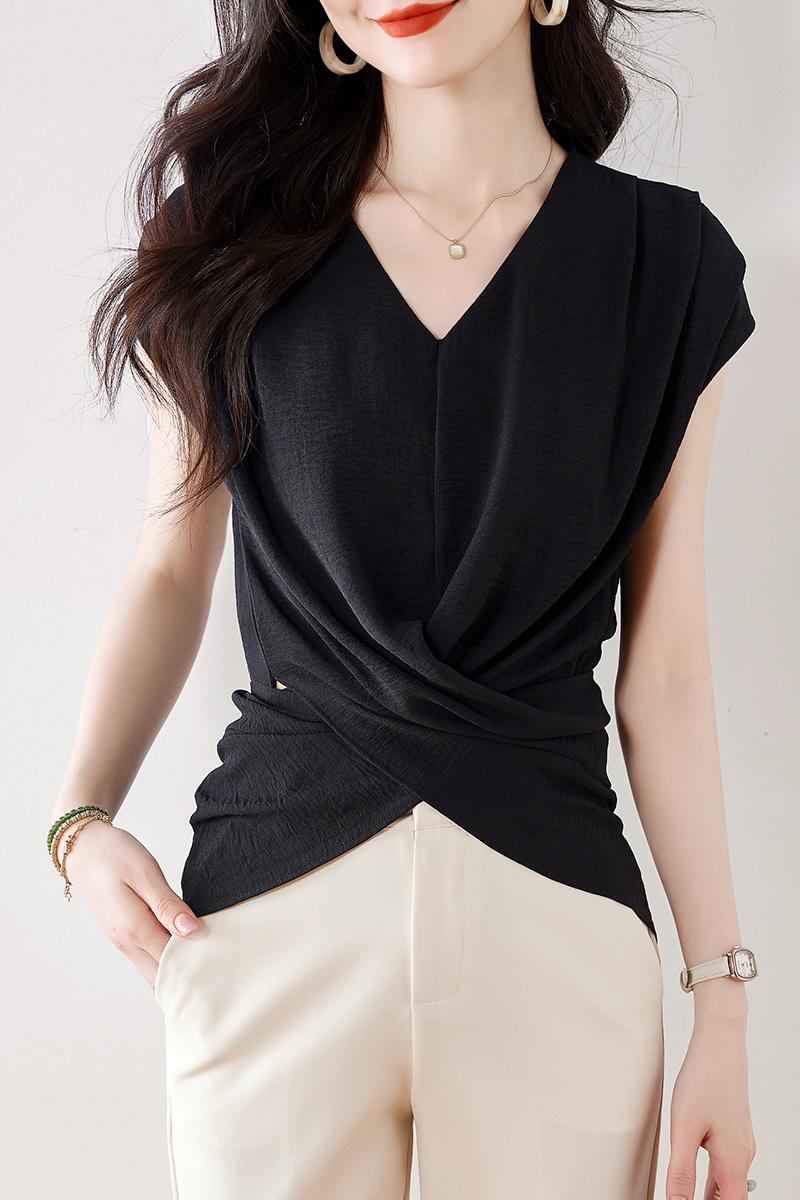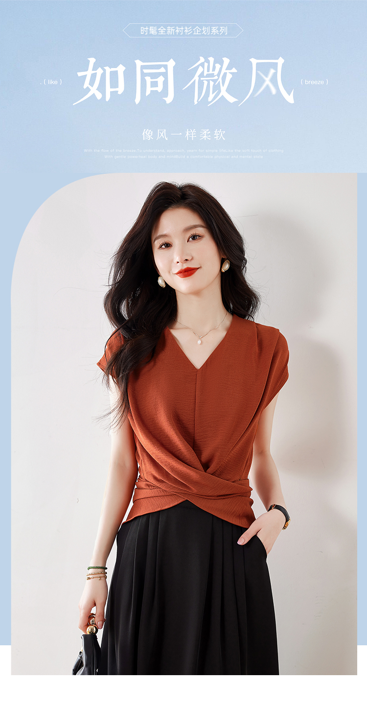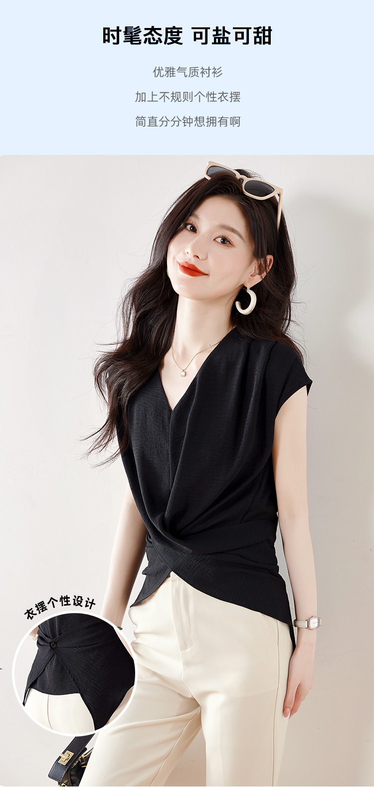 RY2779# 实拍流行洋气高端别致绝美小衫美拉德色v领无袖收腰衬衫女夏季