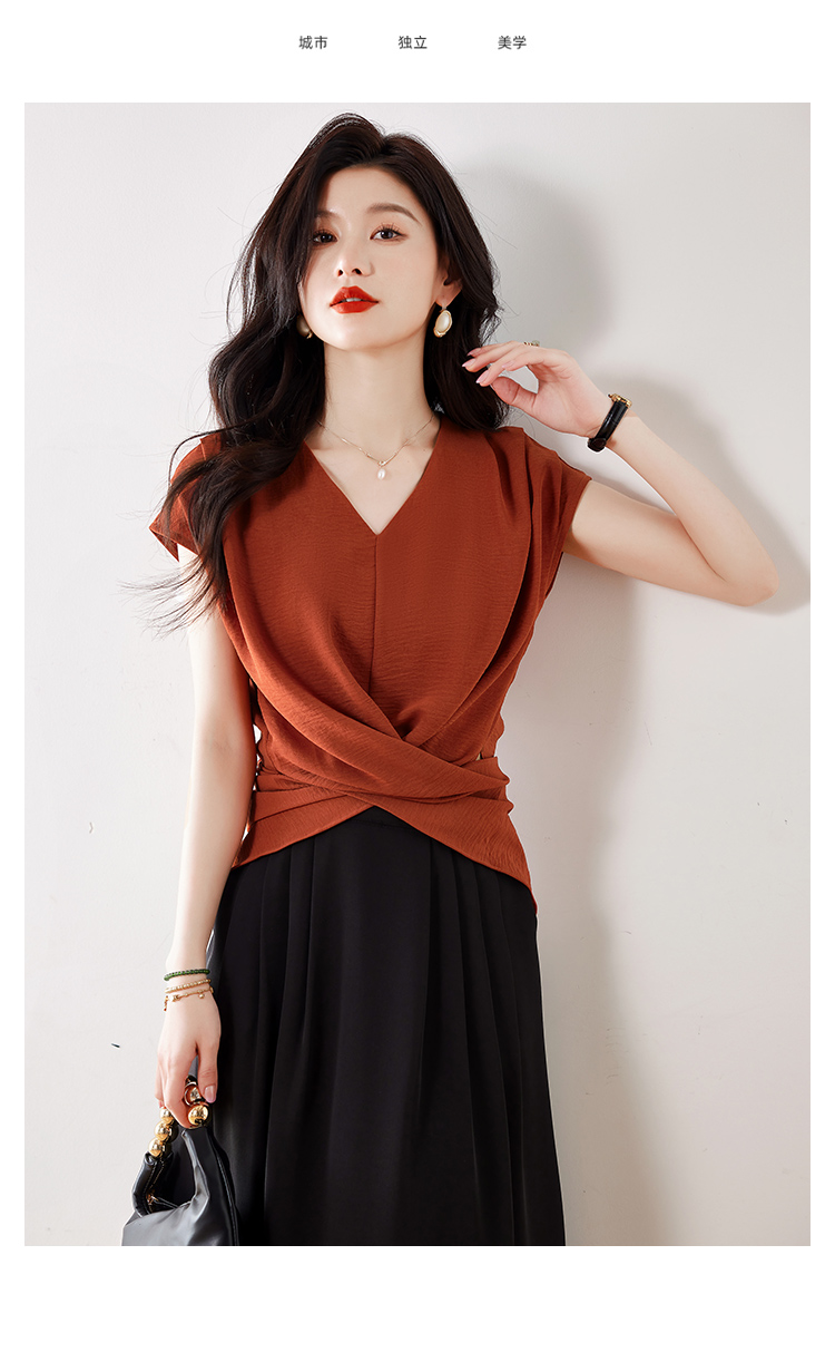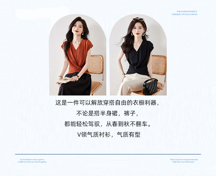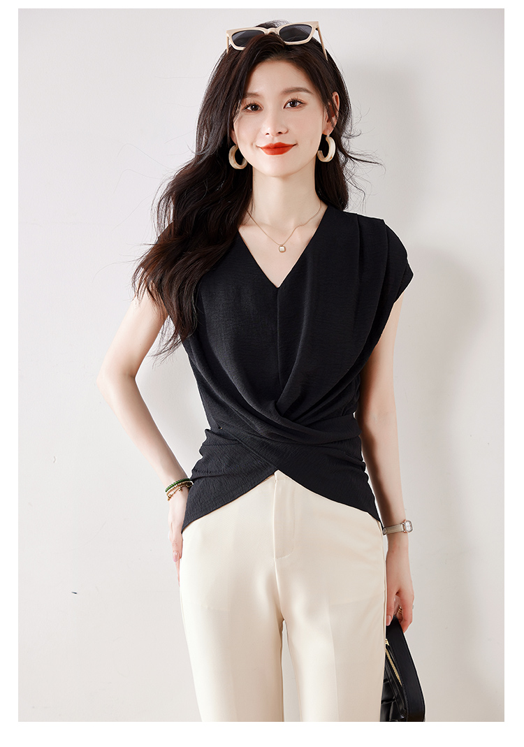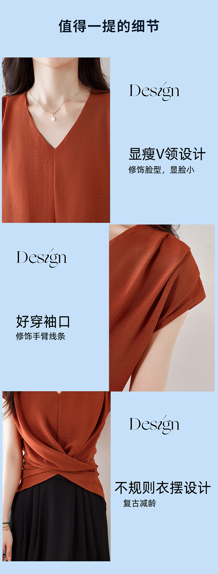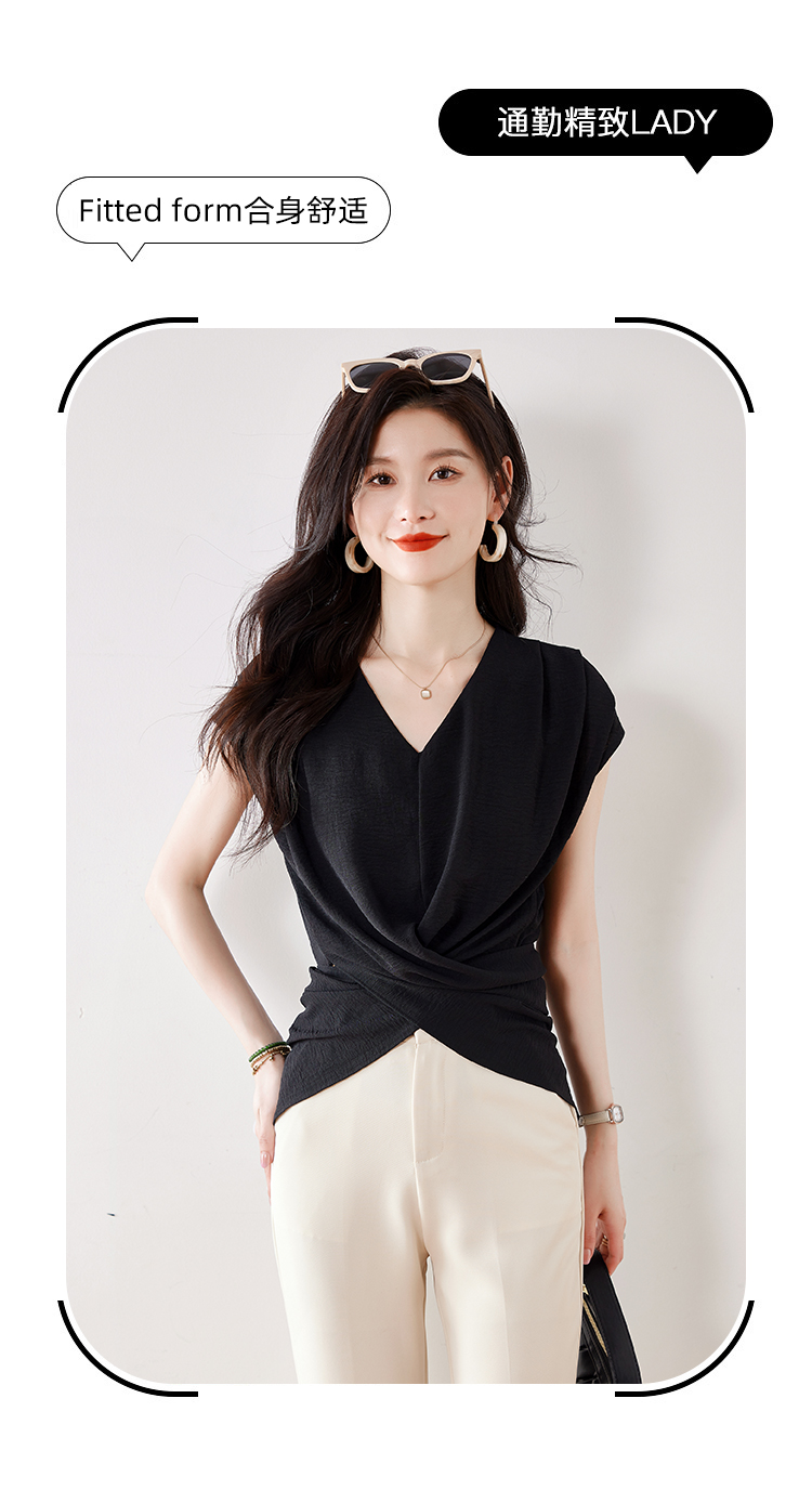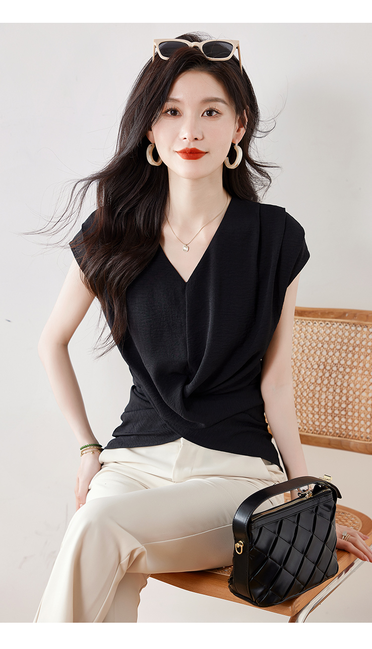 RY2779# 实拍流行洋气高端别致绝美小衫美拉德色v领无袖收腰衬衫女夏季