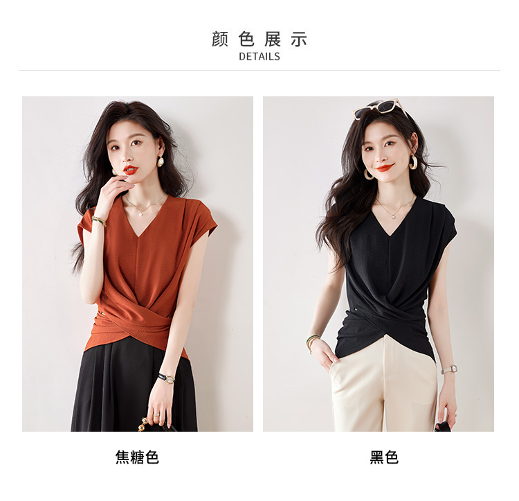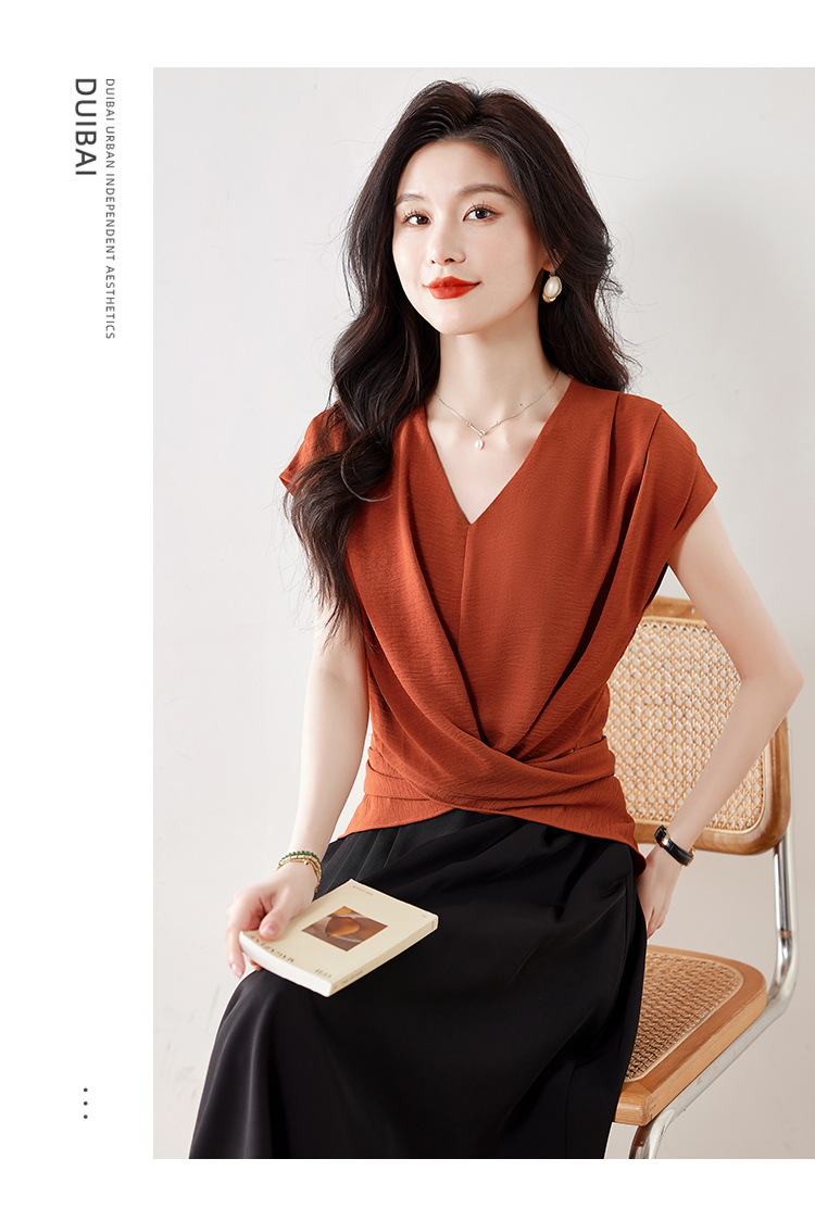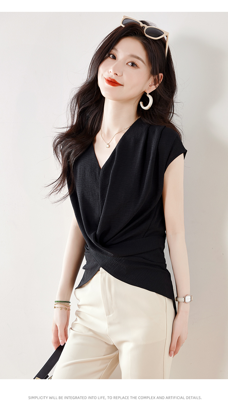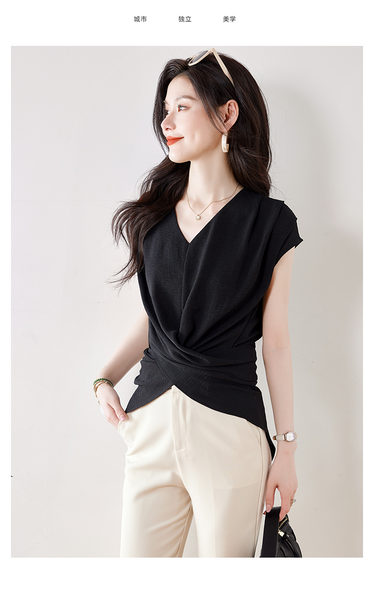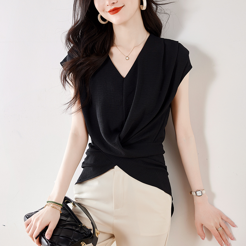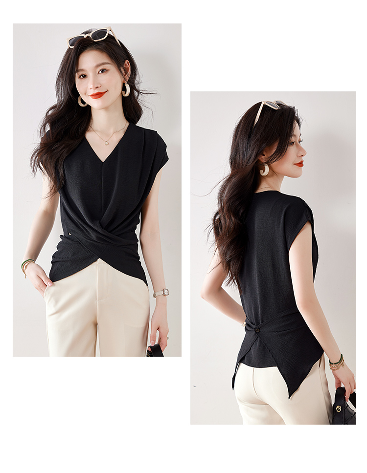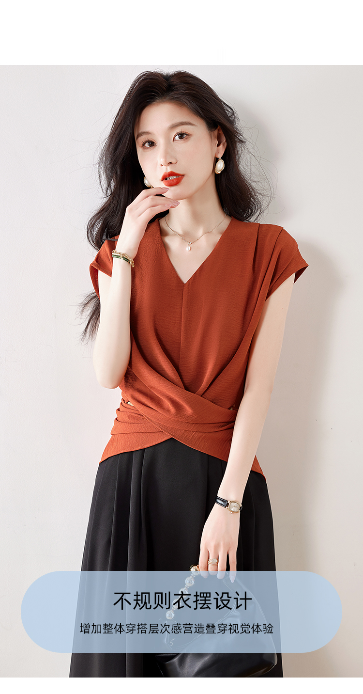 RY2779# 实拍流行洋气高端别致绝美小衫美拉德色v领无袖收腰衬衫女夏季