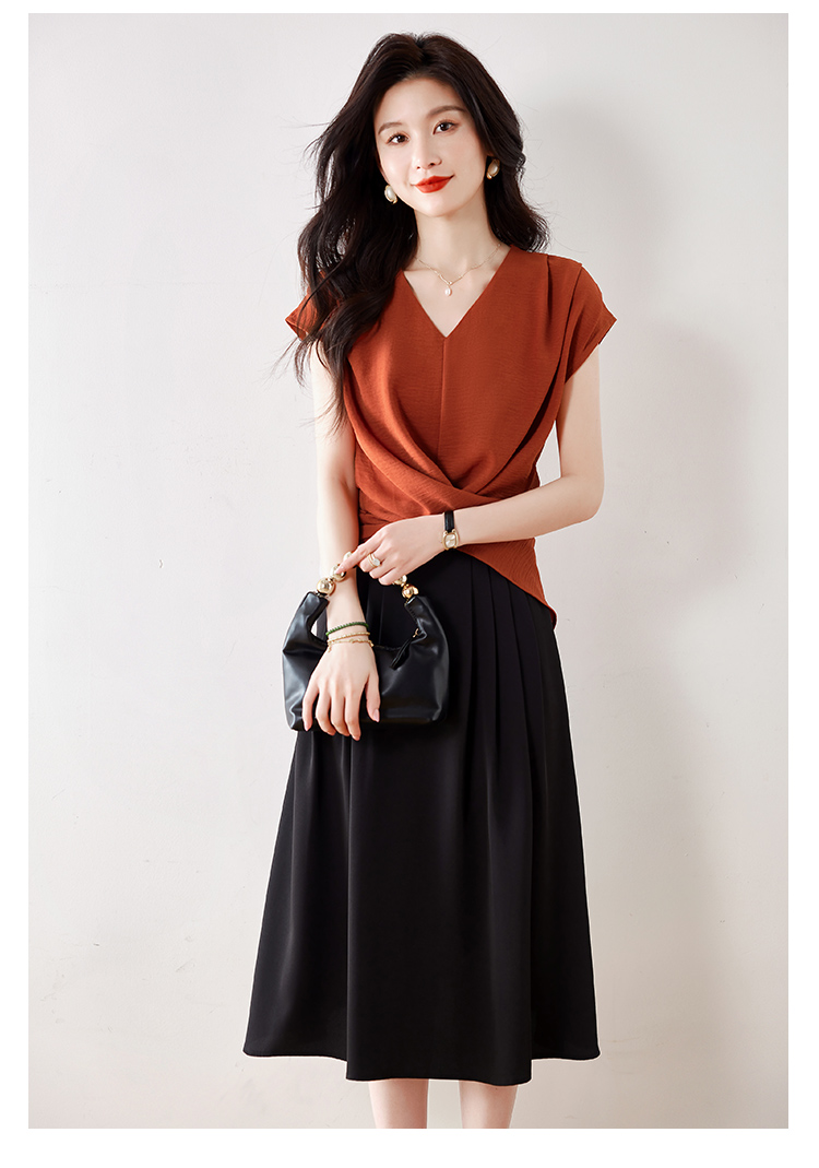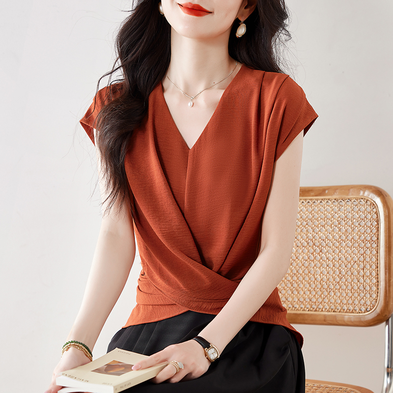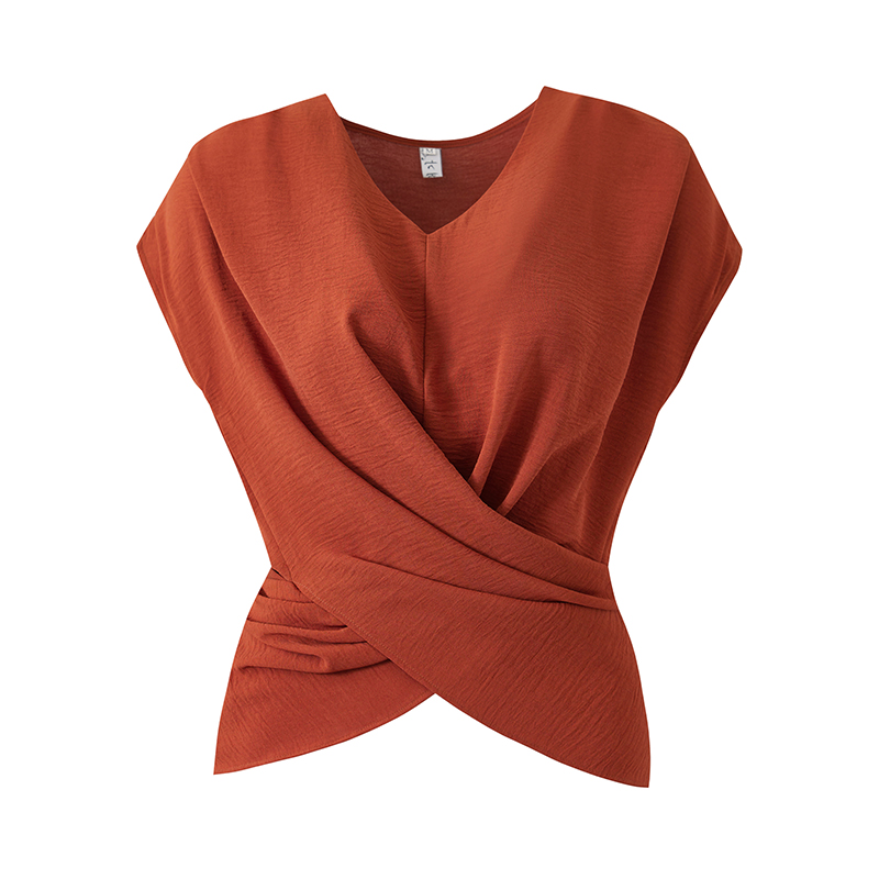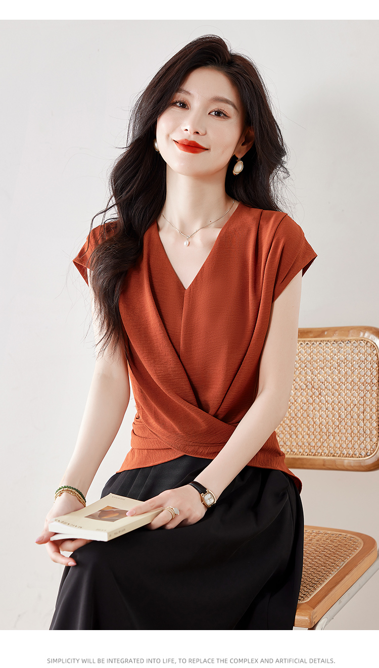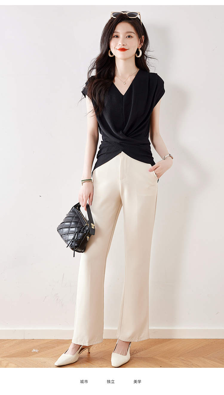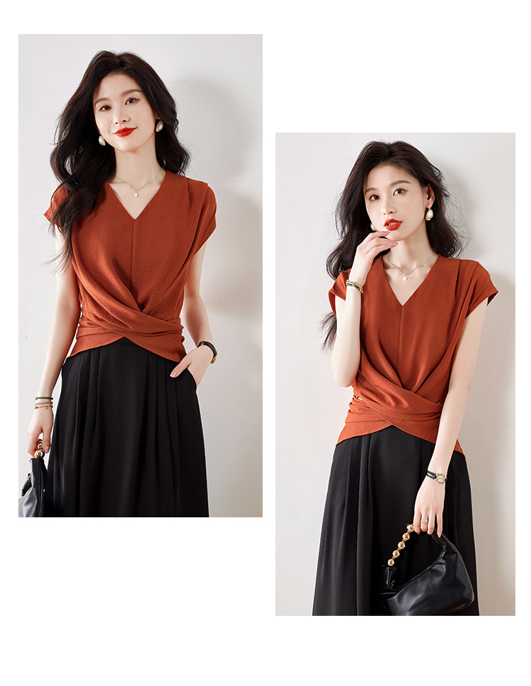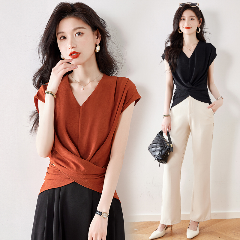 RY2779# 实拍流行洋气高端别致绝美小衫美拉德色v领无袖收腰衬衫女夏季