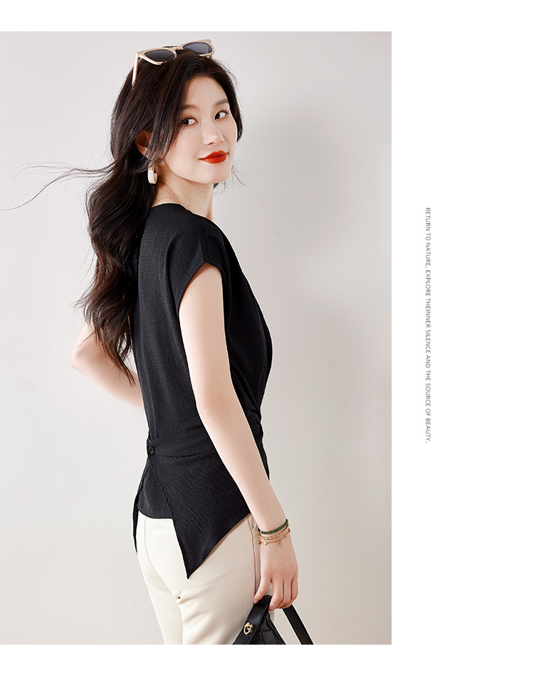 RY2771# 实拍实价韩系木耳边斜领露肩短袖T恤女2026夏季掐腰修身短...