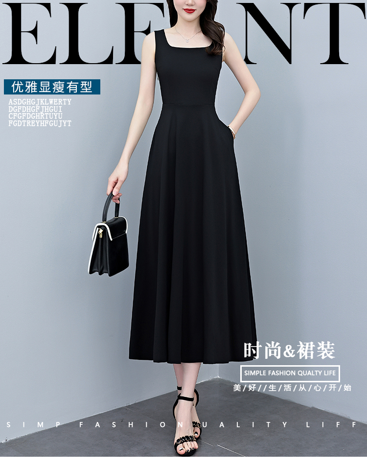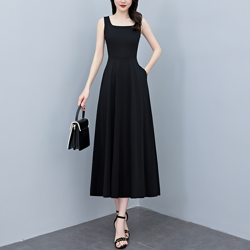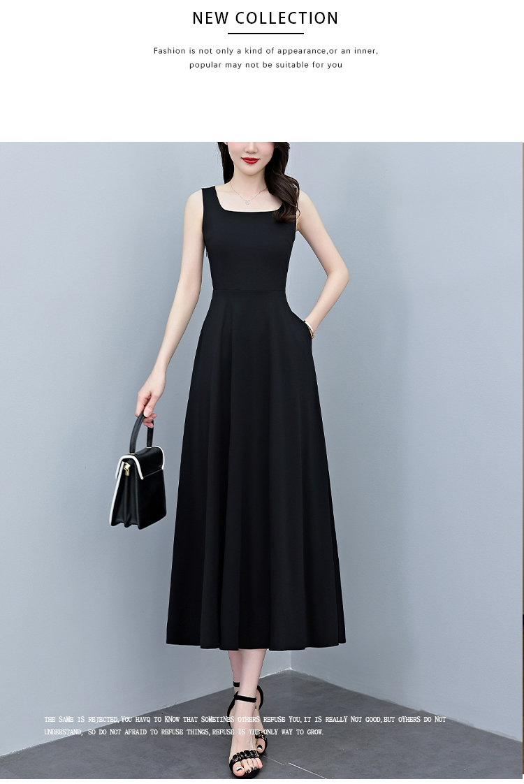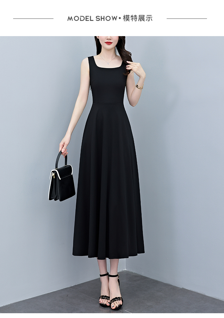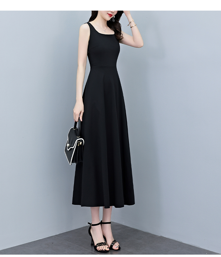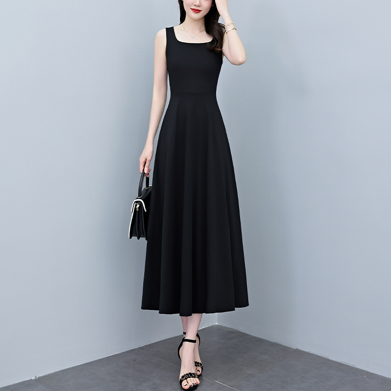 RY2789# 2026夏季新款赫本风黑色无袖连衣裙女长款收腰显瘦打底背心小黑裙