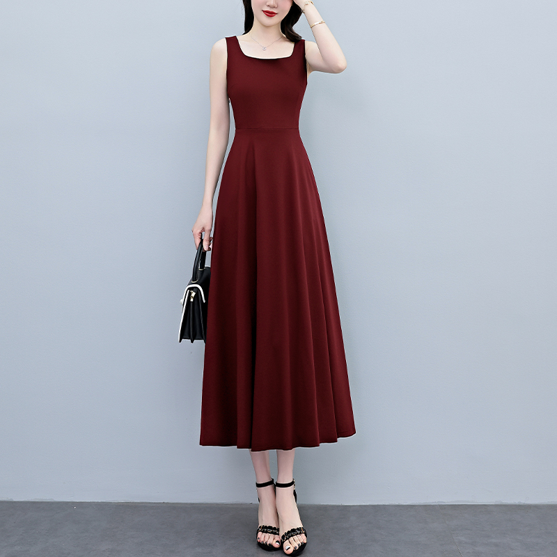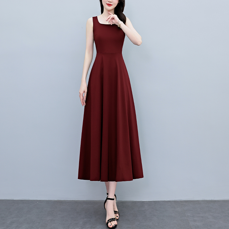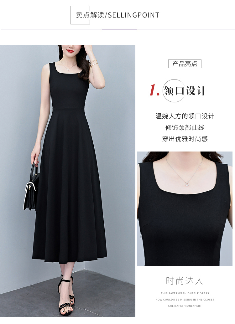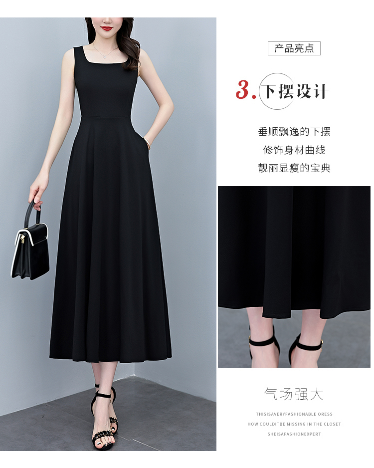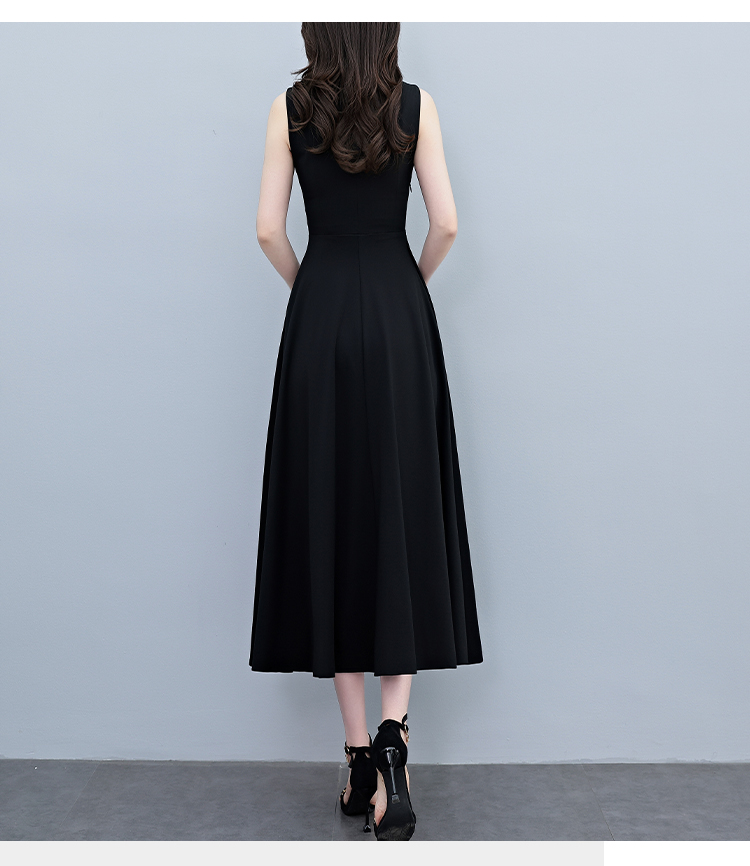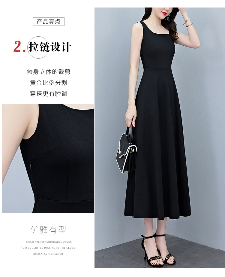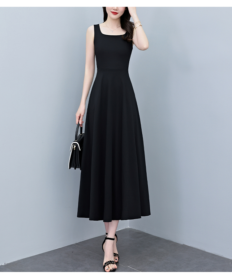 RY2789# 2026夏季新款赫本风黑色无袖连衣裙女长款收腰显瘦打底背心小黑裙