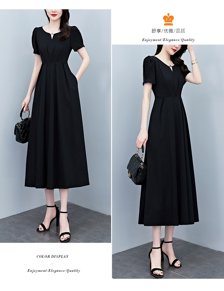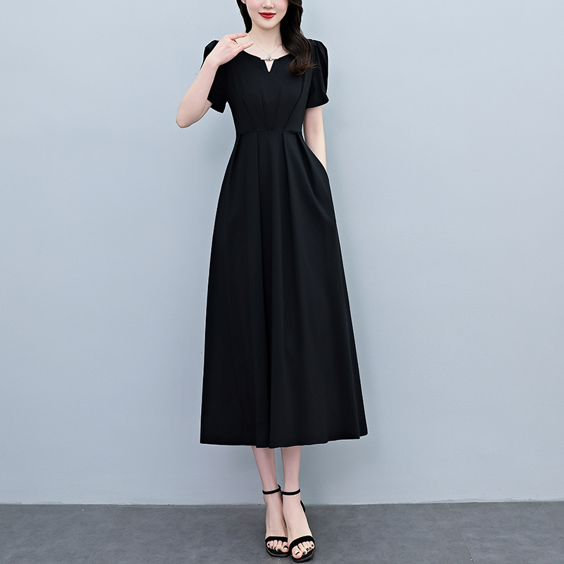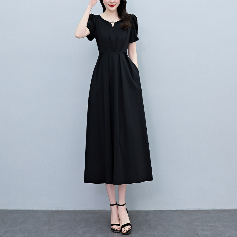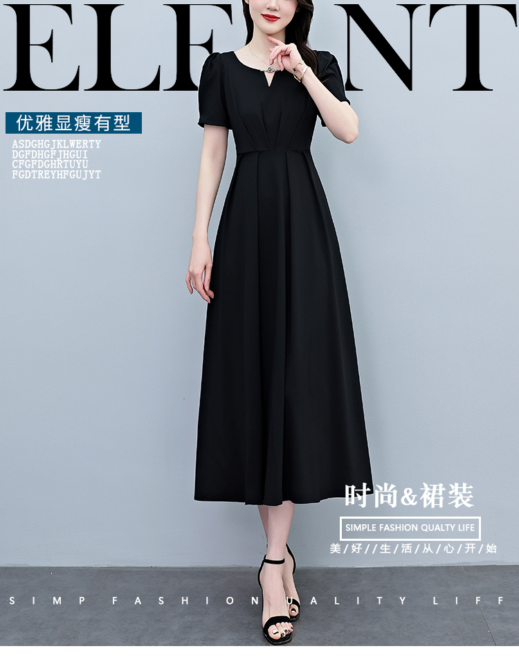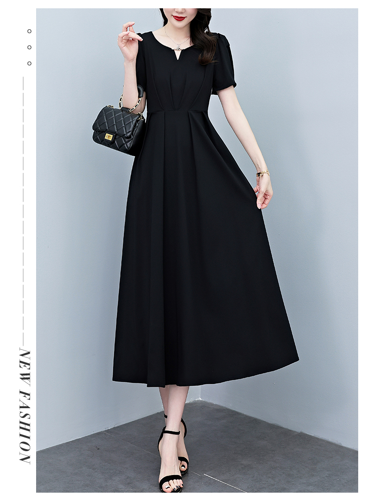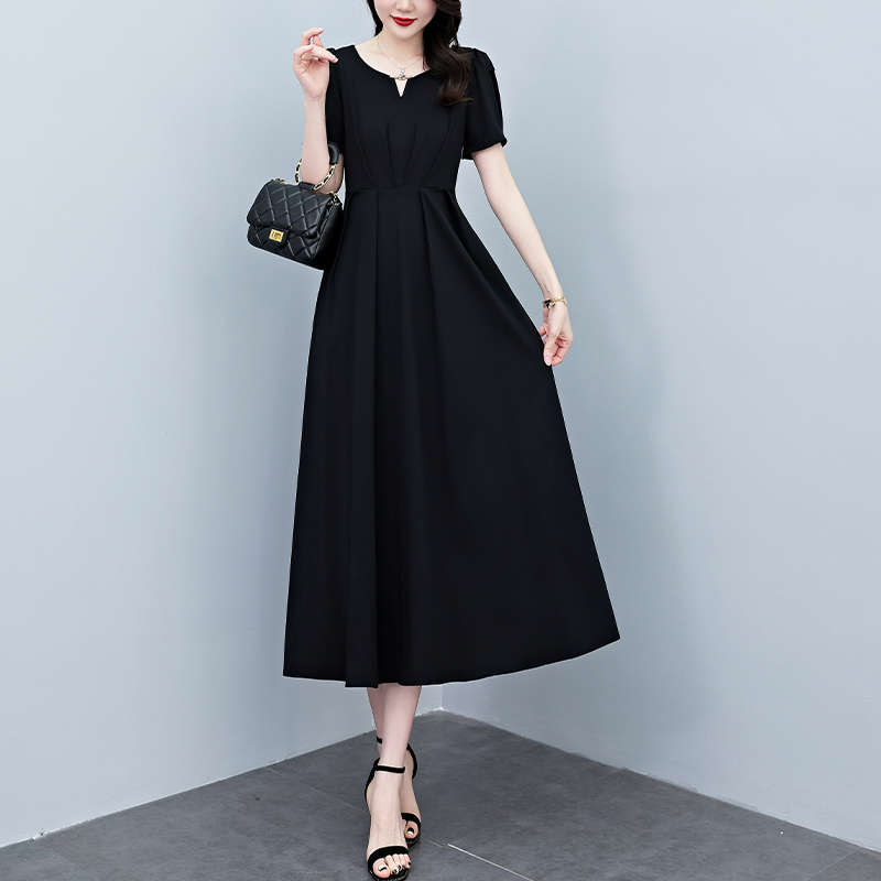 RY2790# 2026夏季新款赫本风黑色连衣裙女夏长款大码收腰显瘦胖mm小黑裙子