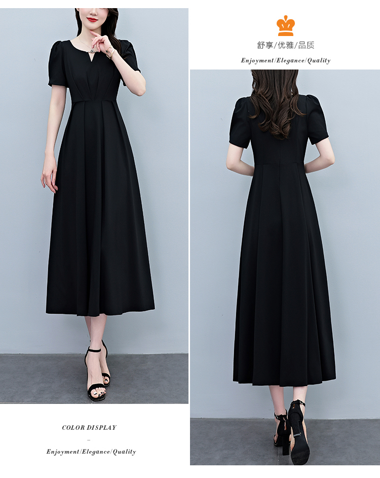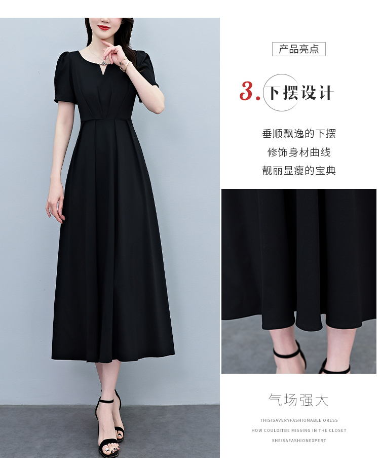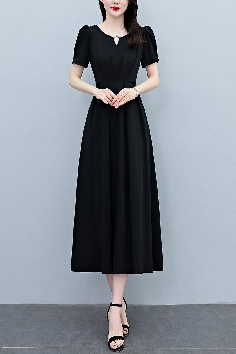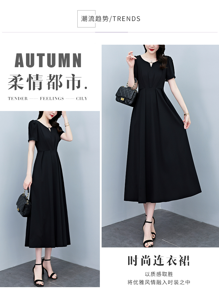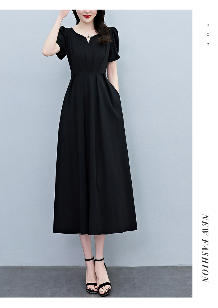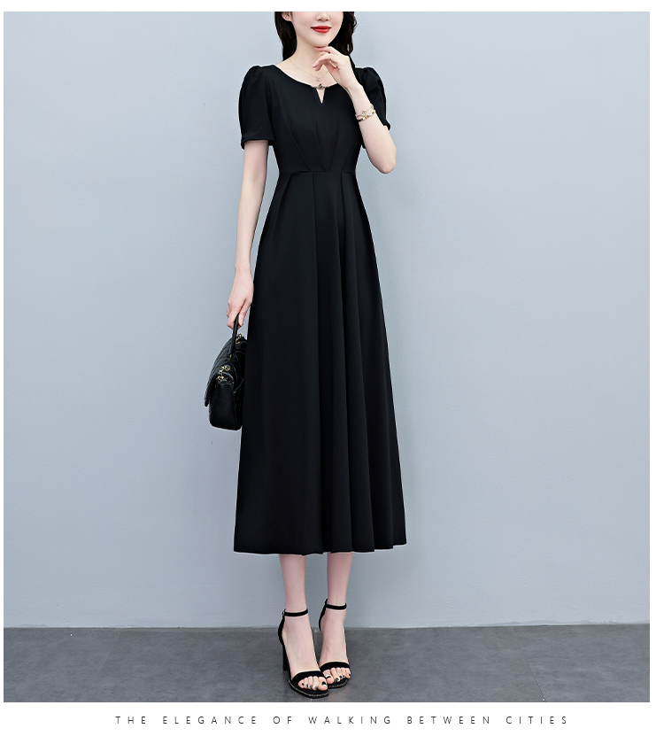 RY2790# 2026夏季新款赫本风黑色连衣裙女夏长款大码收腰显瘦胖mm小黑裙子