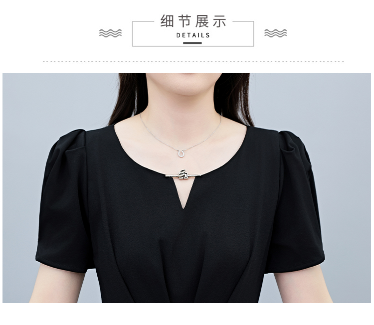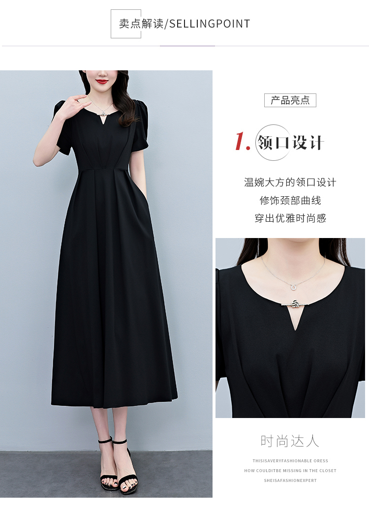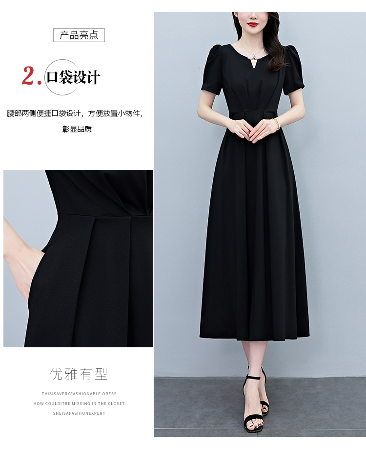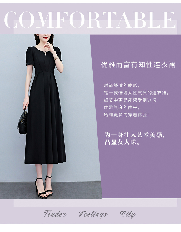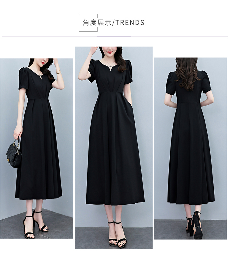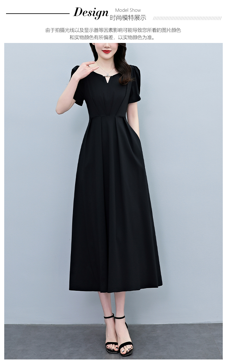 RY2790# 2026夏季新款赫本风黑色连衣裙女夏长款大码收腰显瘦胖mm小黑裙子