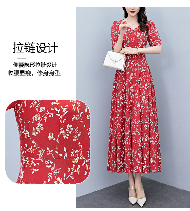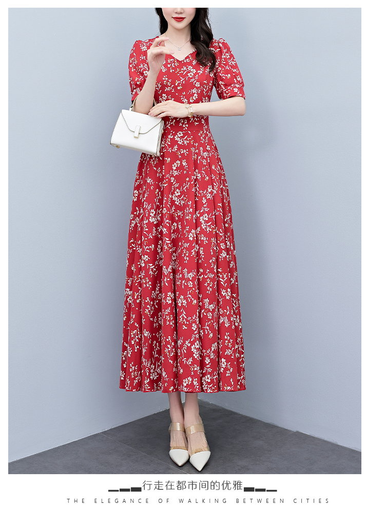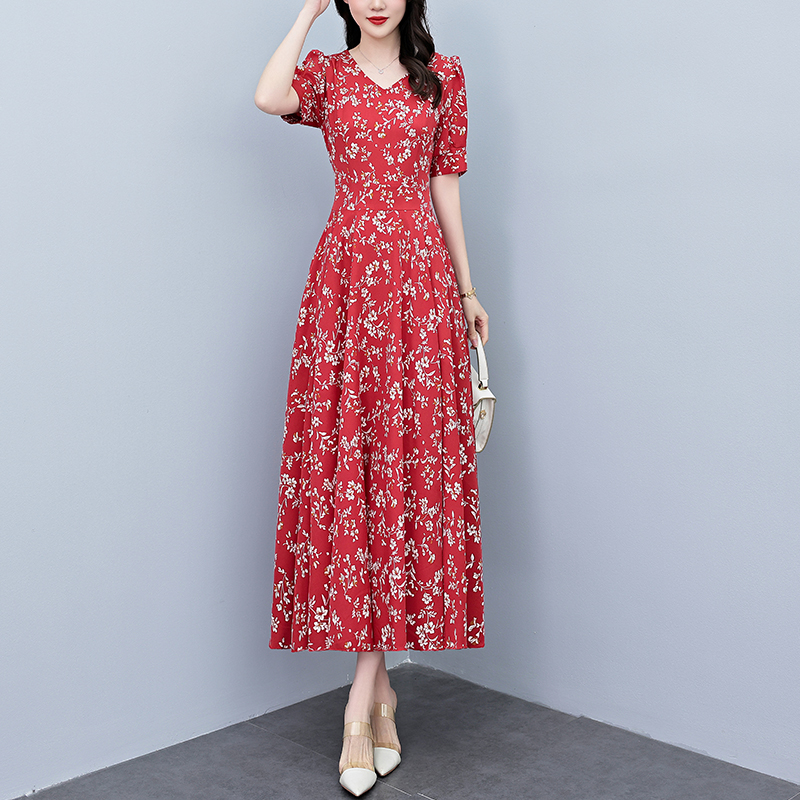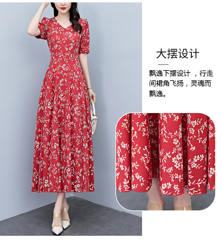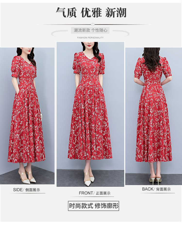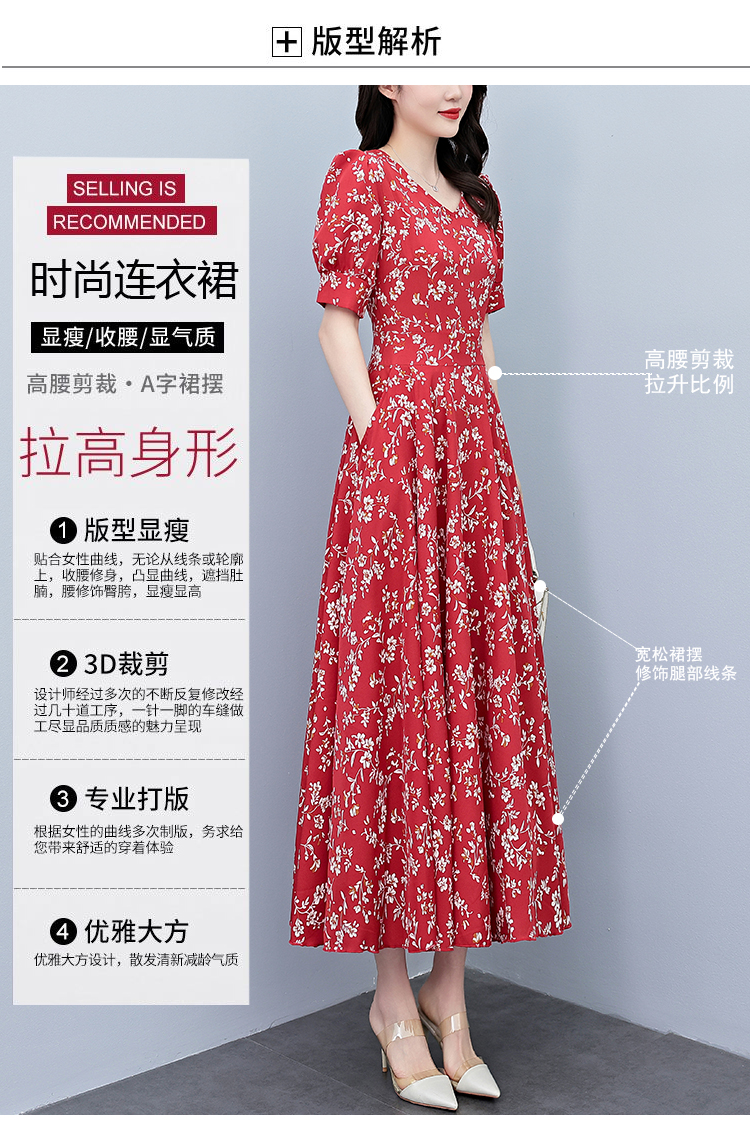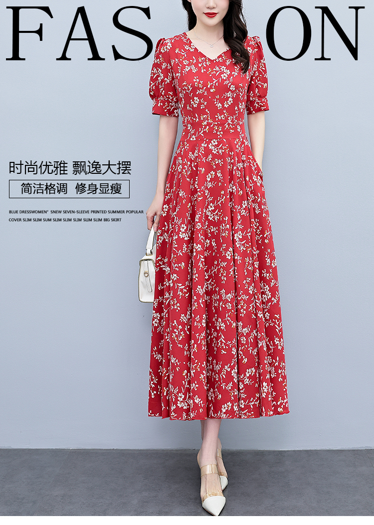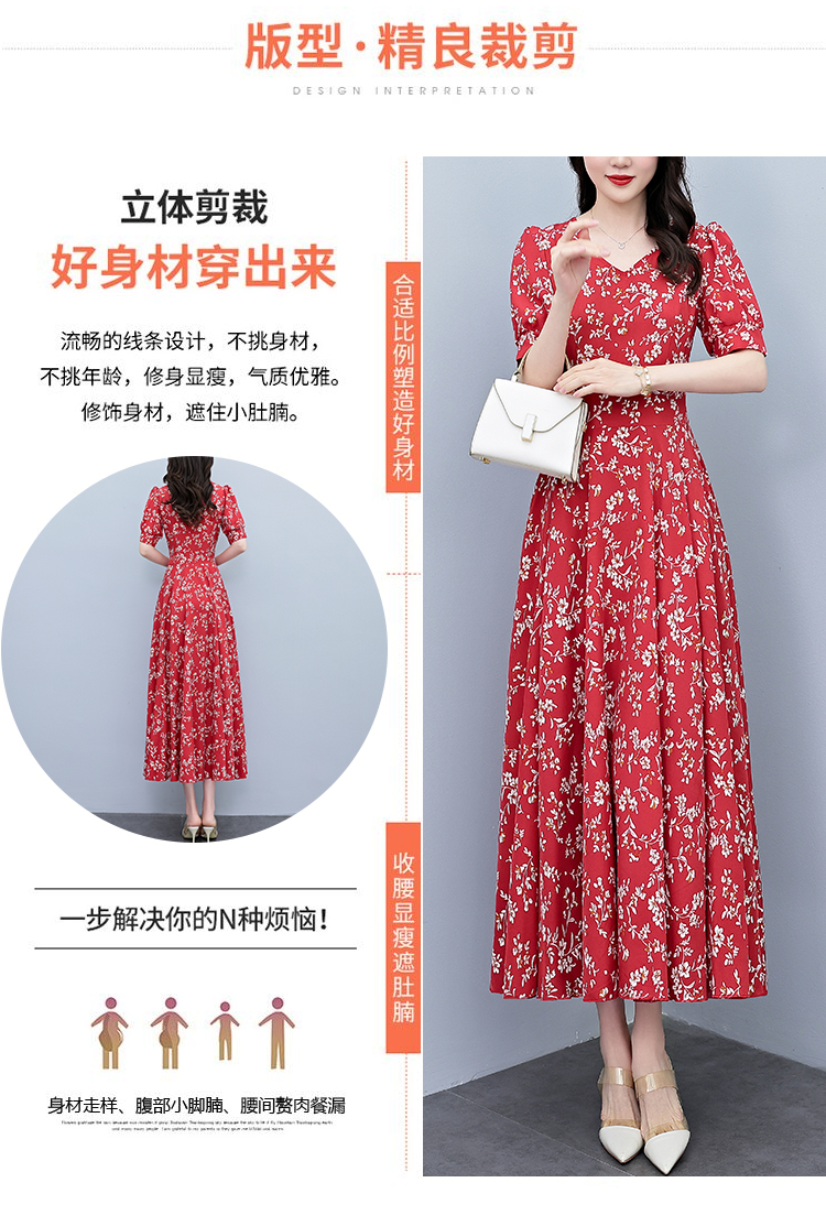 RY2794# 2026夏季新款高档印花雪纺连衣裙长款大码胖mm收腰显瘦遮肚子长裙