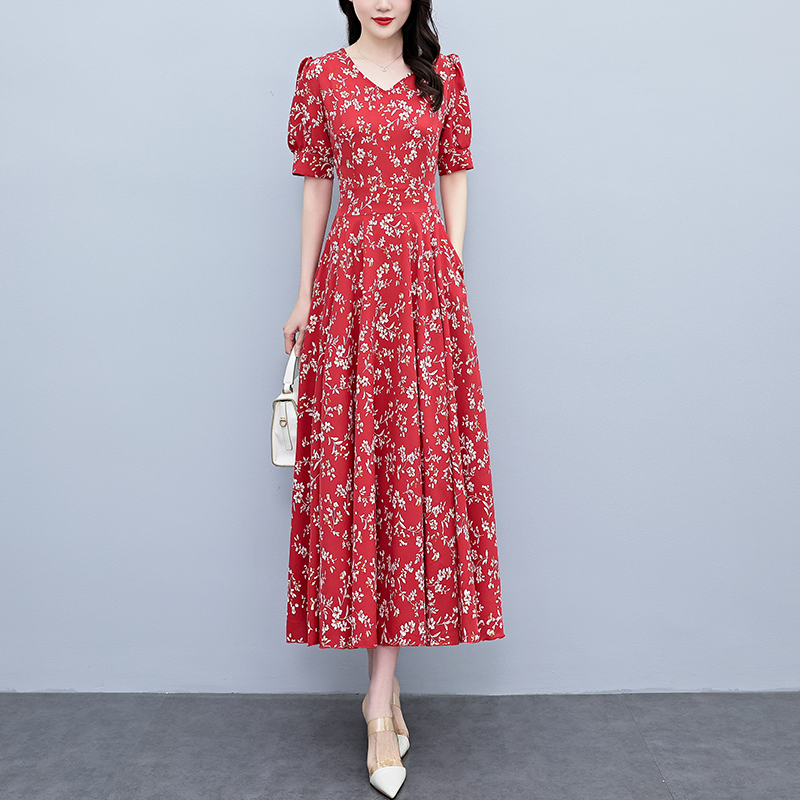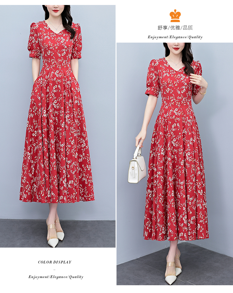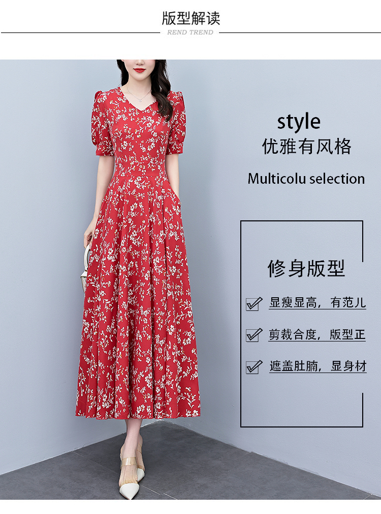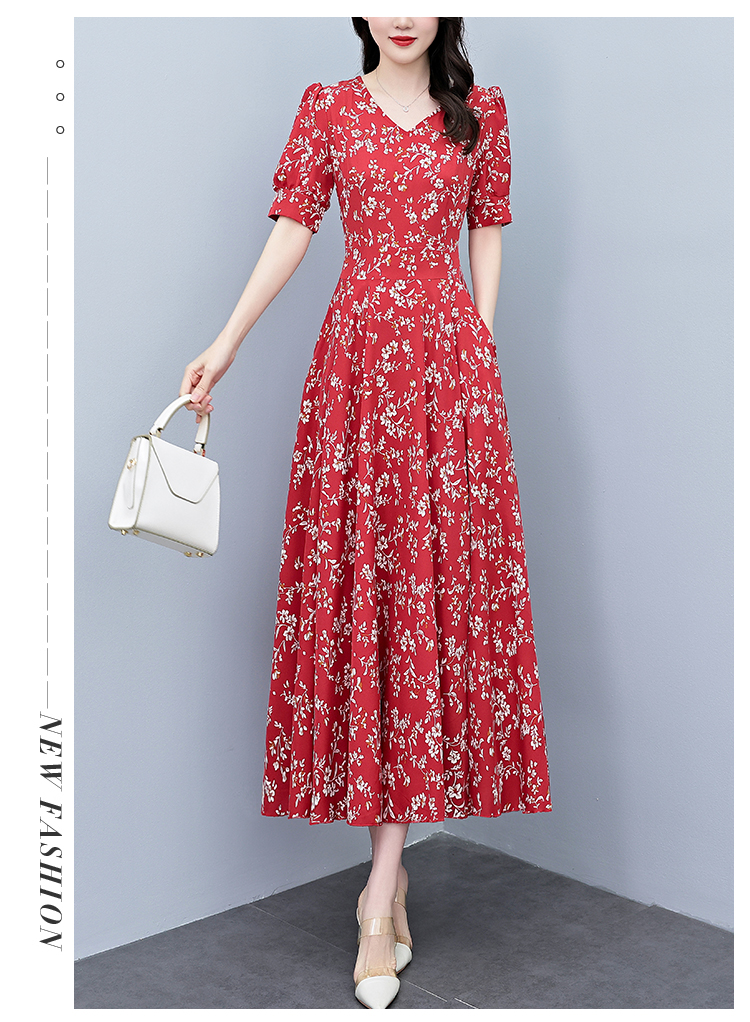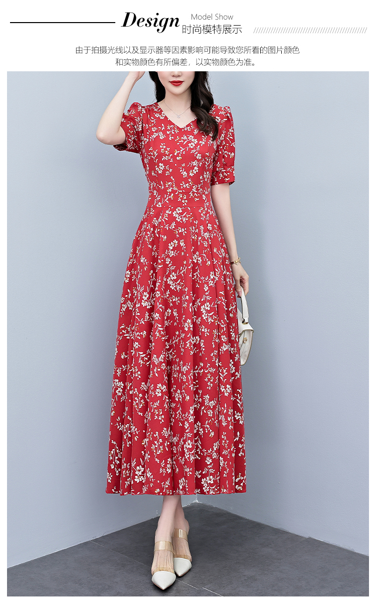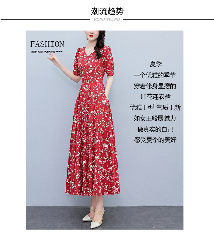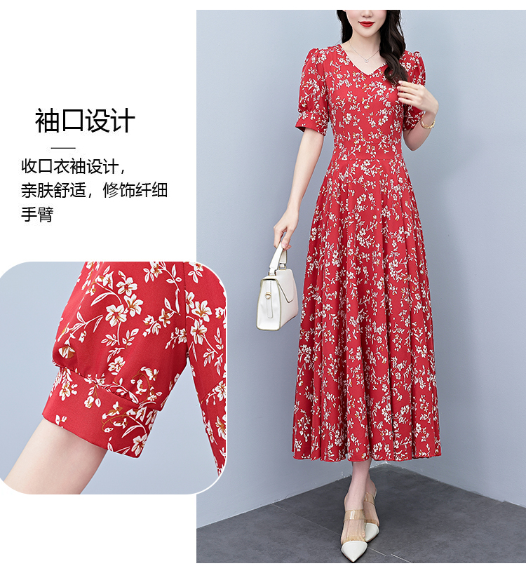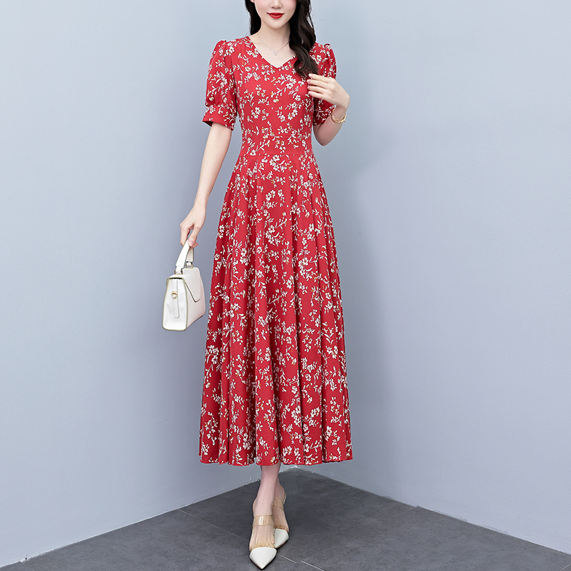 RY2794# 2026夏季新款高档印花雪纺连衣裙长款大码胖mm收腰显瘦遮肚子长裙