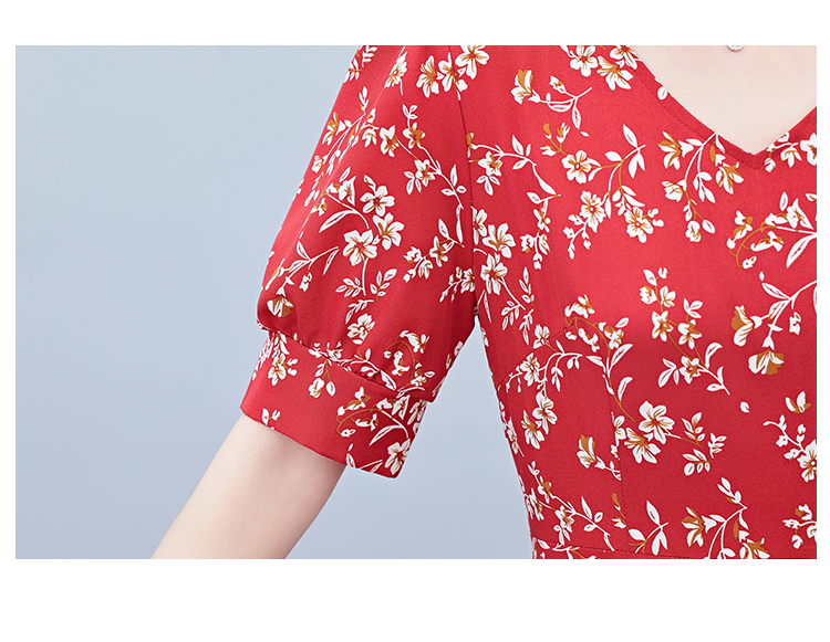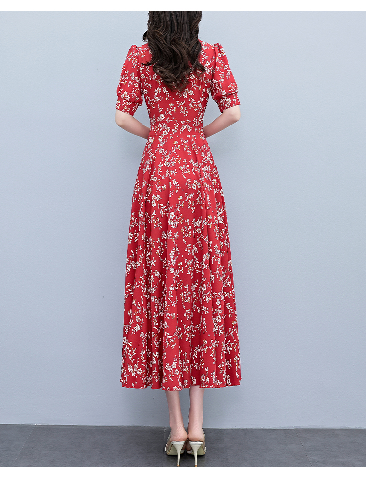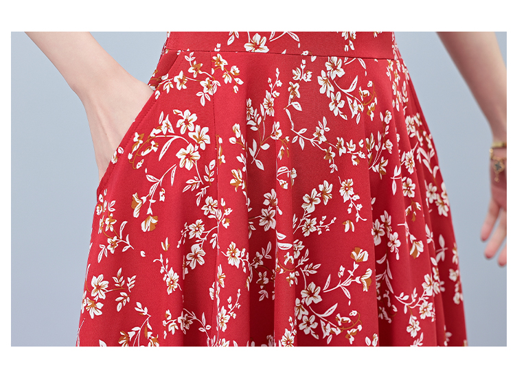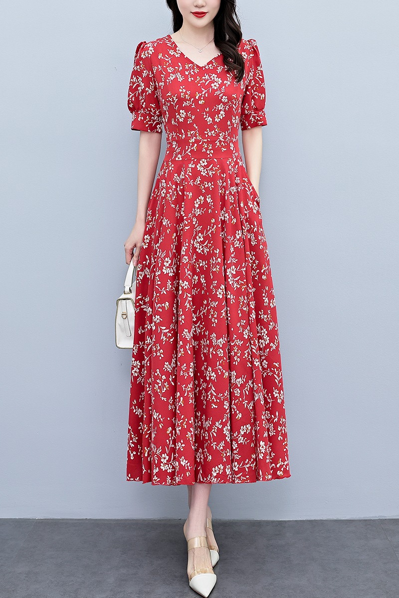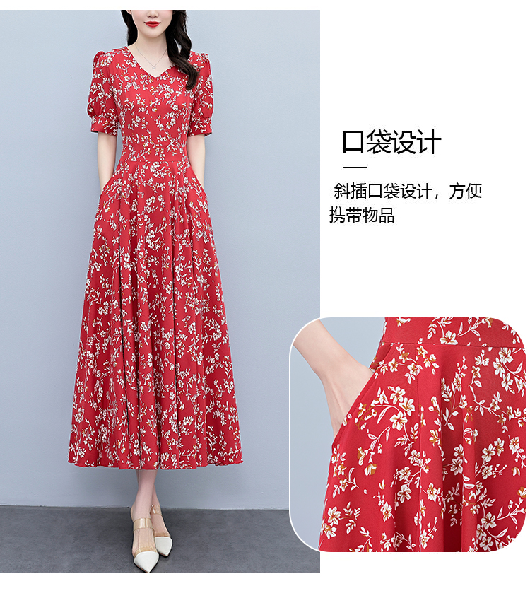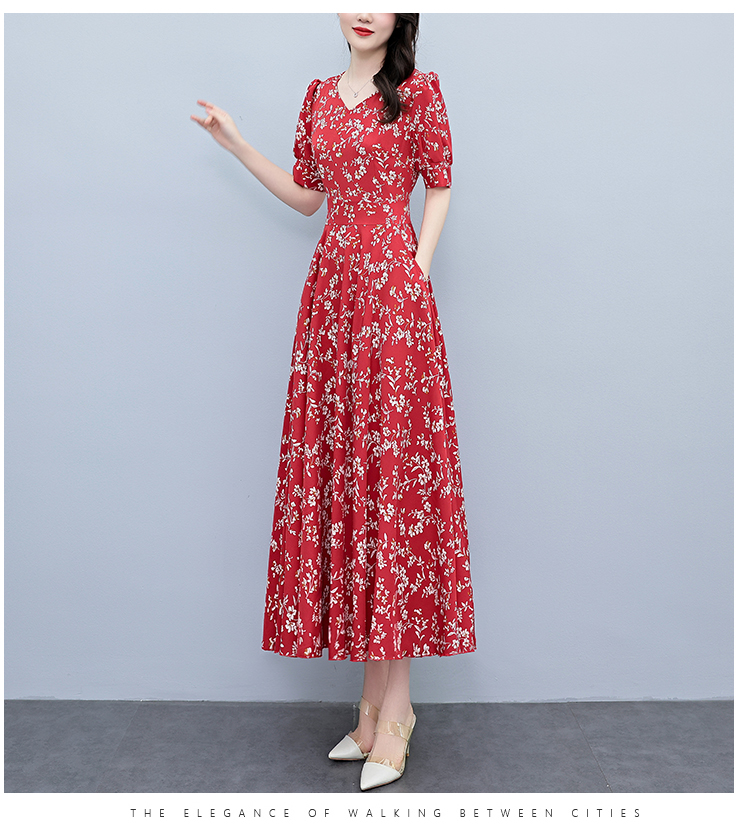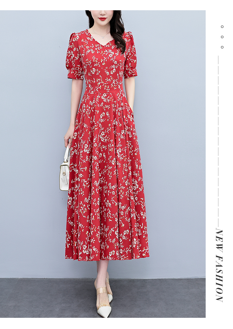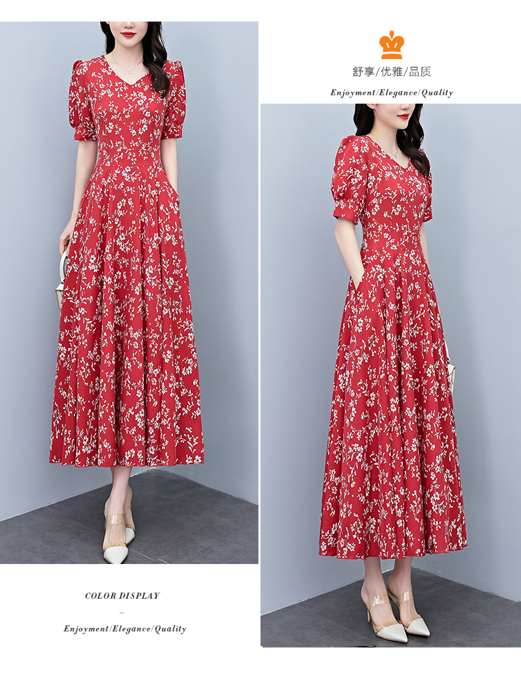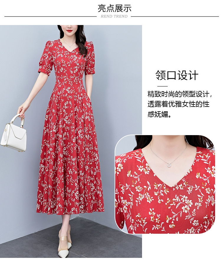 RY2794# 2026夏季新款高档印花雪纺连衣裙长款大码胖mm收腰显瘦遮肚子长裙